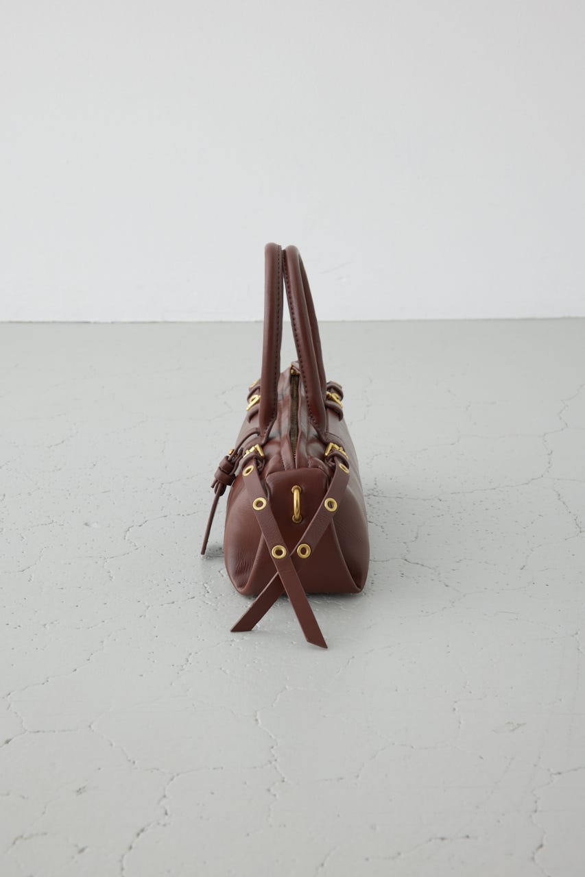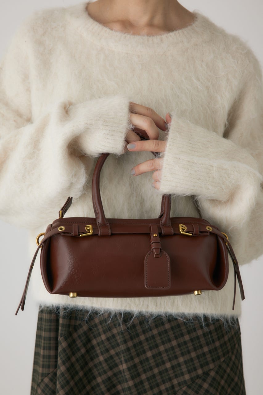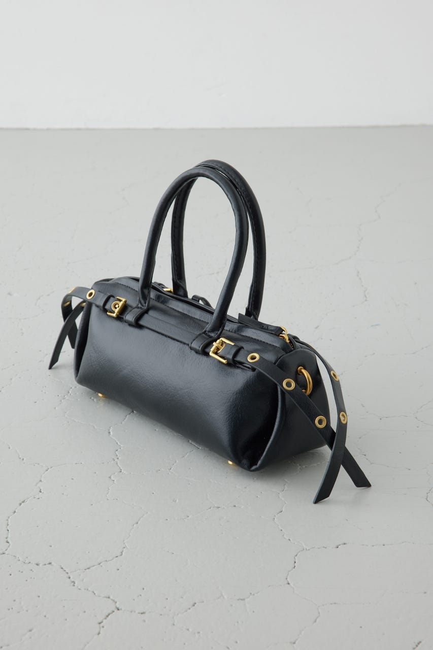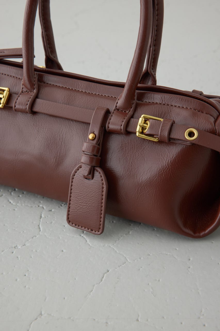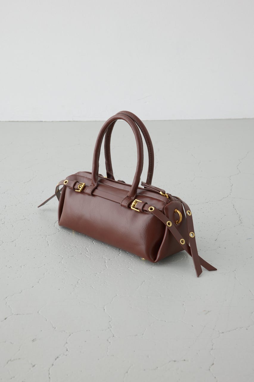 トレンドの横型フォルムの、ダブルベルトがポイントのショルダーバッグ。