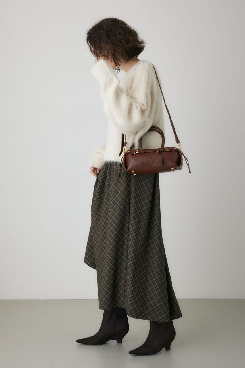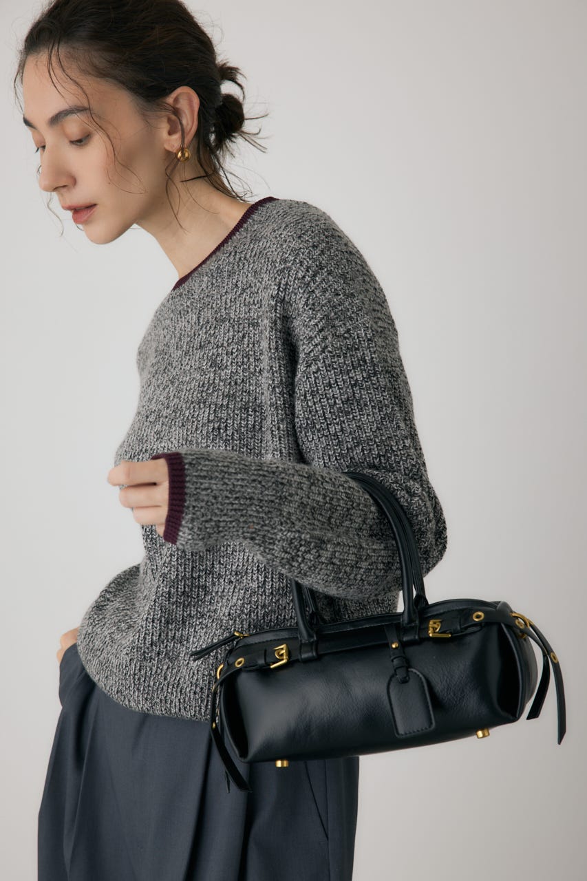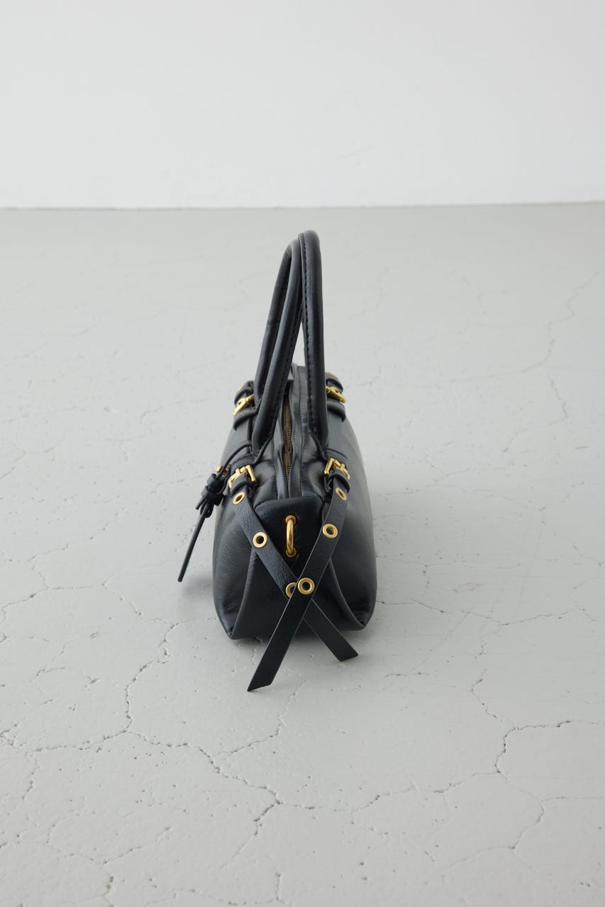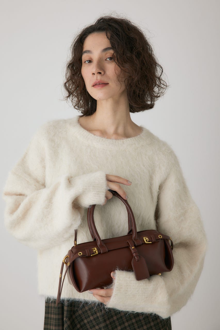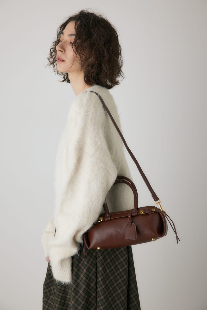 トレンドの横型フォルムの、ダブルベルトがポイントのショルダーバッグ。
