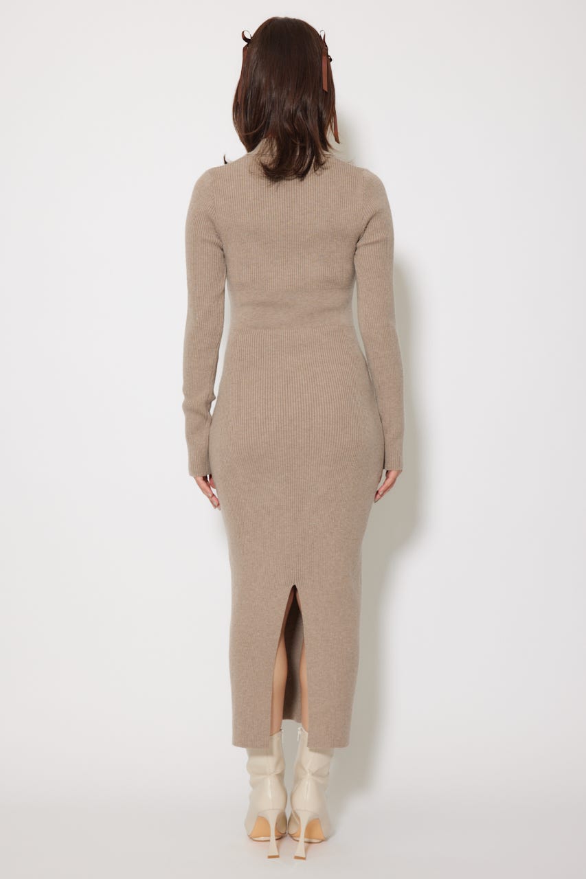 ボディラインをきれいに魅せてくれるリブ編みのニットワンピース。