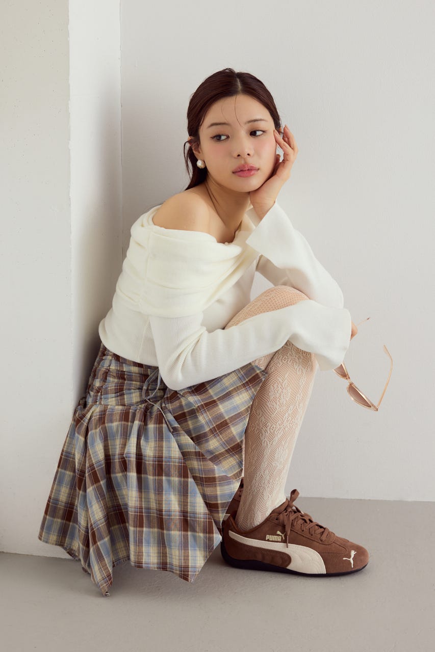 カジュアルなスタイリングにはもちろん◎スニーカーの綺麗なラインが映えるショート丈のボトムやスカートもスタイリングもおすすめです。