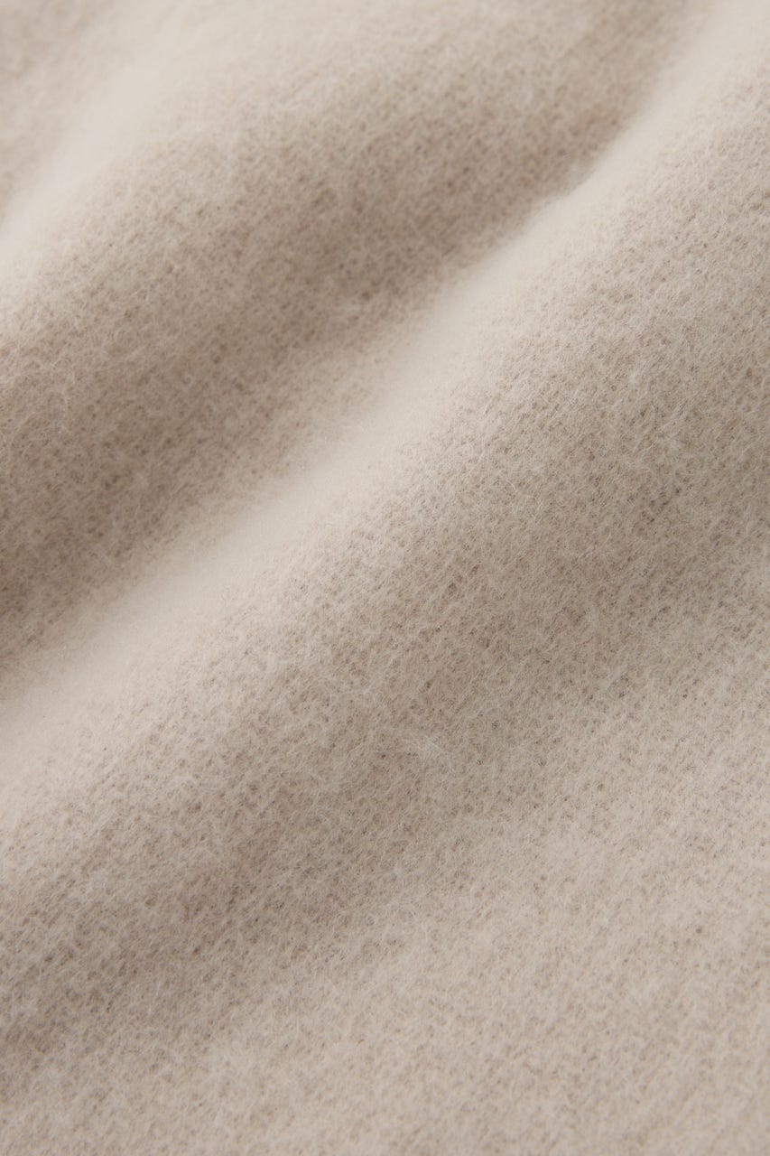 リング糸を刺し起毛して厚みを出した軽くてボリュームのあるマフラー。