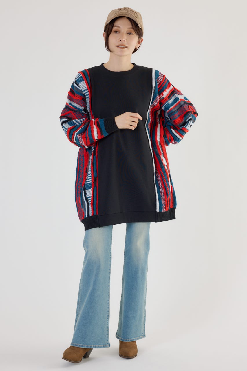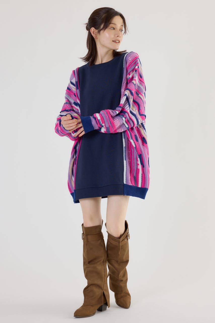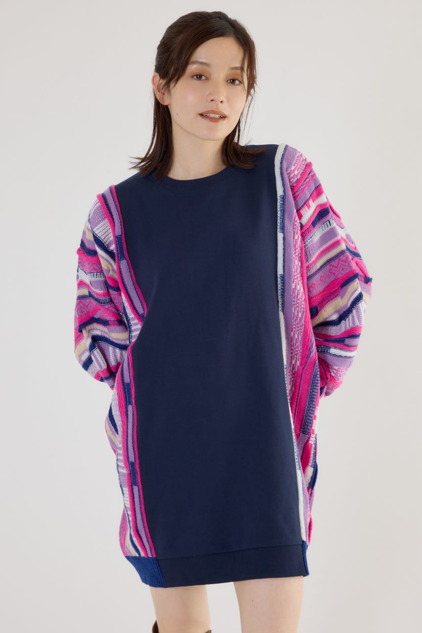裏毛とのドッキングで、RODEOらしい配色デザインチュニックワンピースです。