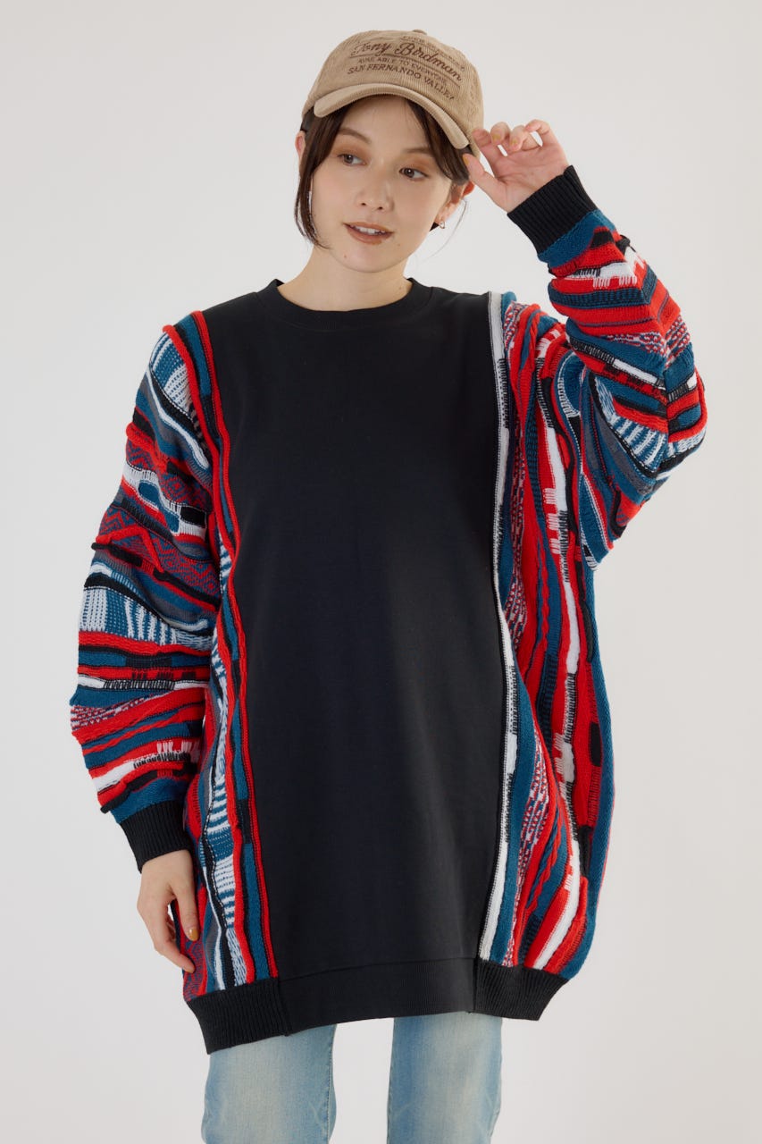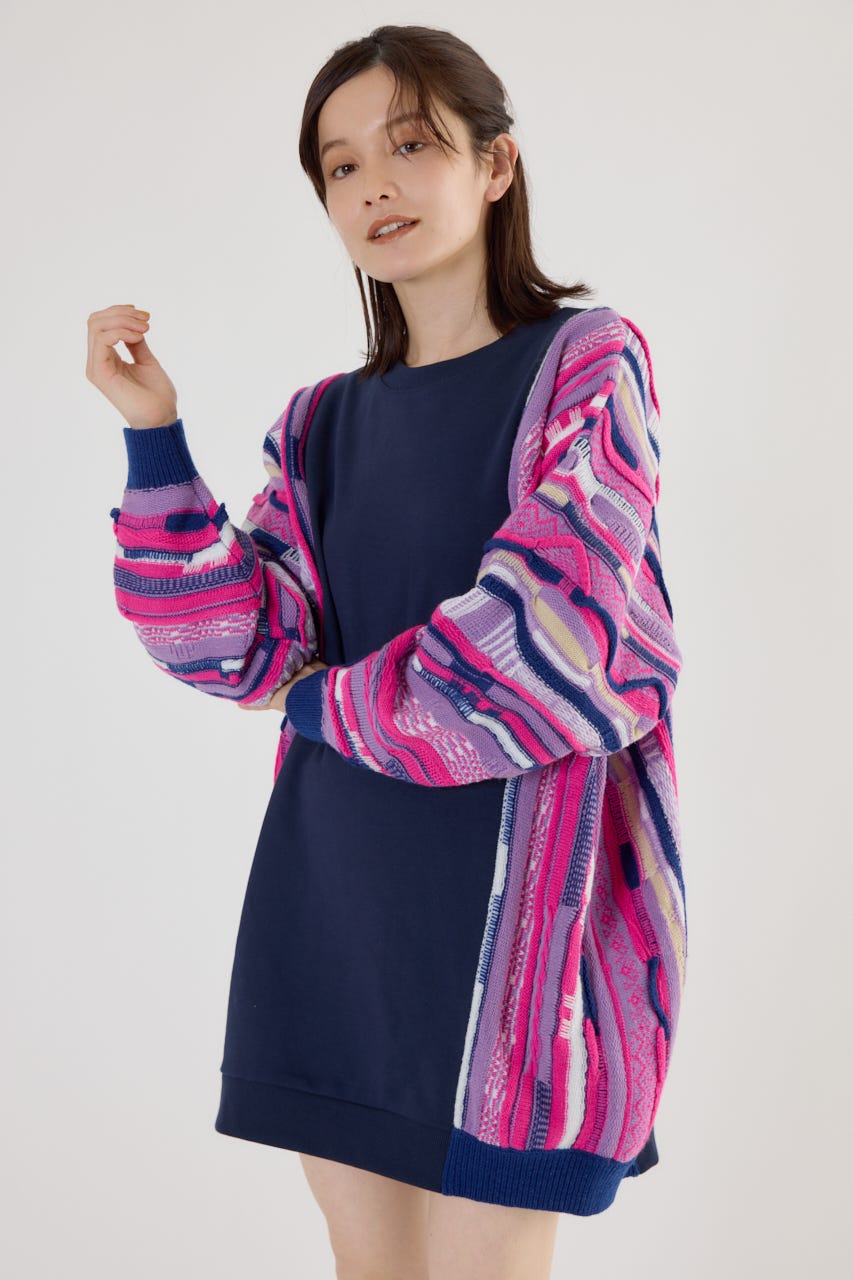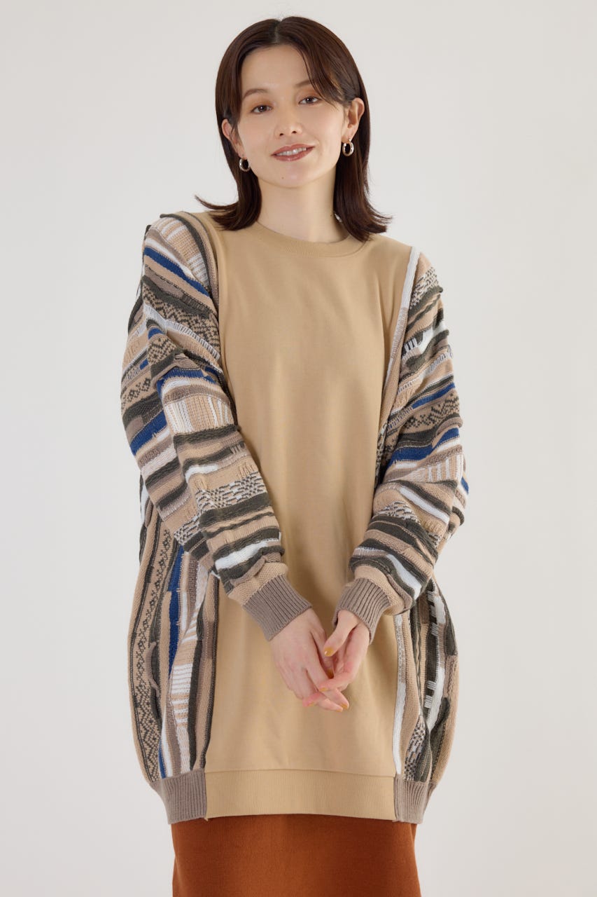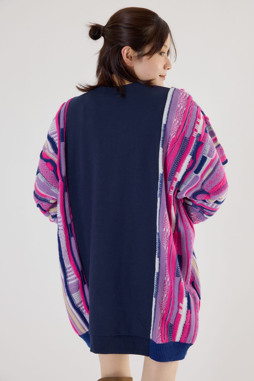 裏毛とのドッキングで、RODEOらしい配色デザインチュニックワンピースです。