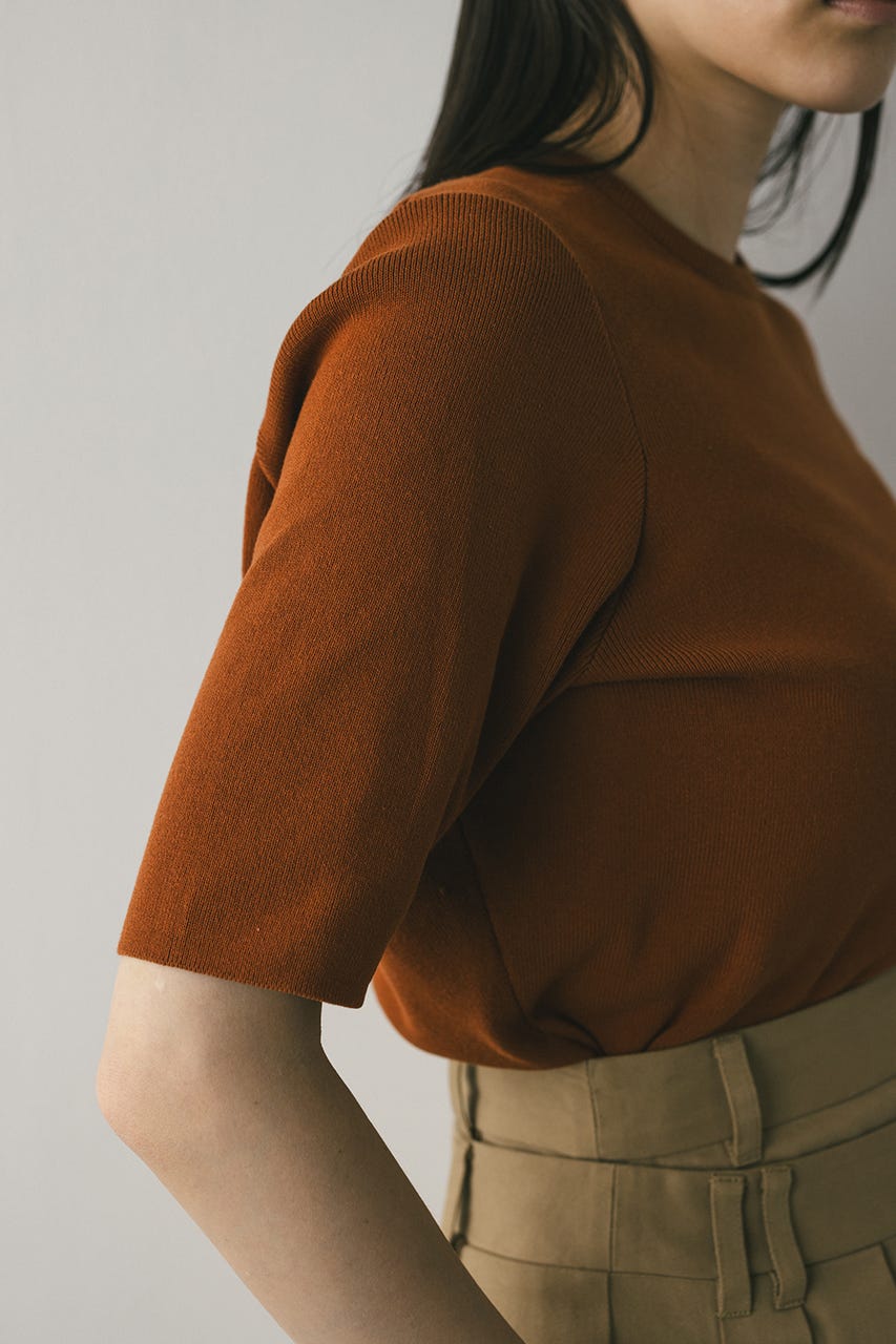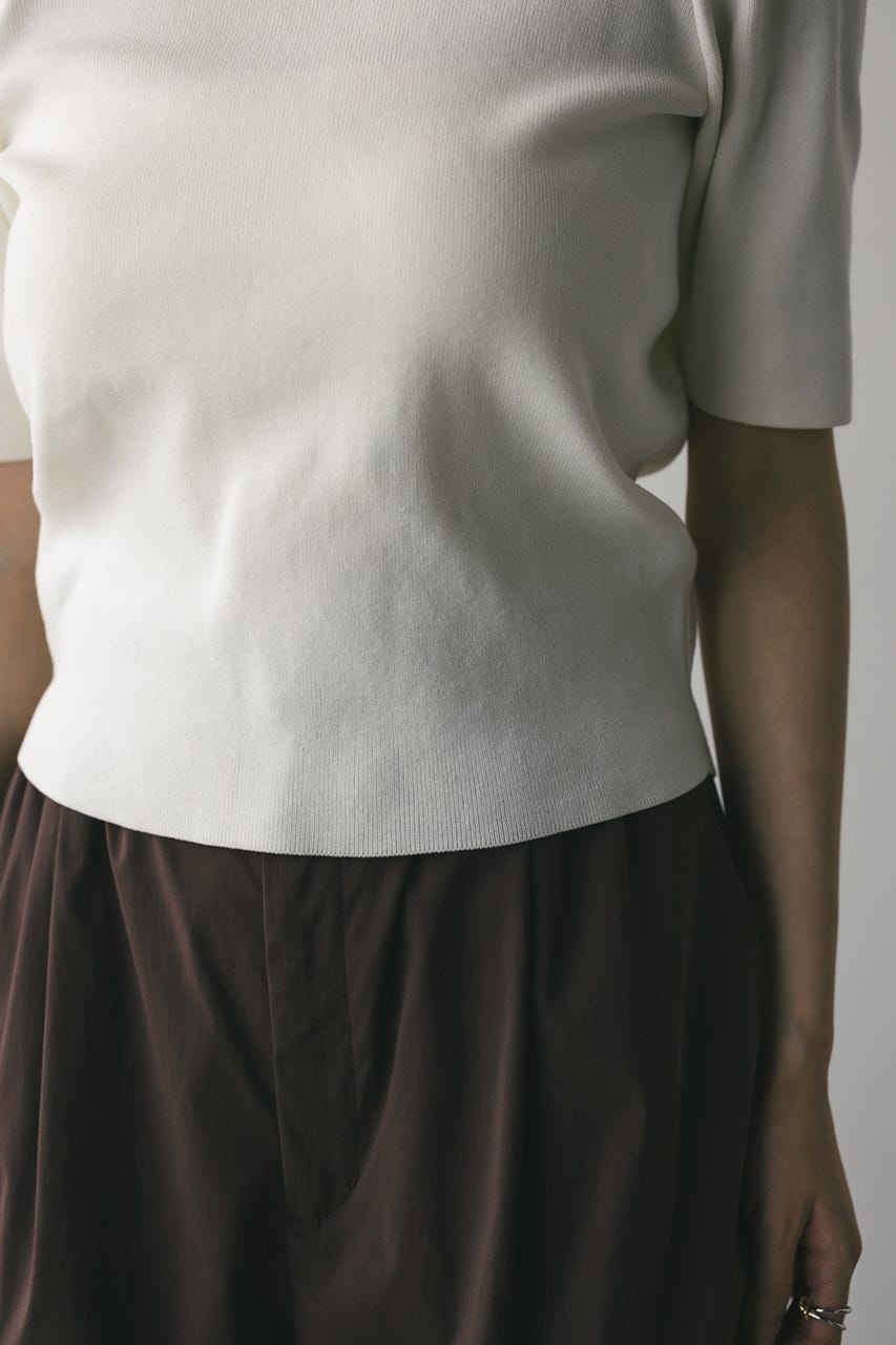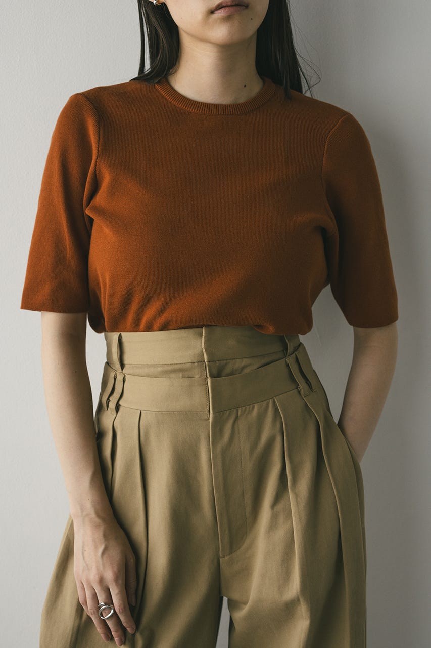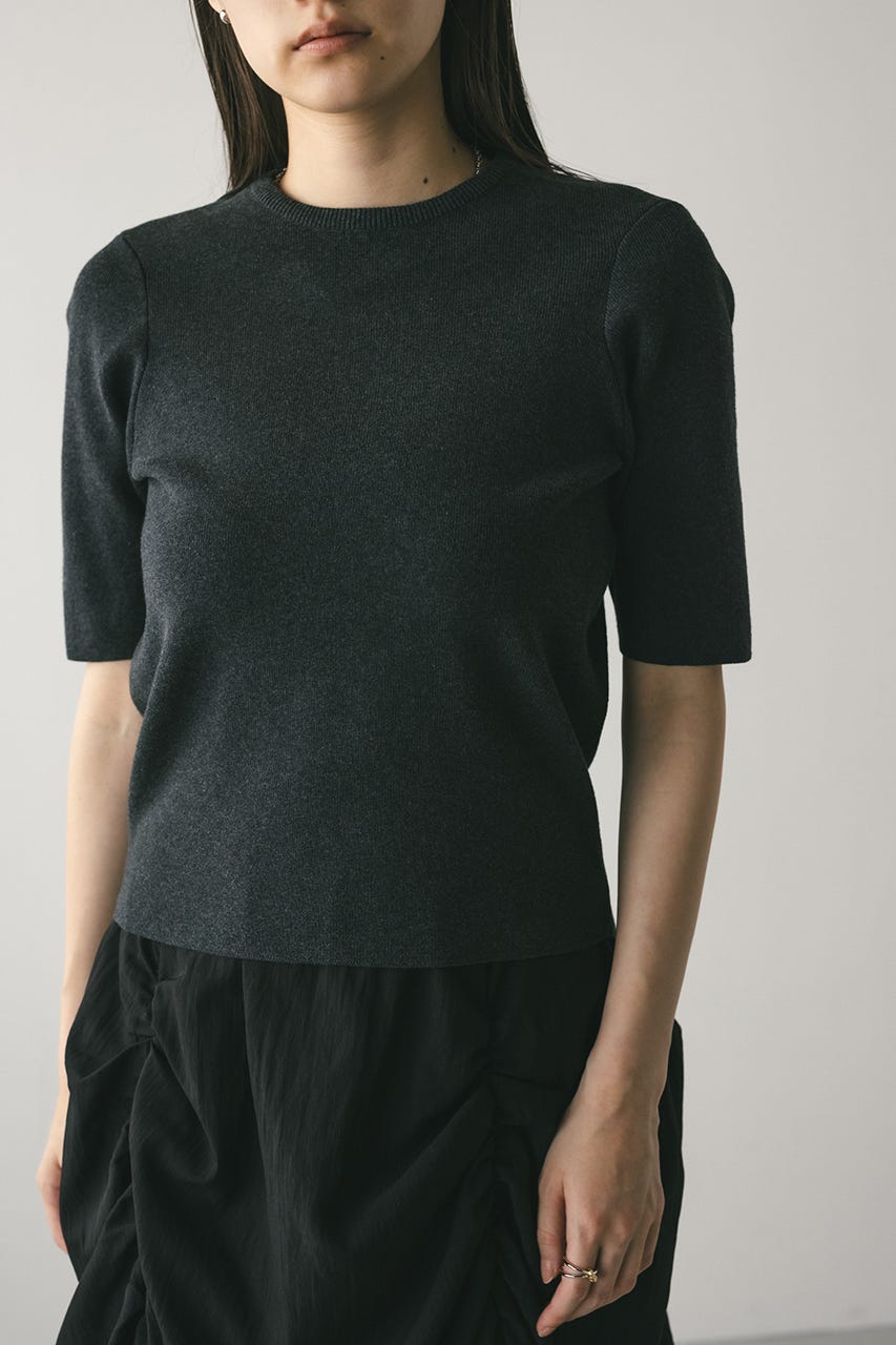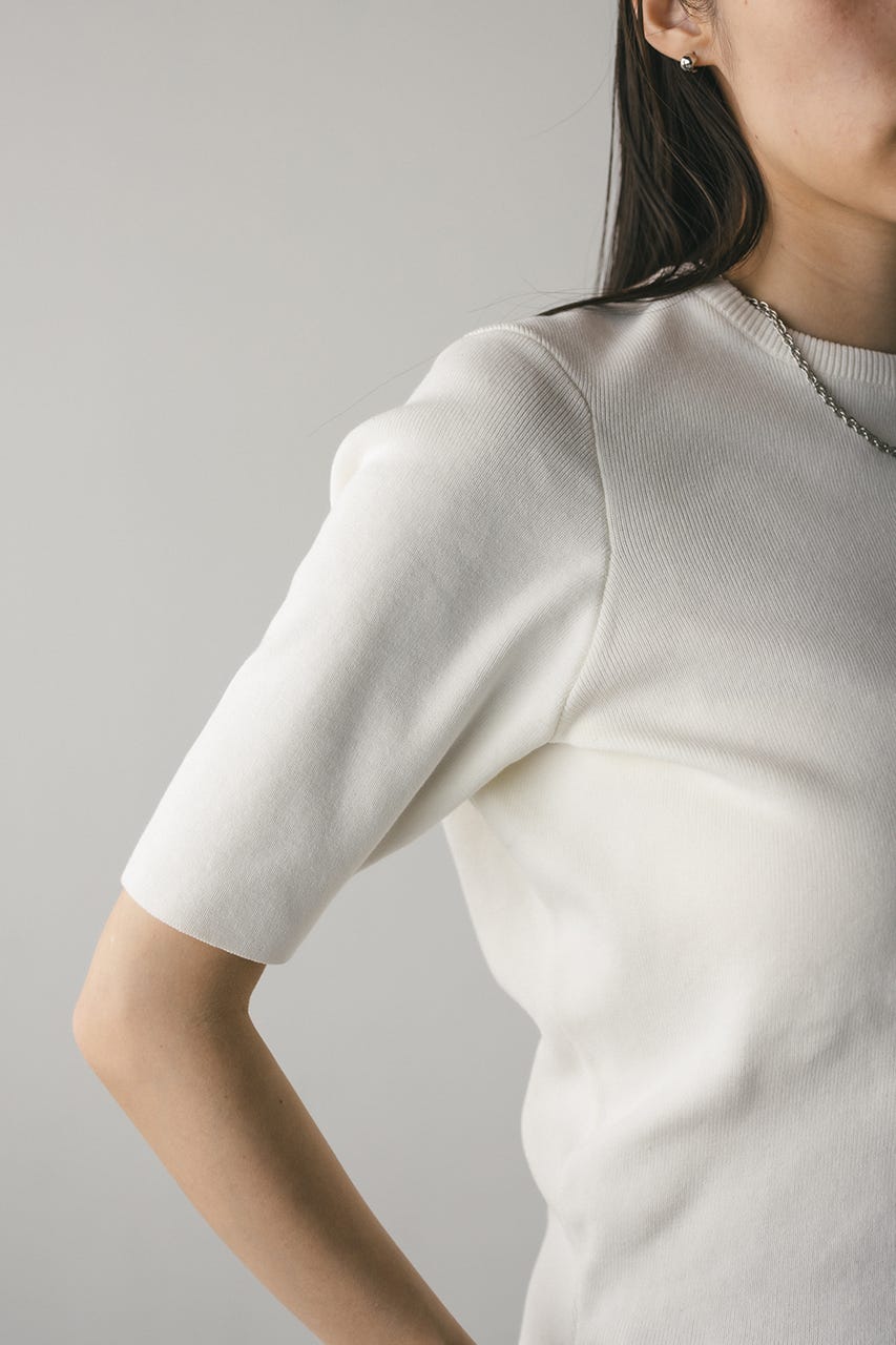 ドライなハイツイストコットンで仕立てたモードな上品な5分袖のフォルムニット。