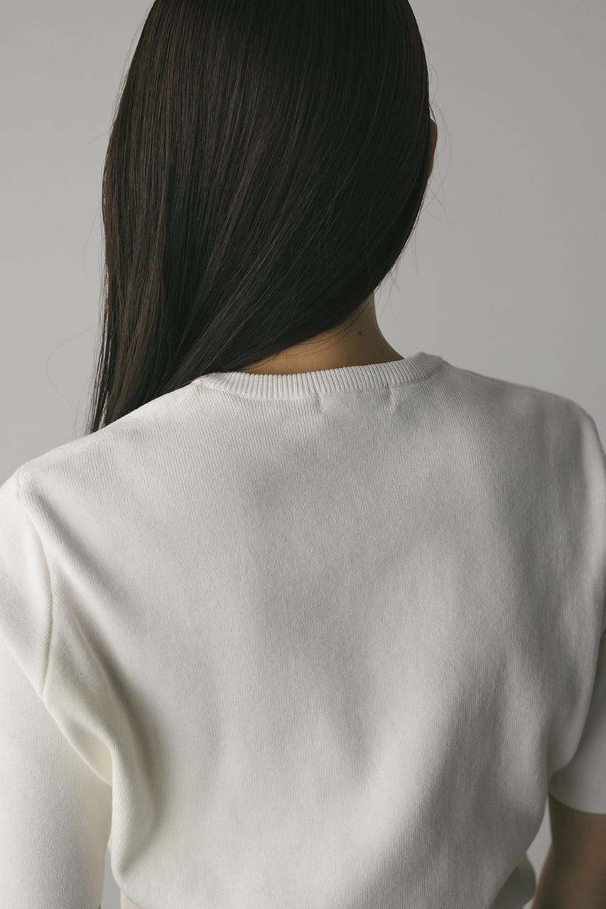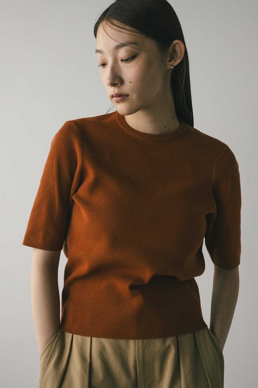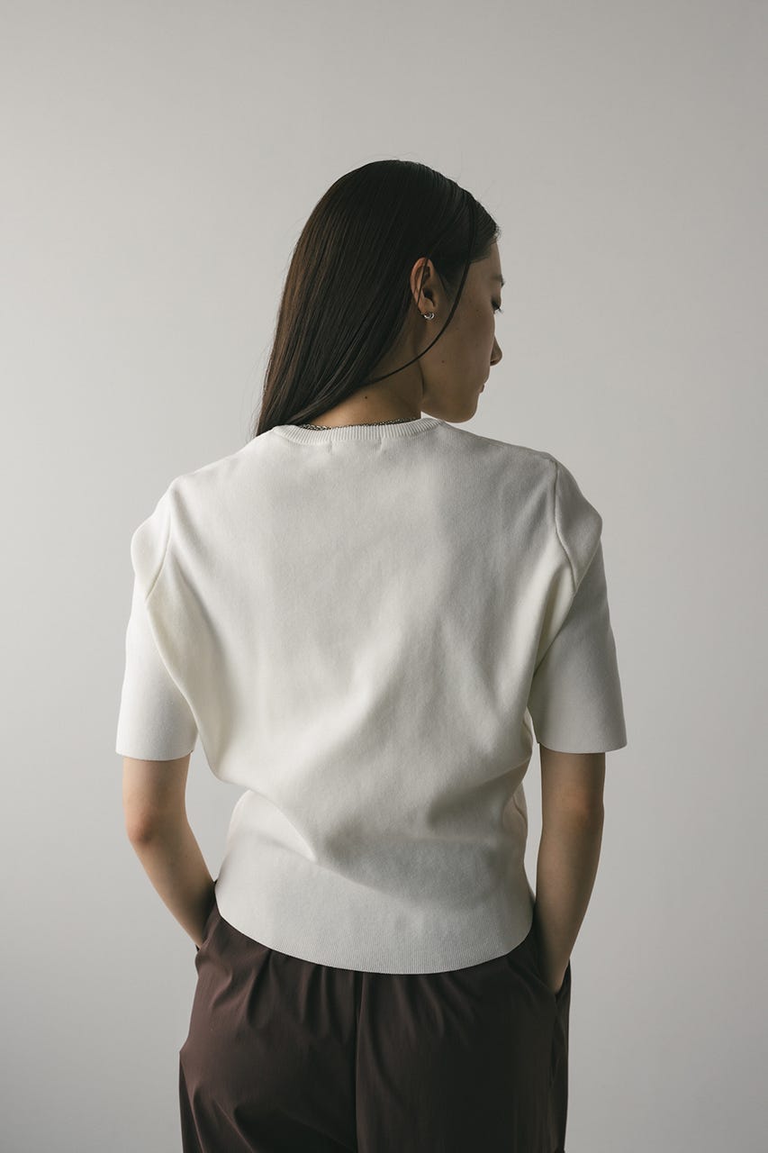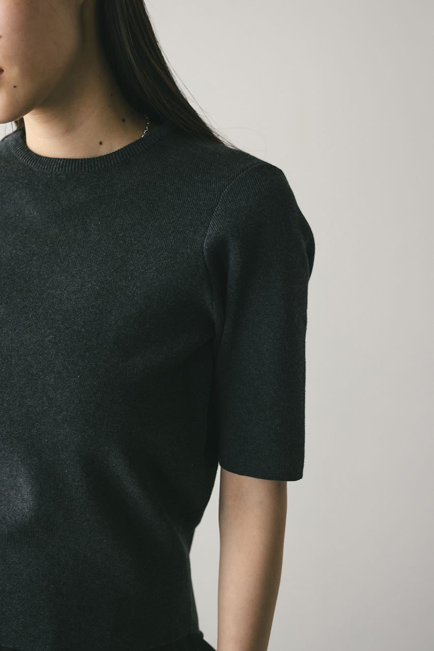 ドライなハイツイストコットンで仕立てたモードな上品な5分袖のフォルムニット。
