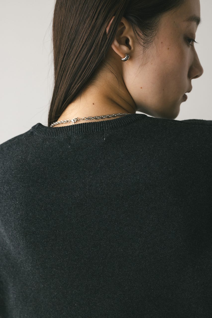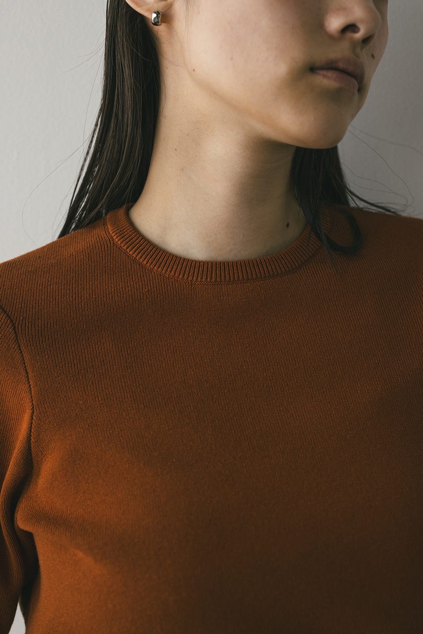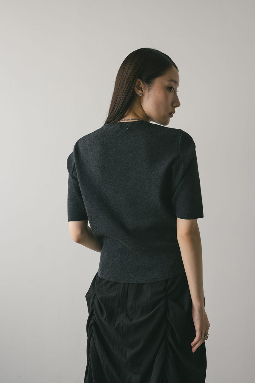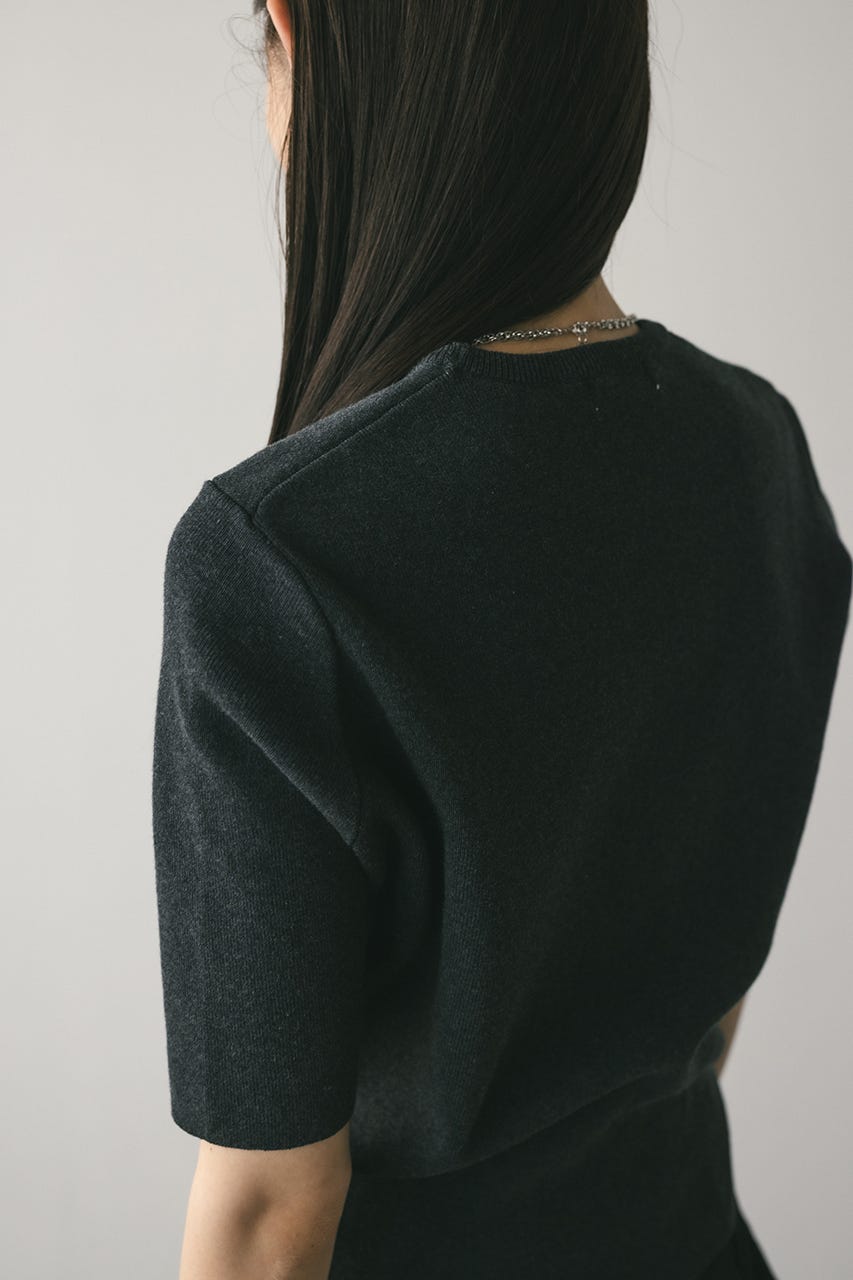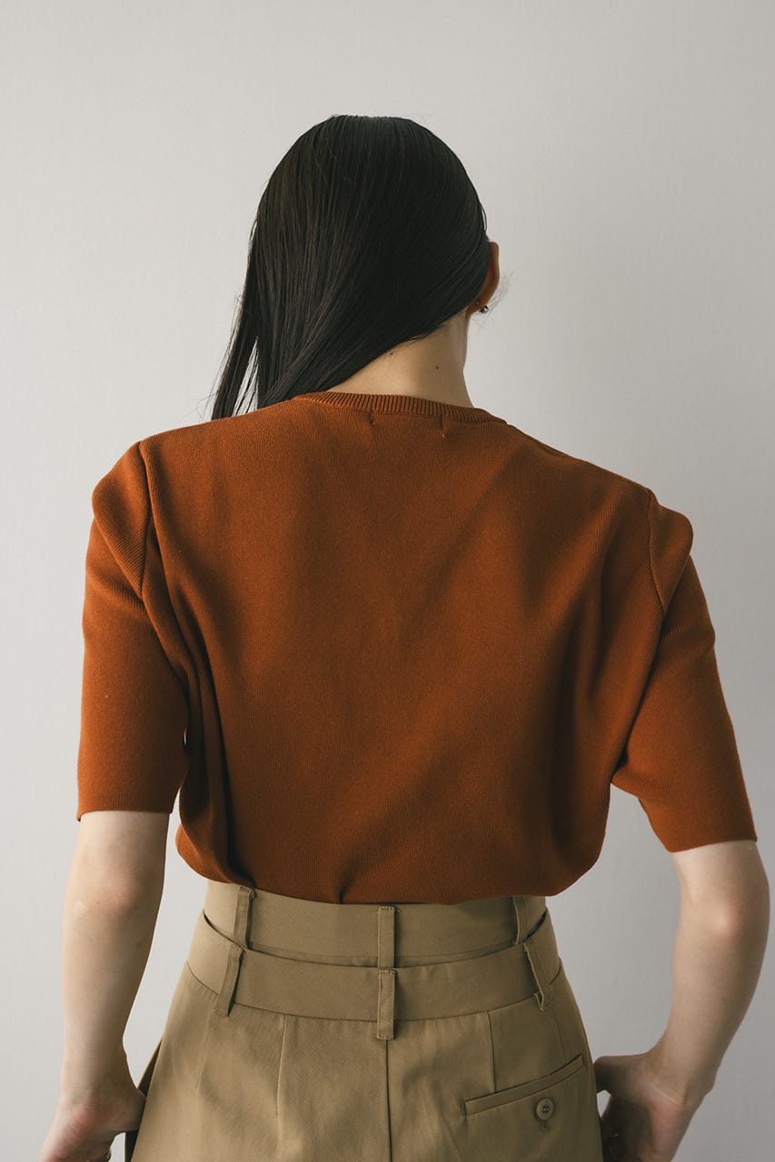 ドライなハイツイストコットンで仕立てたモードな上品な5分袖のフォルムニット。