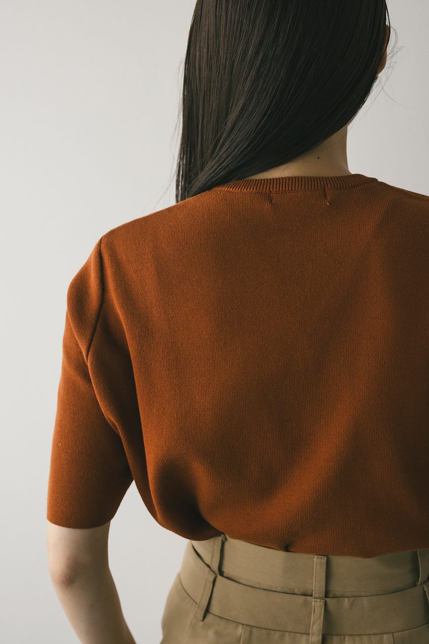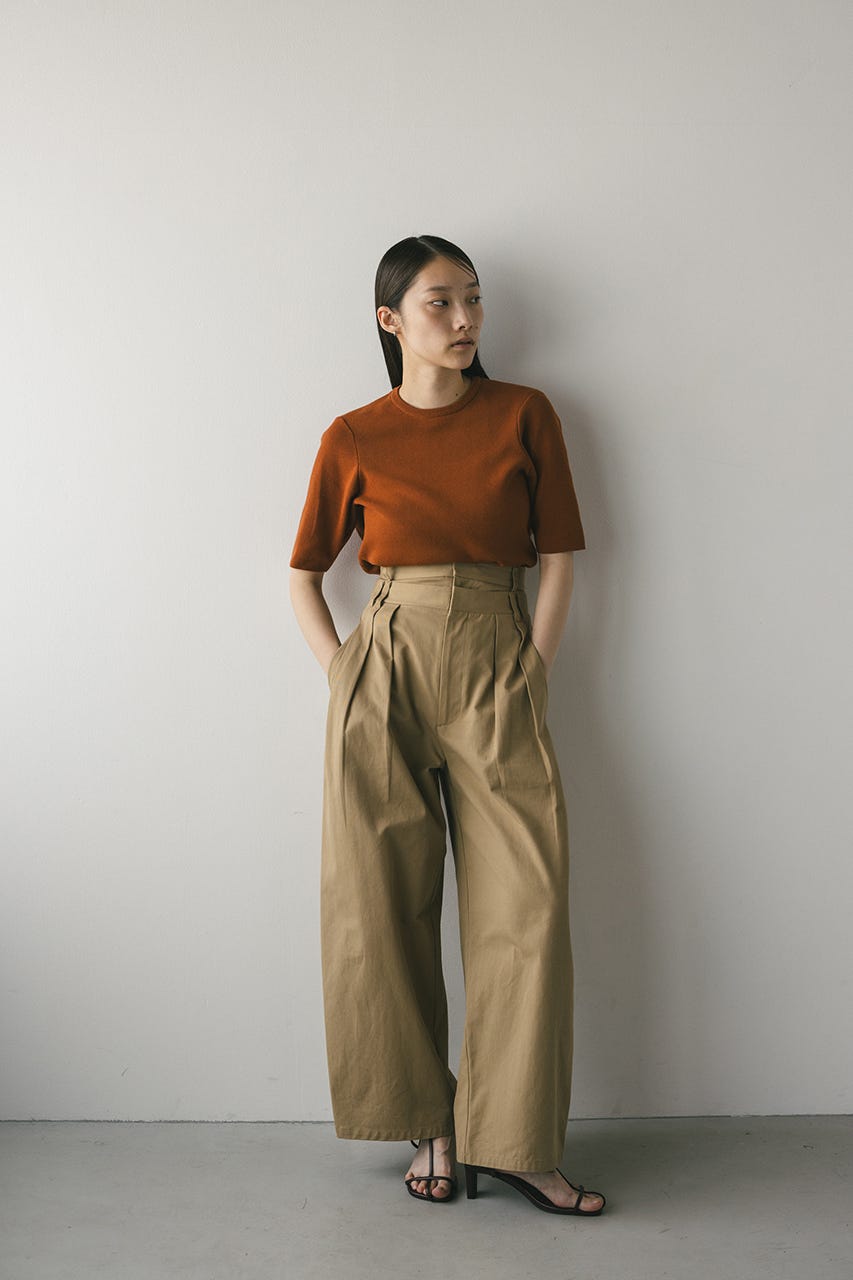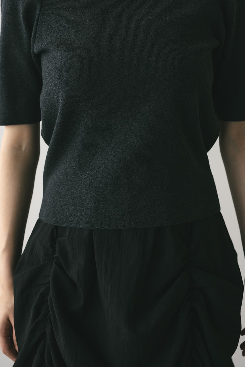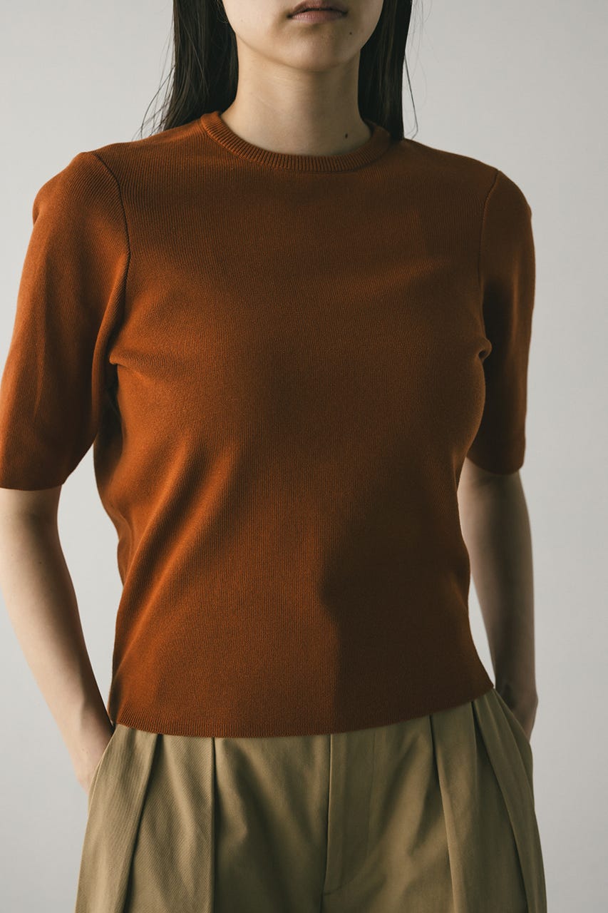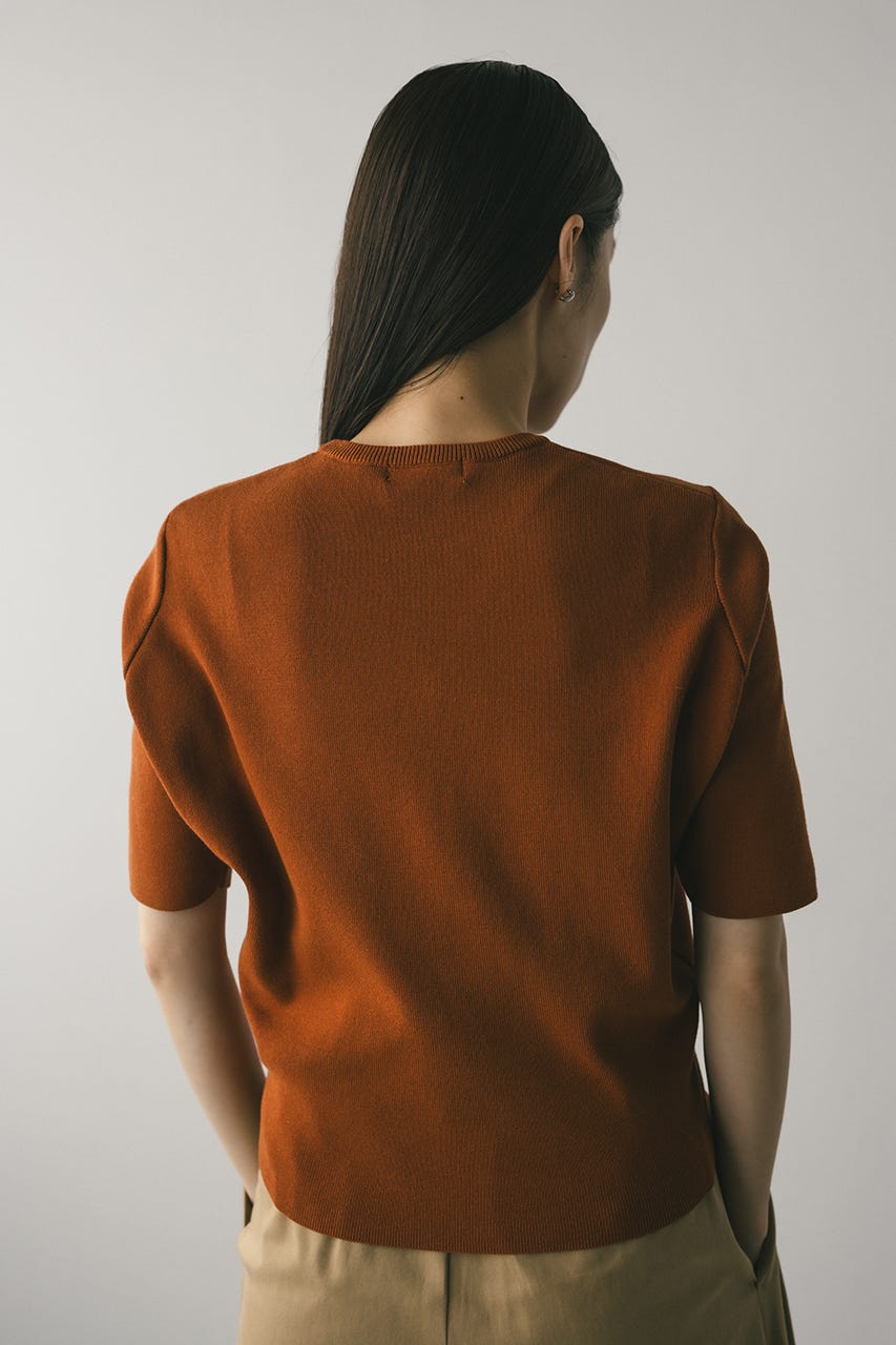 ドライなハイツイストコットンで仕立てたモードな上品な5分袖のフォルムニット。