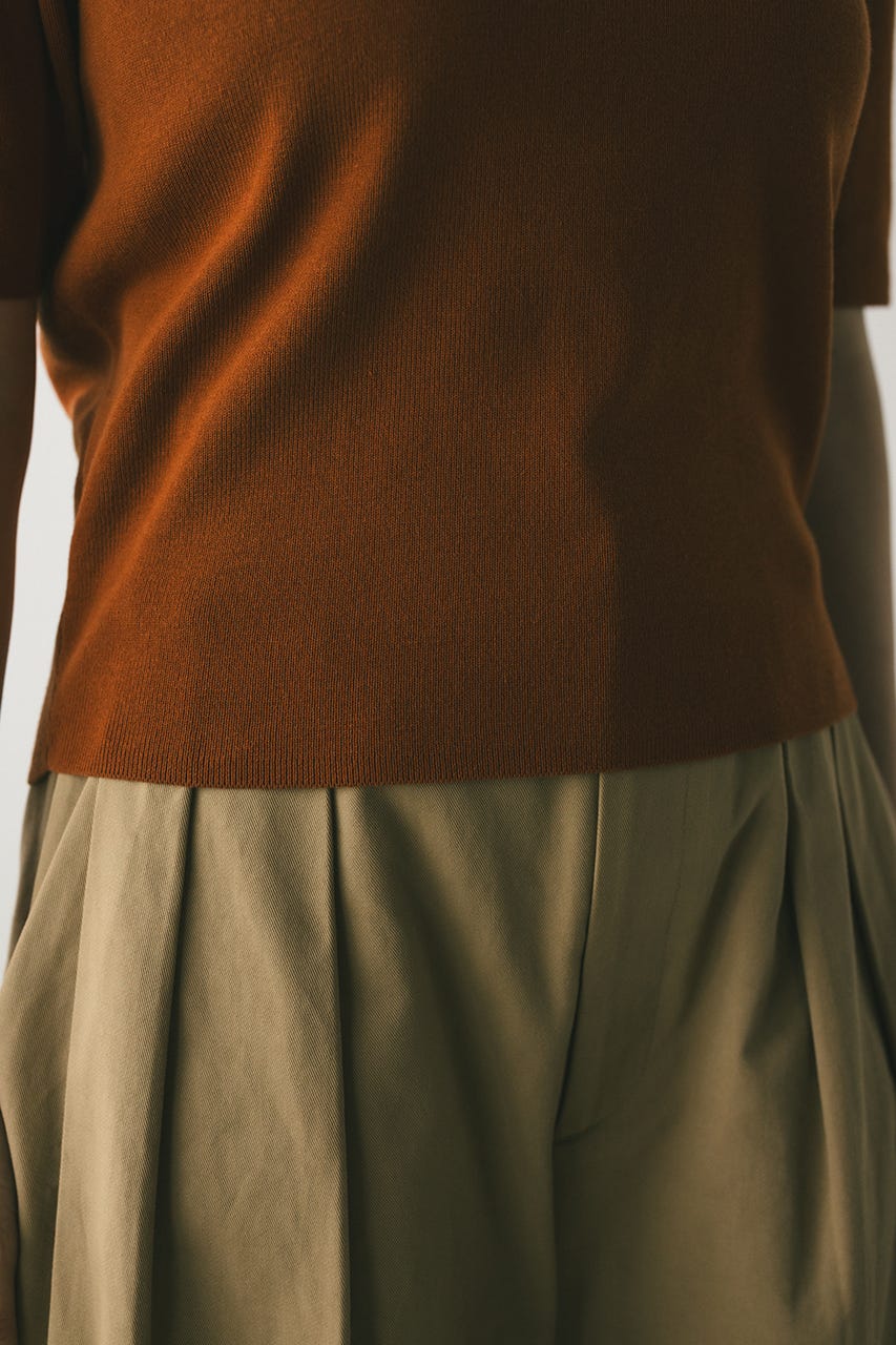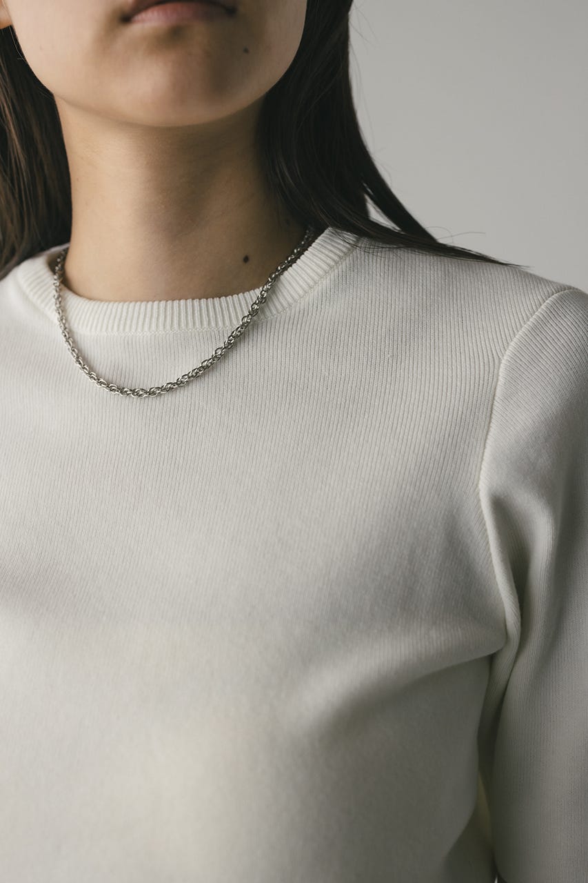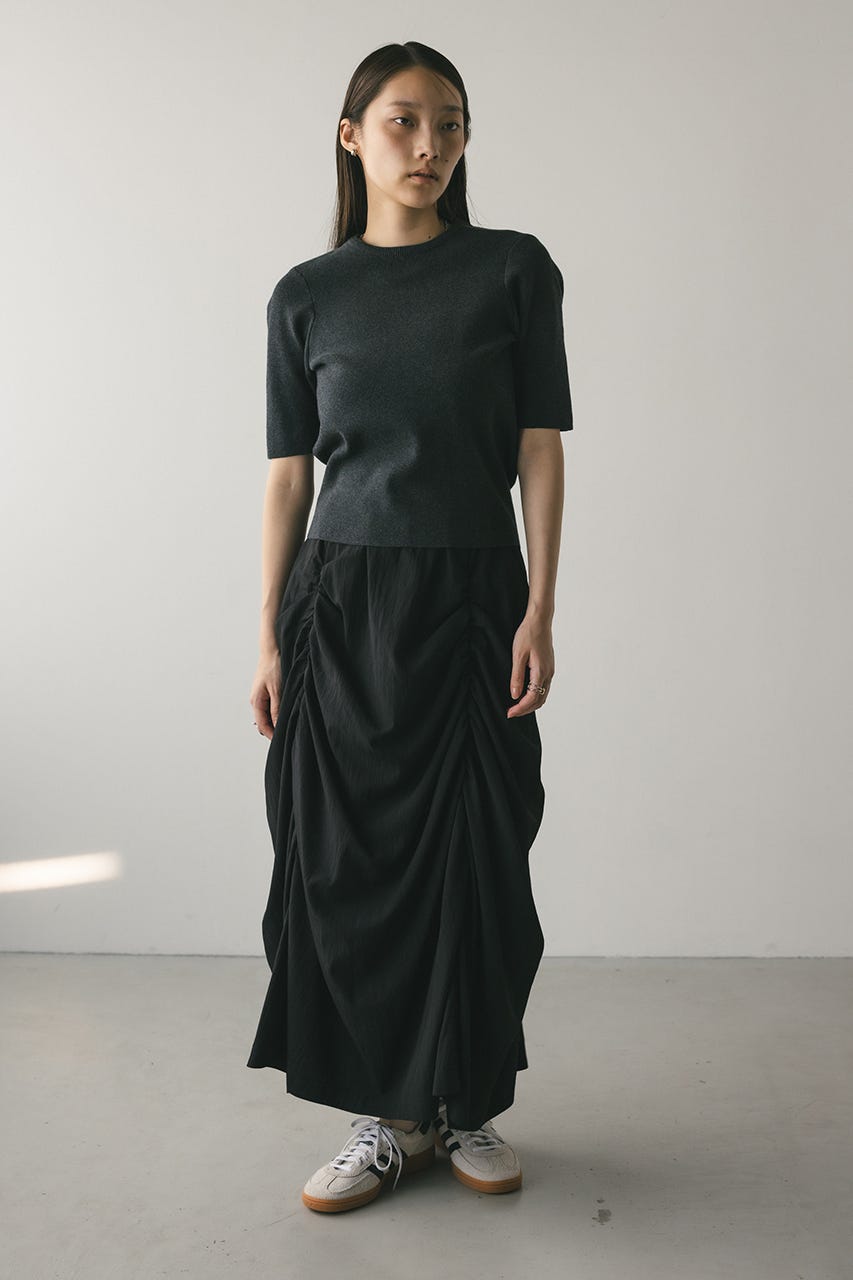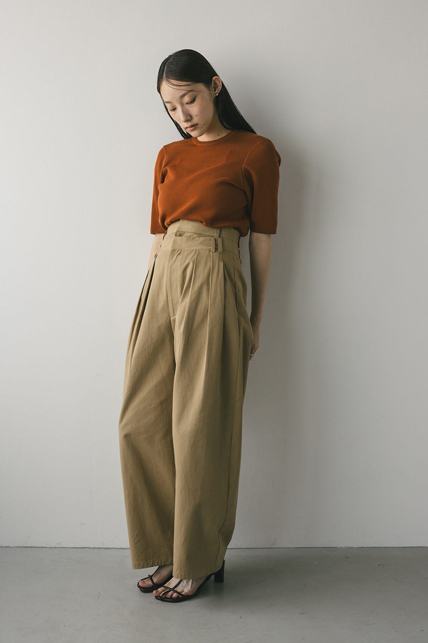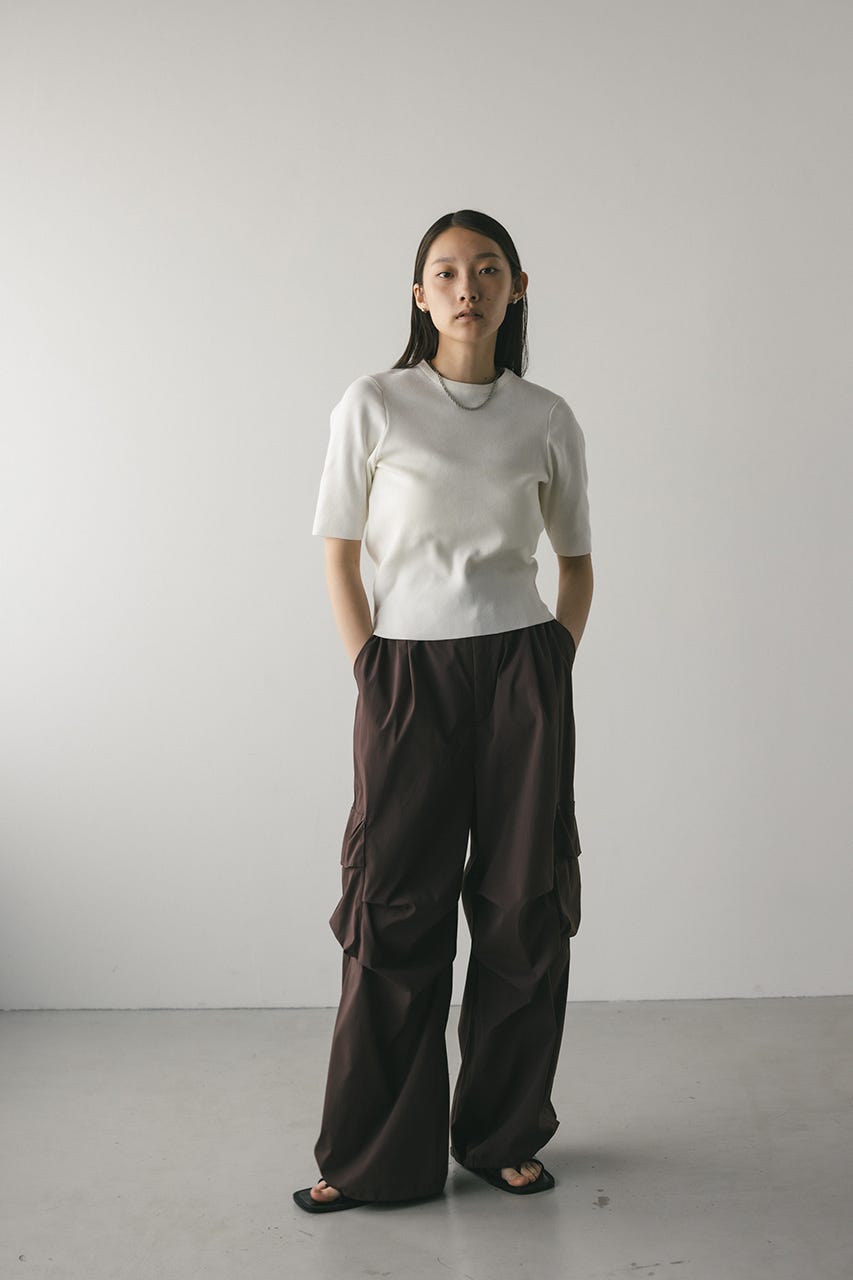 ドライなハイツイストコットンで仕立てたモードな上品な5分袖のフォルムニット。