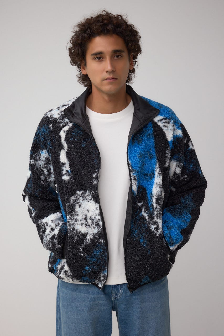肌触りの良いポリエステルブークレーを旬な総柄パターンに落とし込みました。