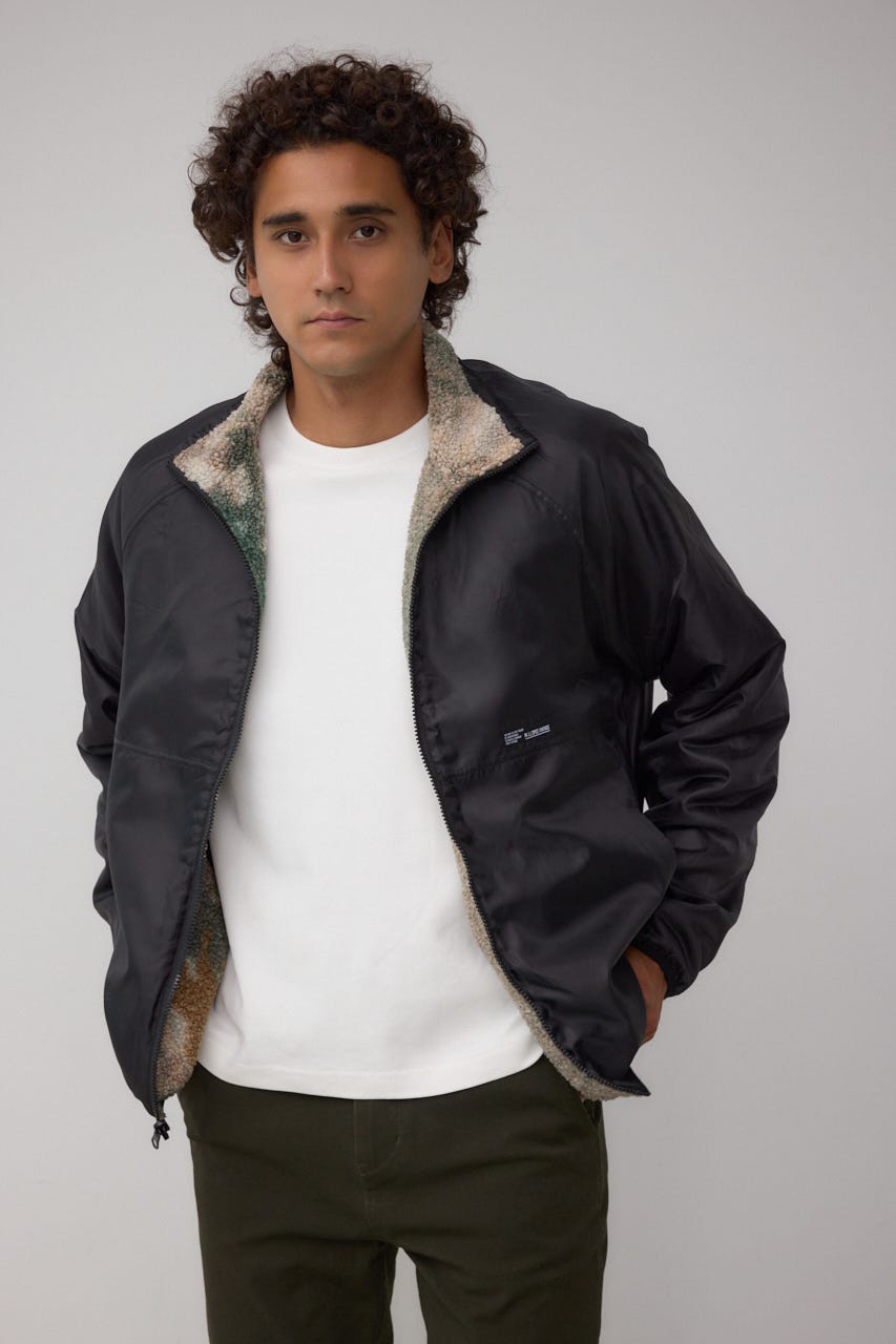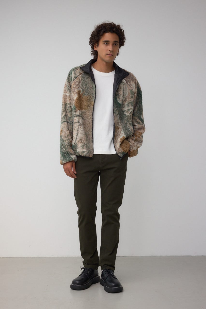 柄×無地のリバーシブル仕様なので気分やシーンに応じて着こなしが変えられます。
