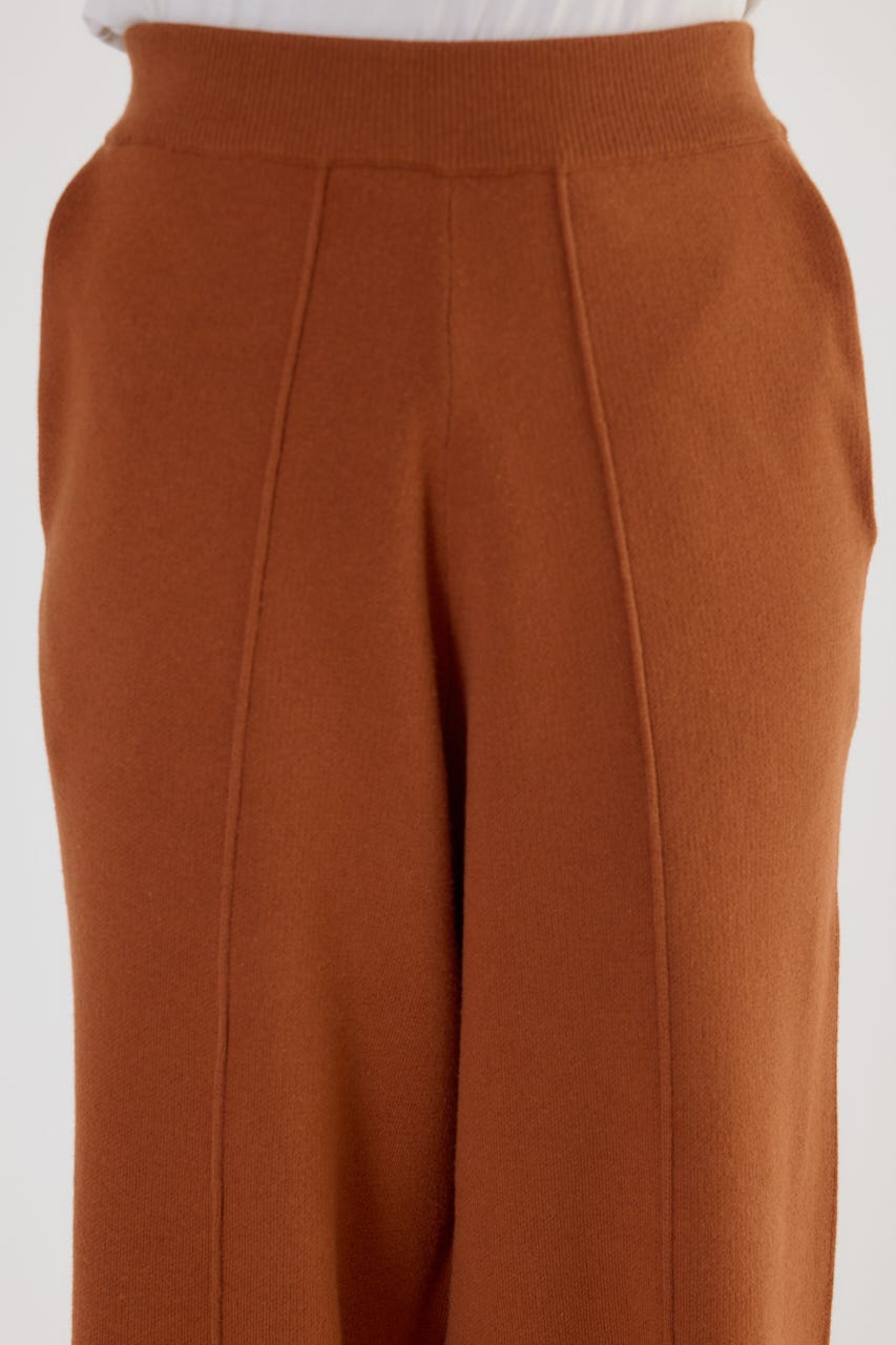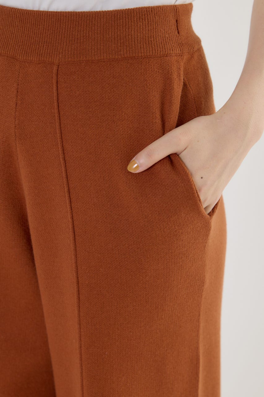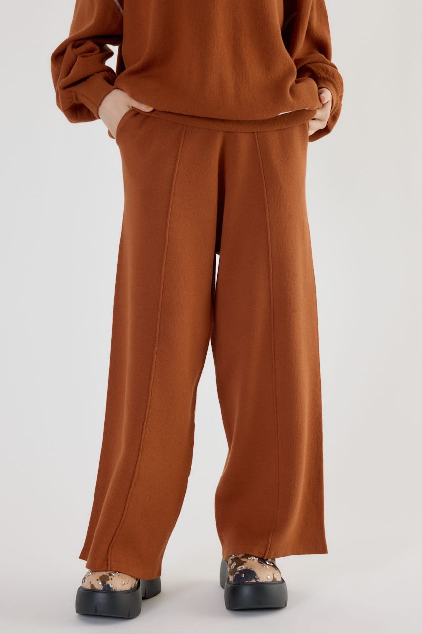リラックス感がありながらもラフすぎない、きれいなシルエットのワイドニットパンツ。