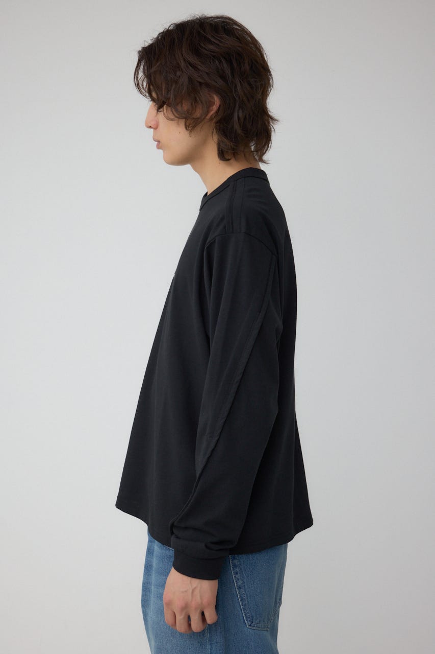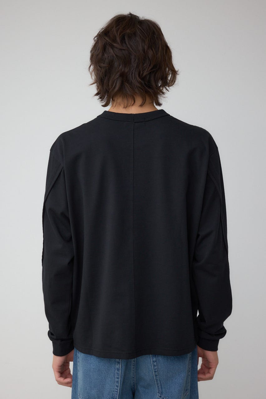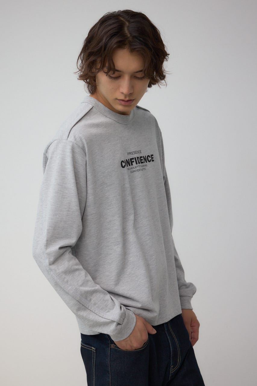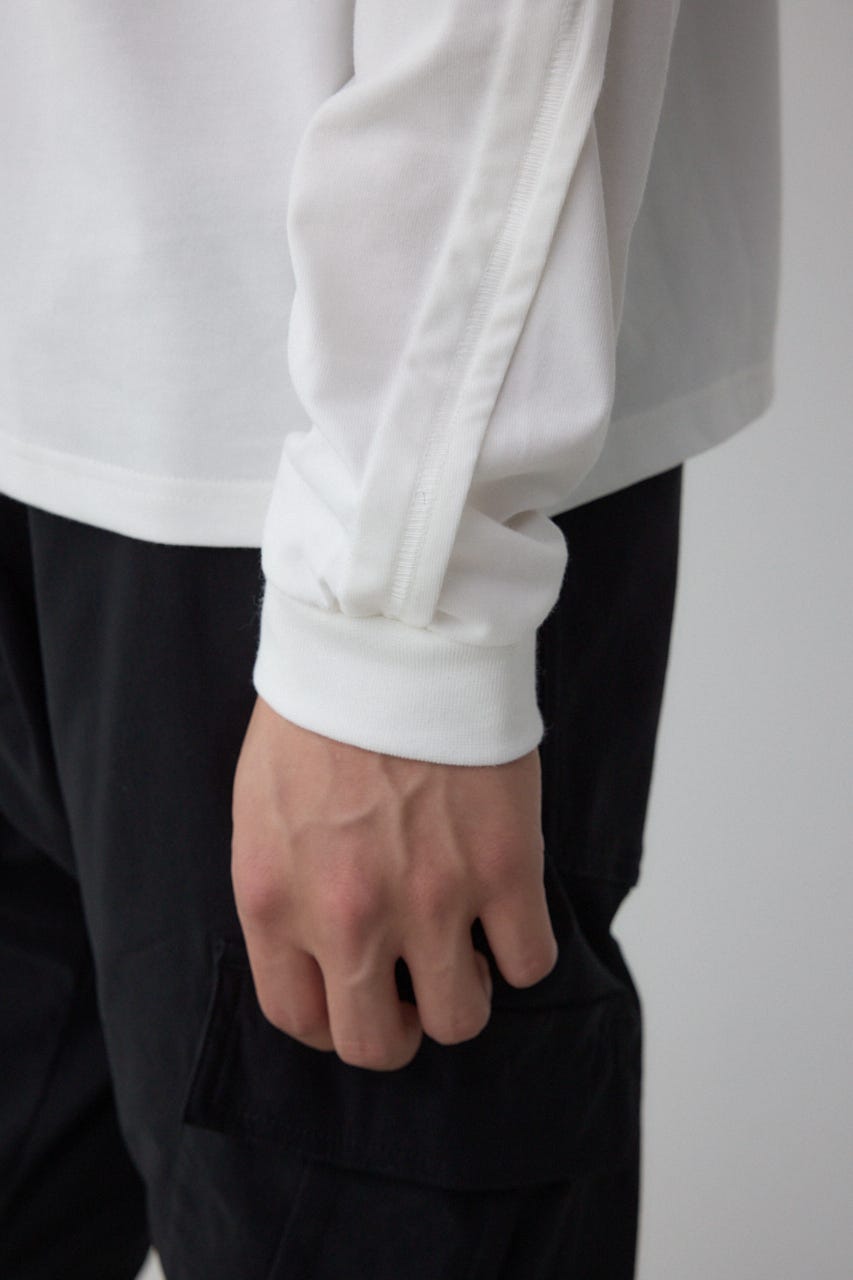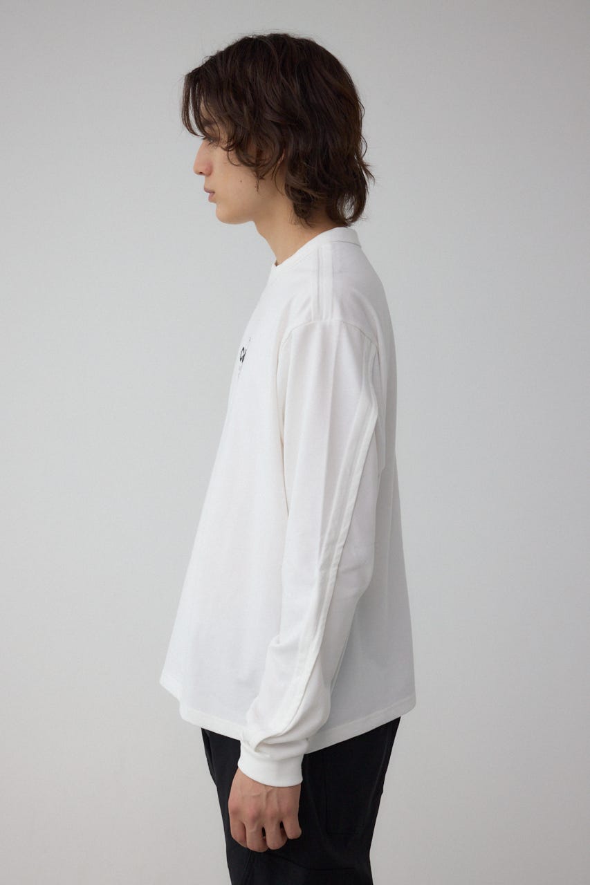 腕にタックデザインが入ったフロントロゴプリントのロングTシャツになります。