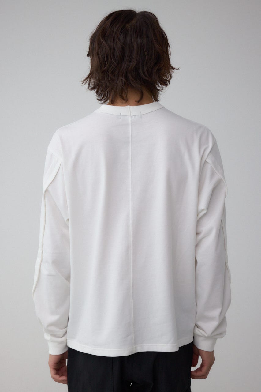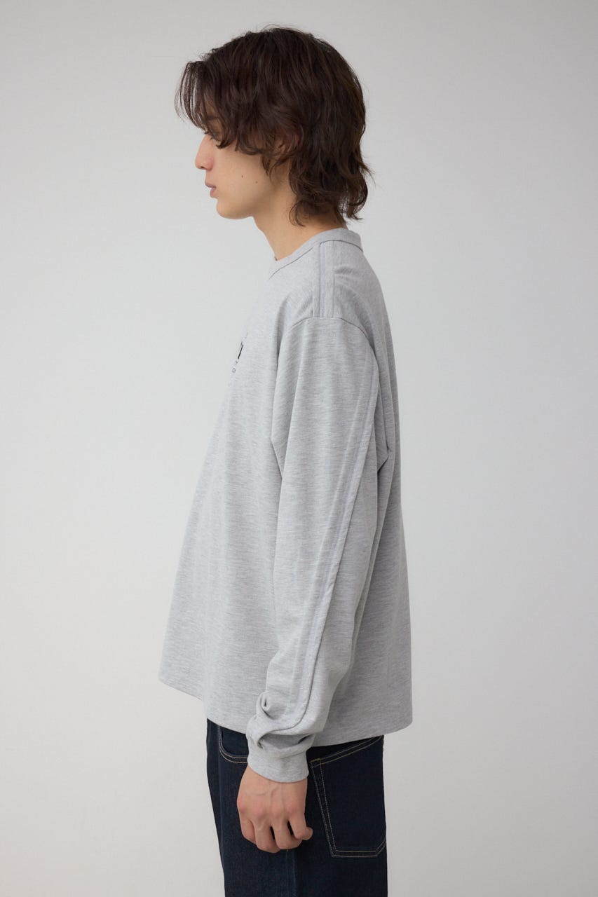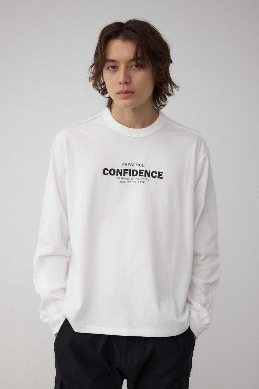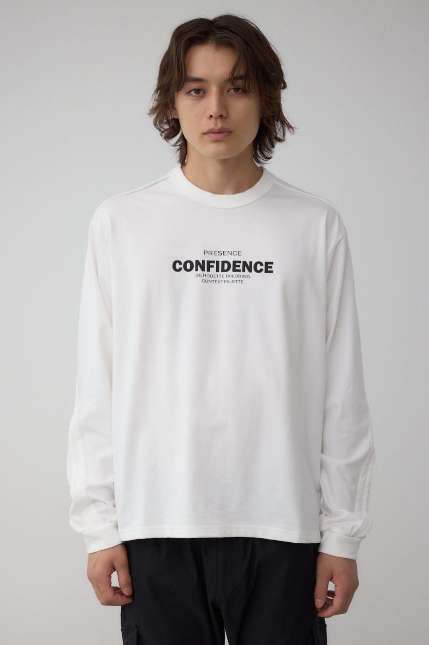 腕にタックデザインが入ったフロントロゴプリントのロングTシャツになります。