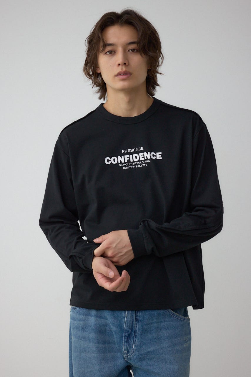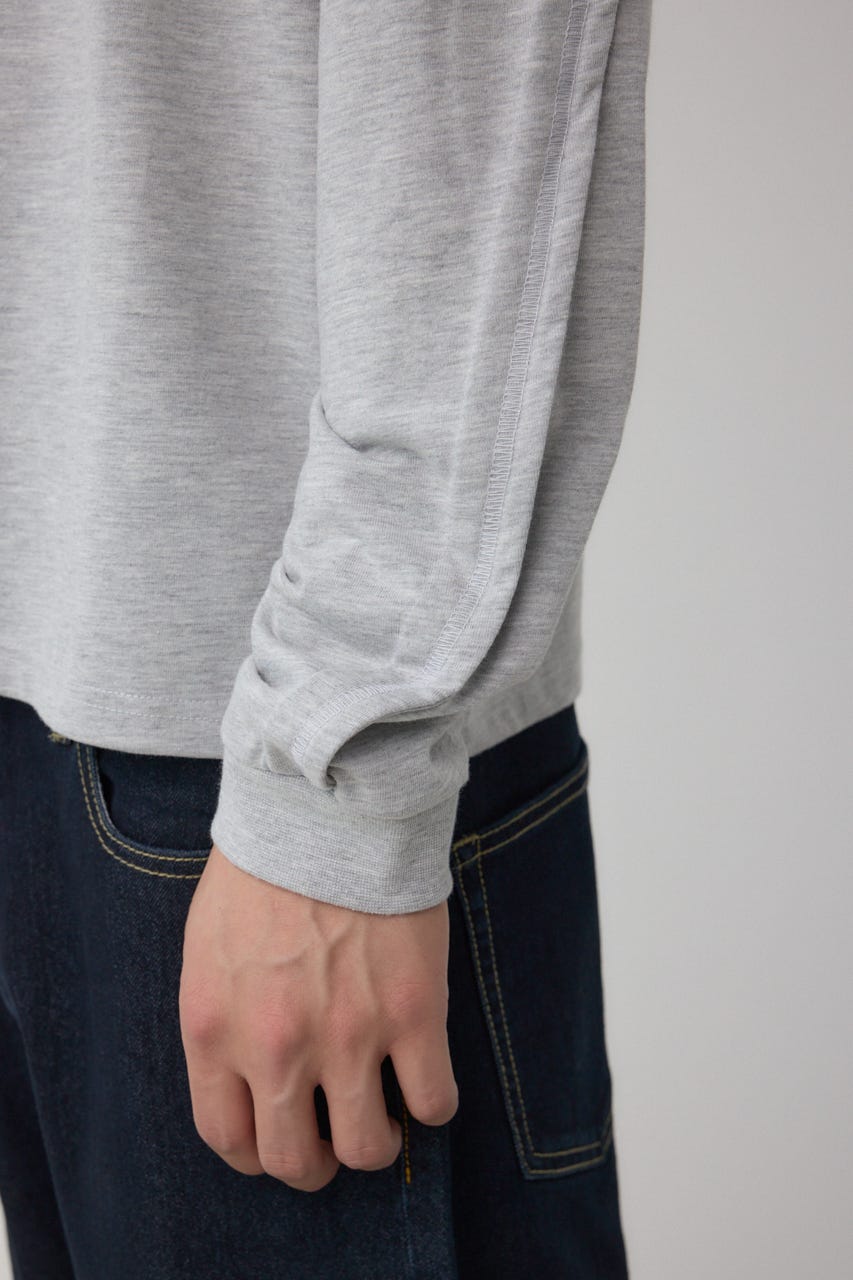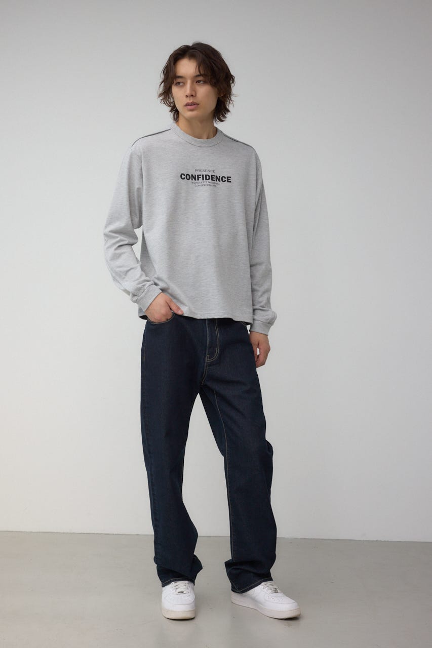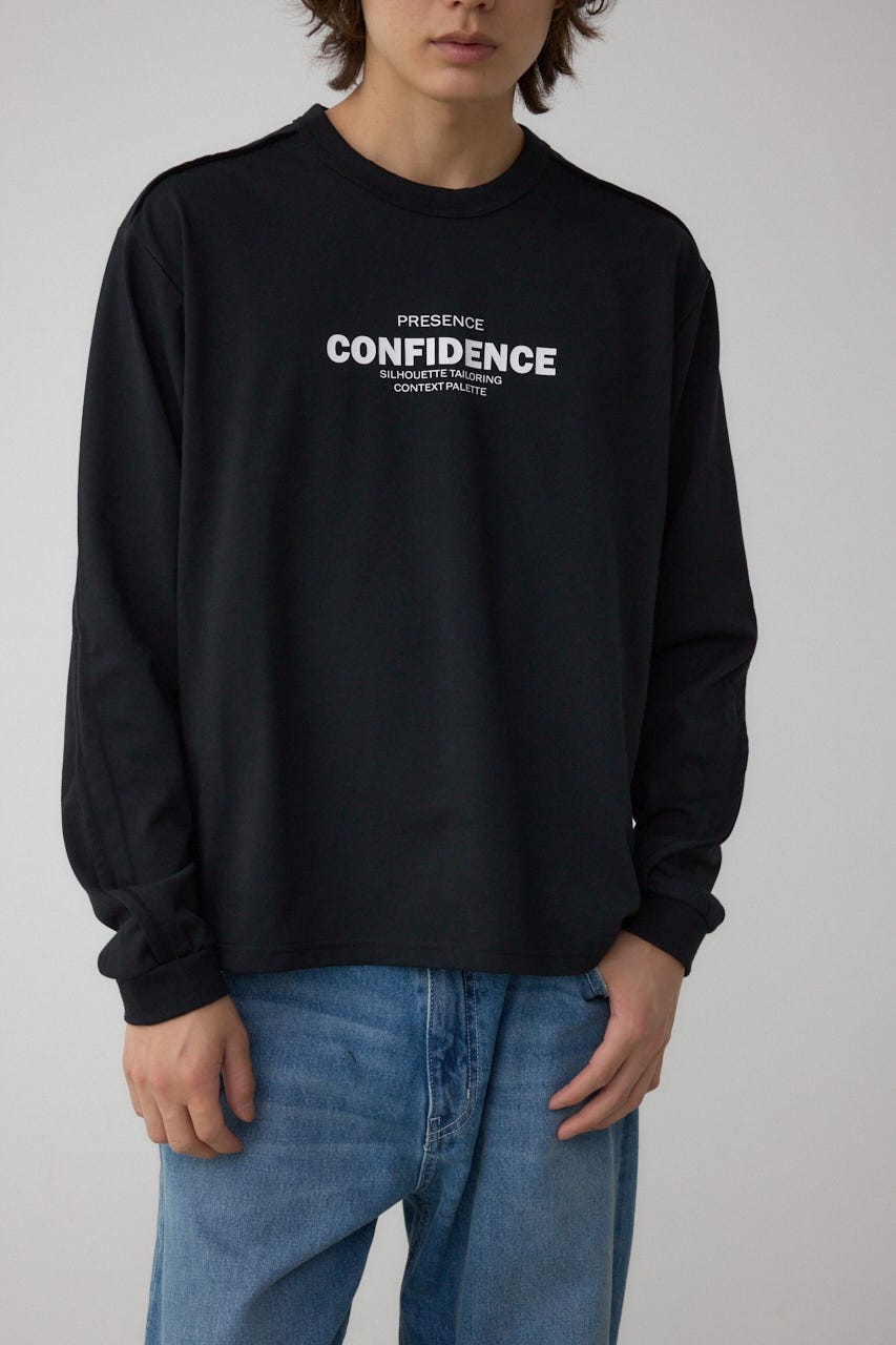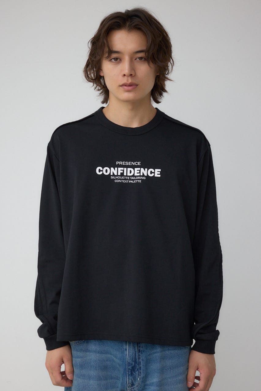 腕にタックデザインが入ったフロントロゴプリントのロングTシャツになります。