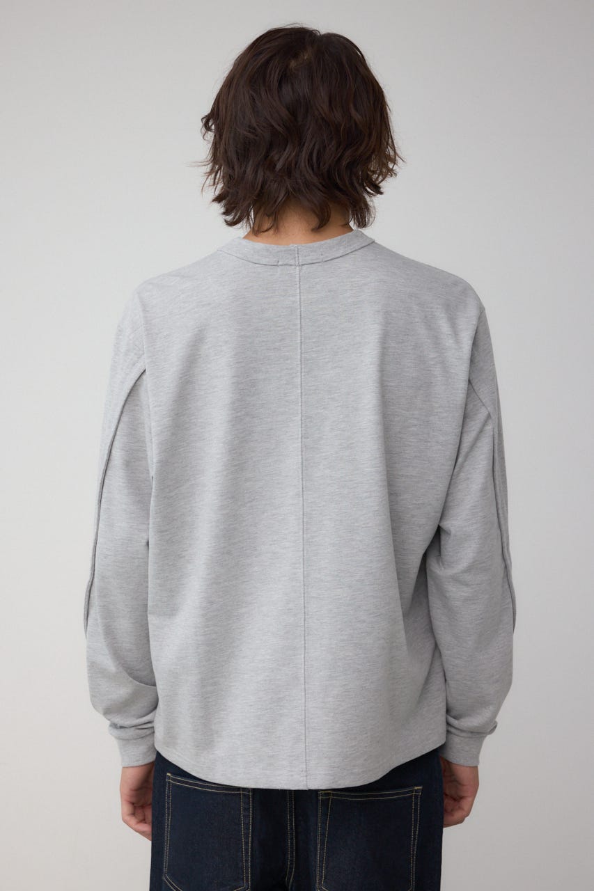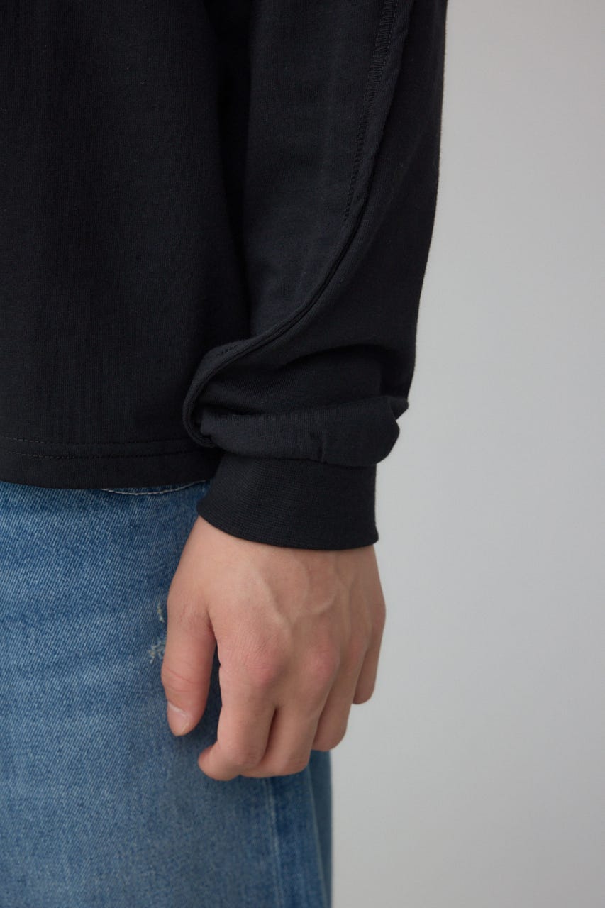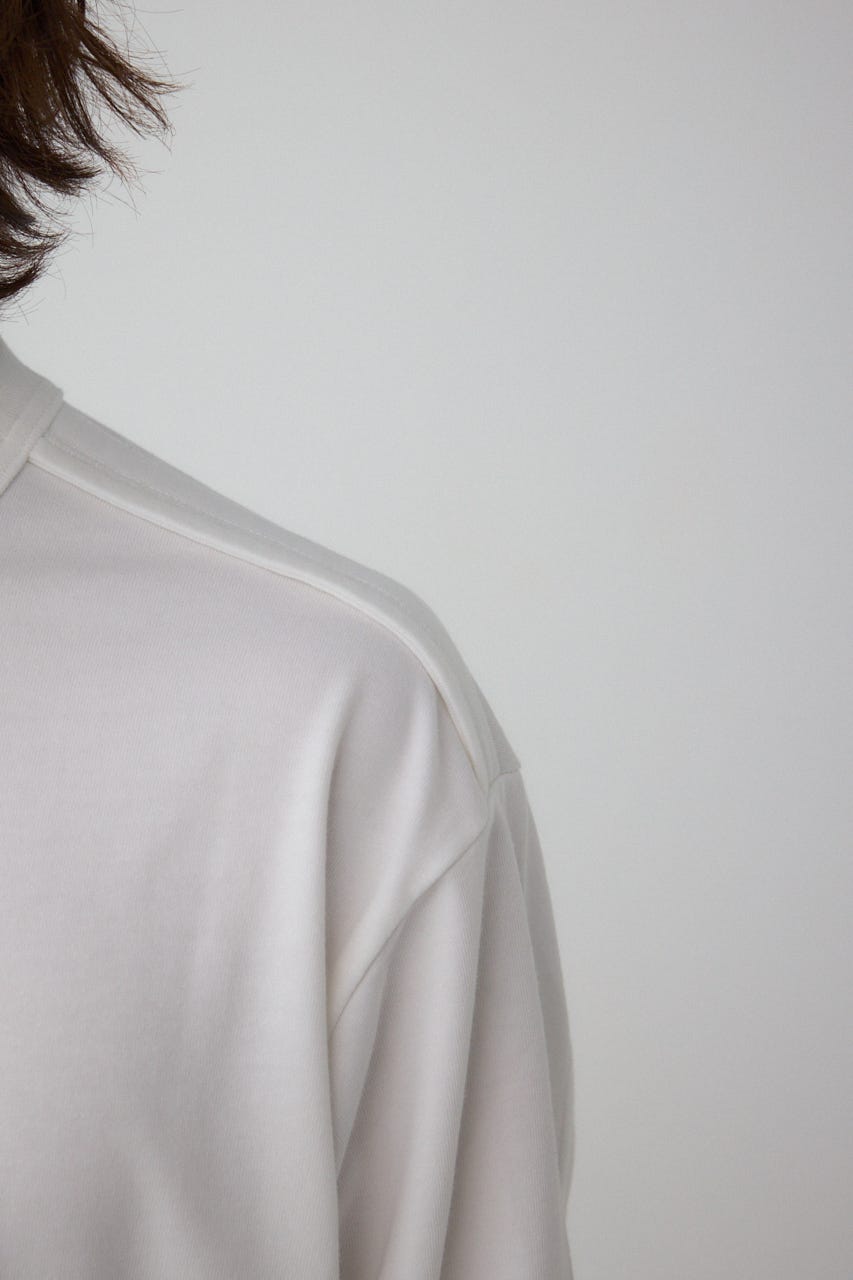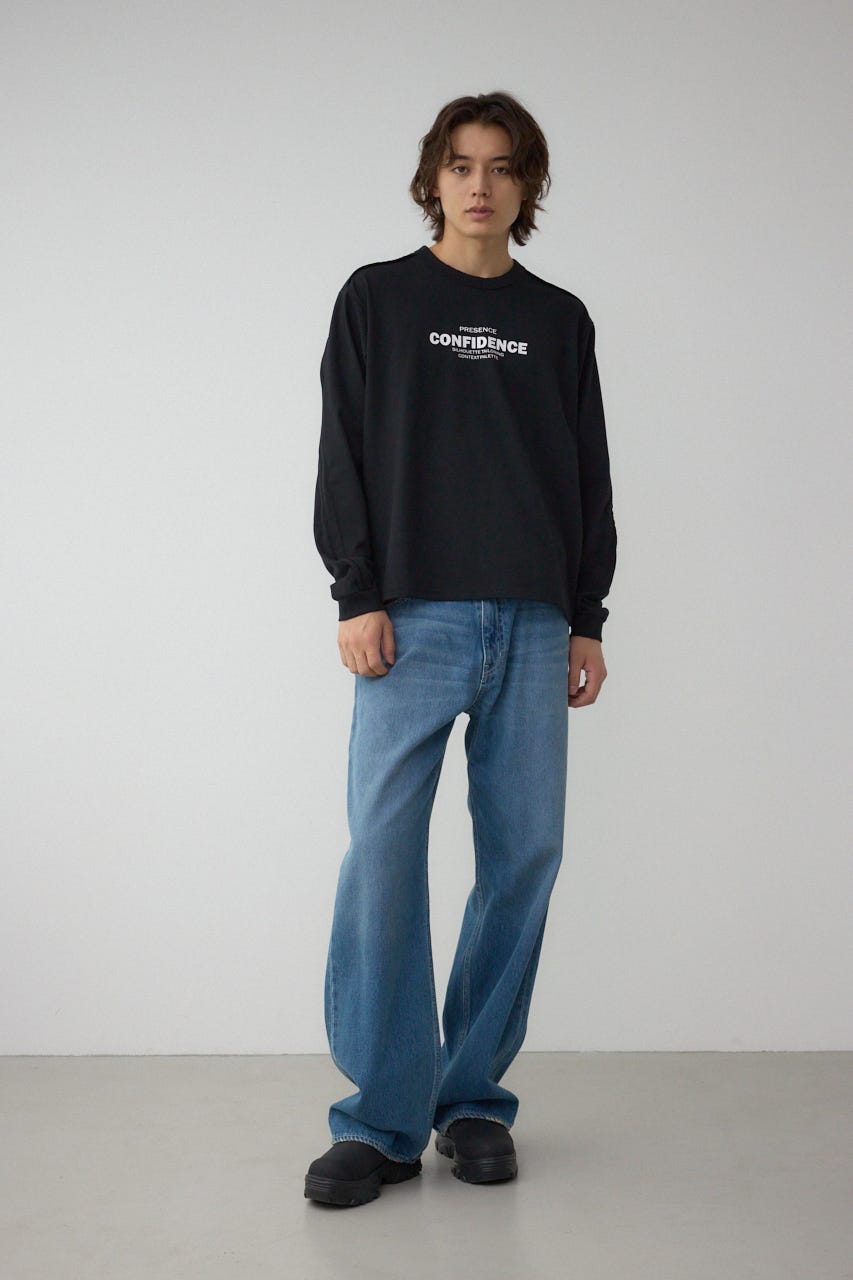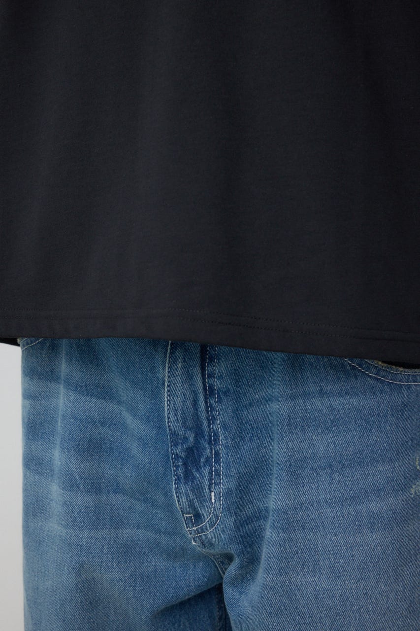 腕にタックデザインが入ったフロントロゴプリントのロングTシャツになります。