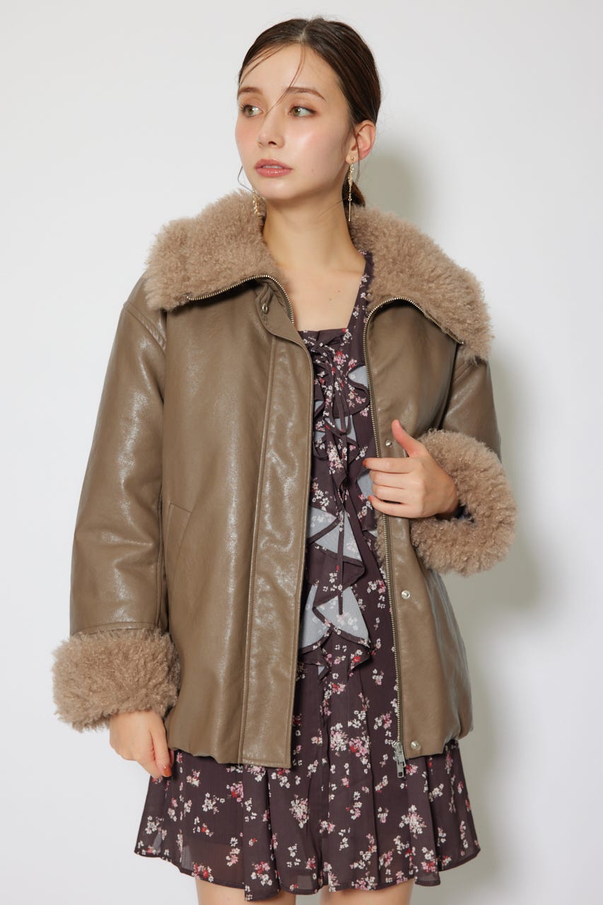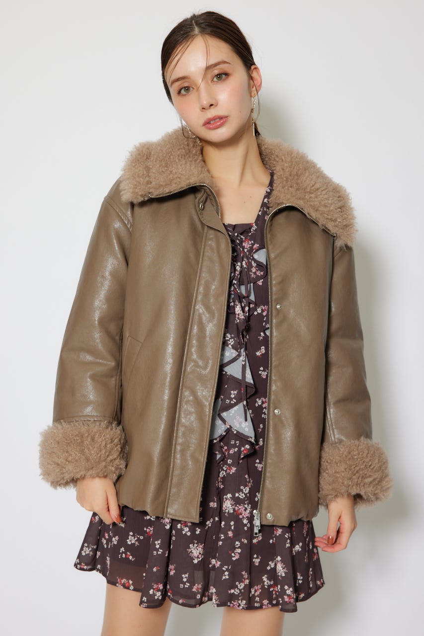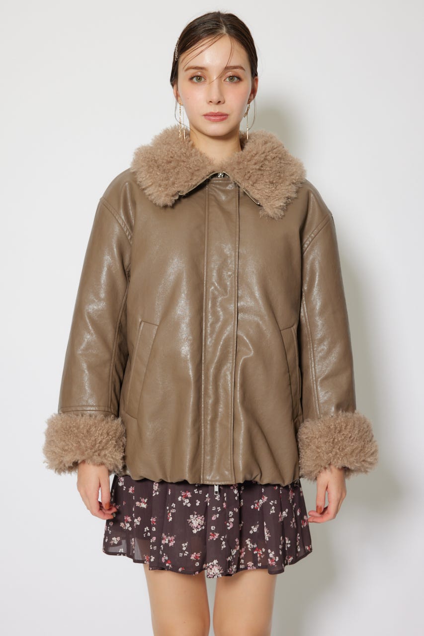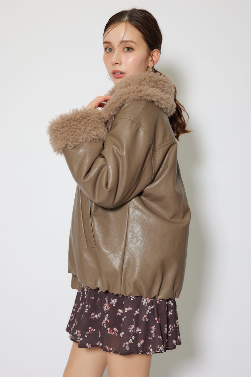 【着るだけで洗練された雰囲気のあるフェイクレザー×ファーのボンバージャケット】