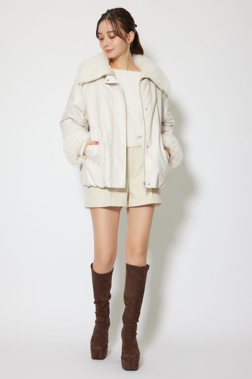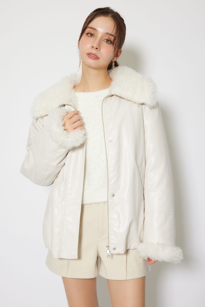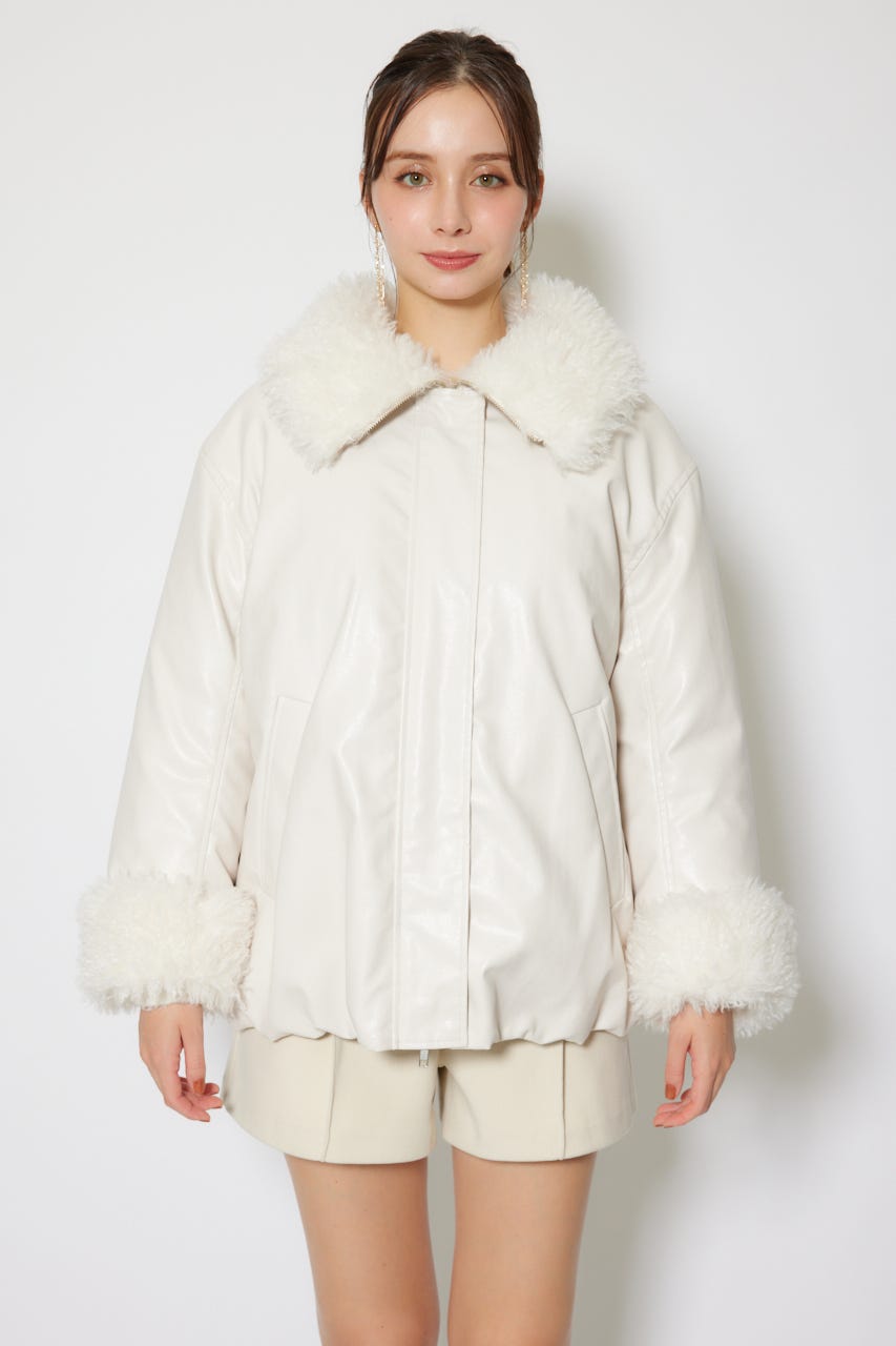 トレンド感あふれるショート丈に、ふわっとボリュームのあるプードルフェイクファーの素材で襟を表現した1枚で主役級のアウターに仕上がりました。