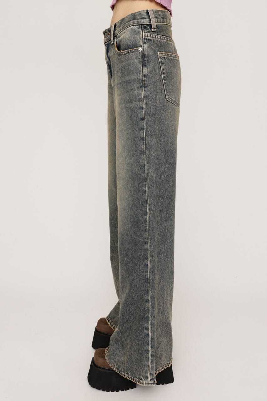 ヴィンテージライクな加工とローウエストが今季のムードを感じさせるアイテムです。