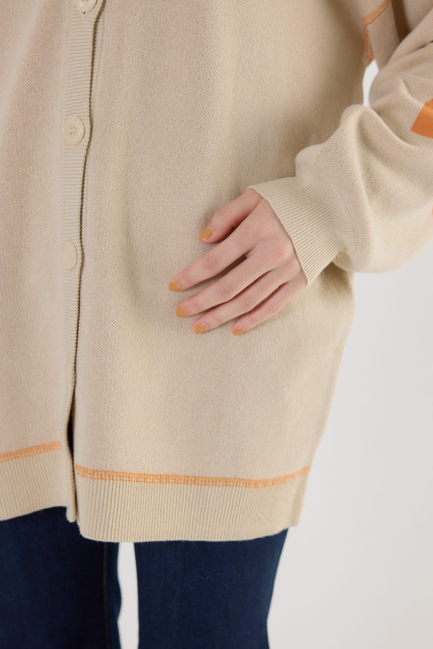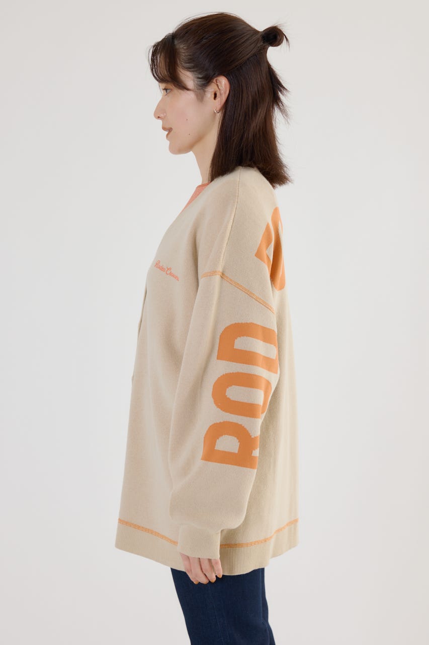 スウェット見えの風合いの柔らかいニットカーディガン。