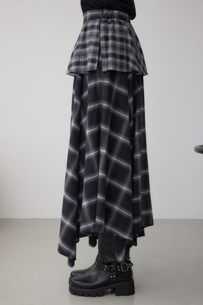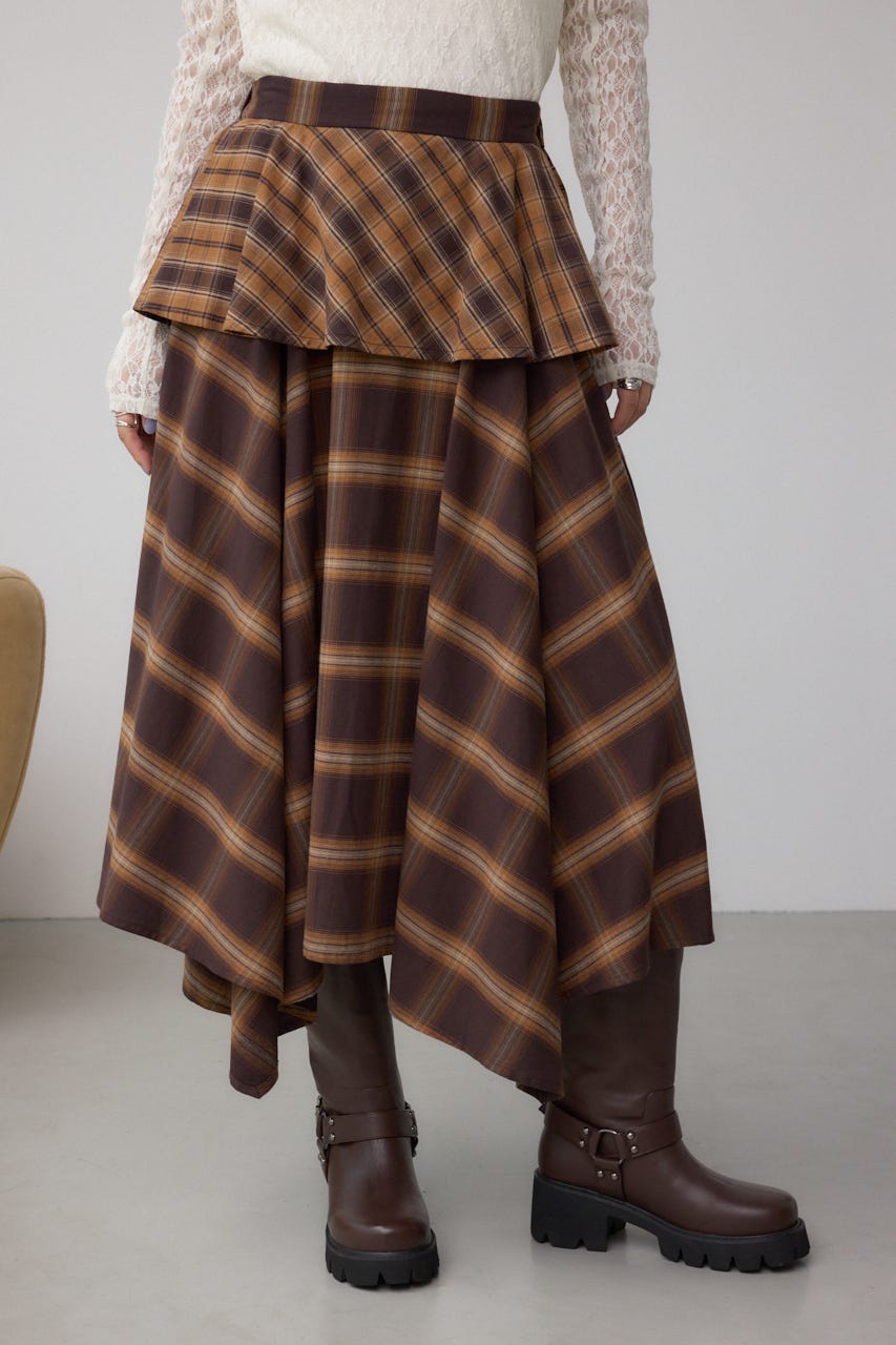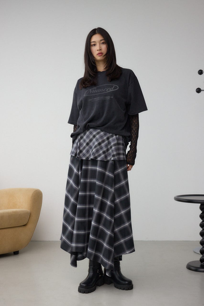 2素材のチェック柄を使用したレイヤ―ドデザインもポイント。