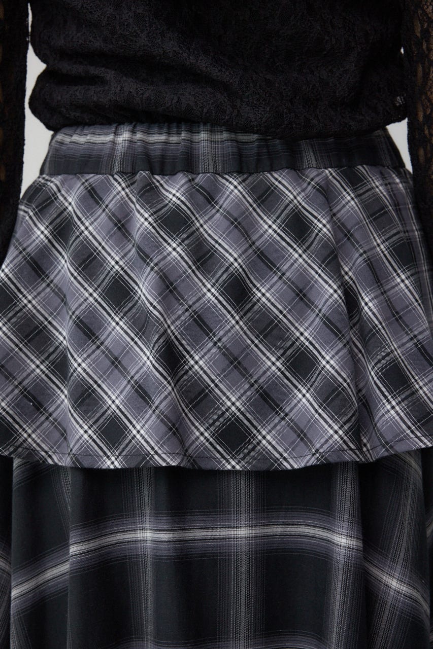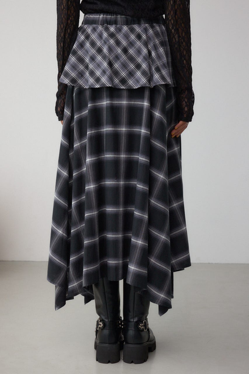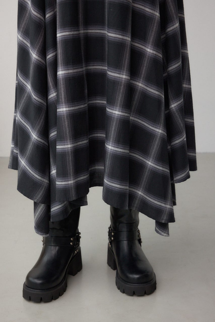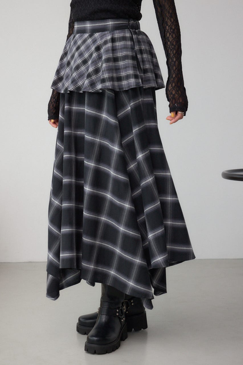 2素材のチェック柄を使用したレイヤ―ドデザインもポイント。