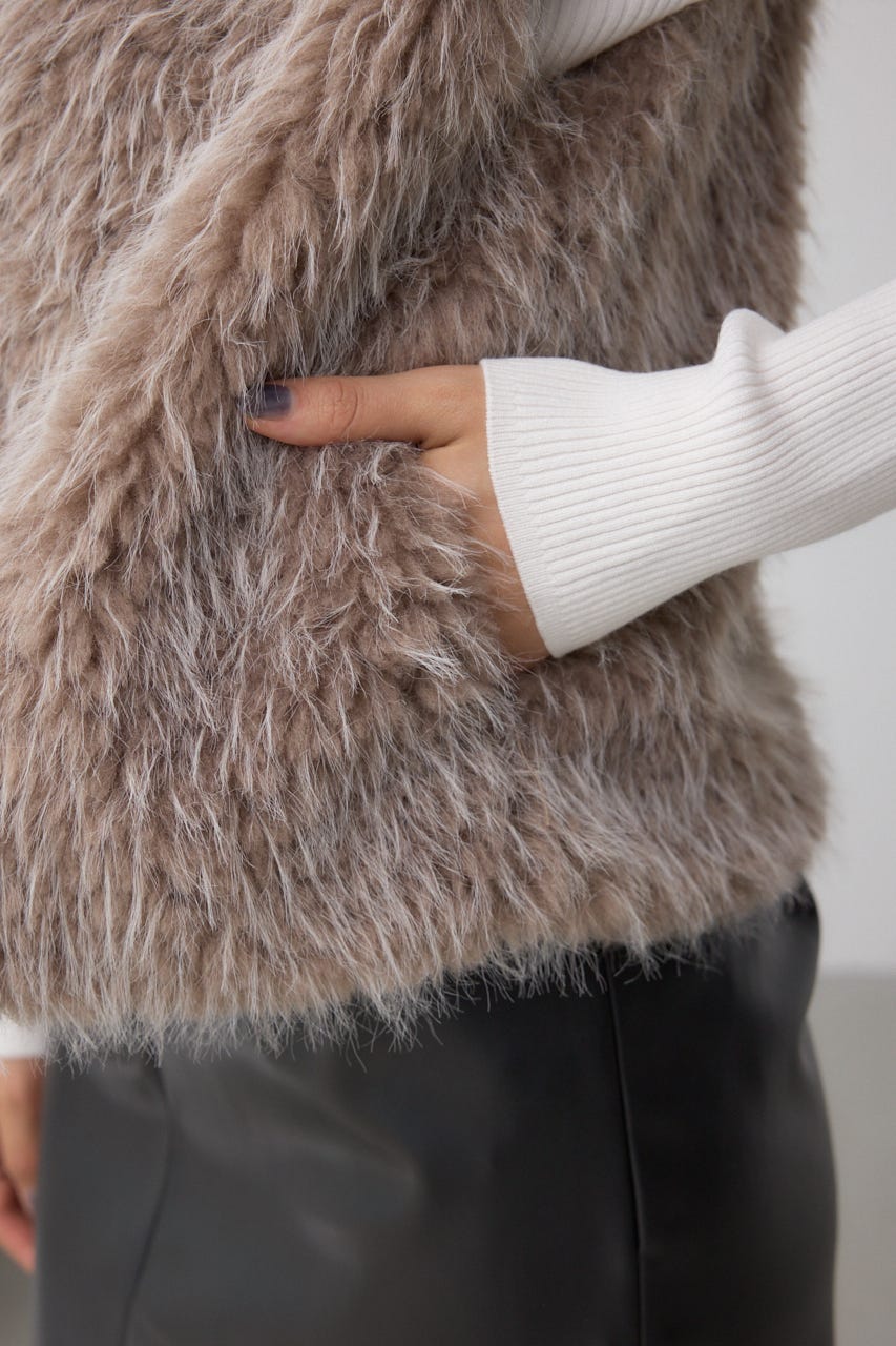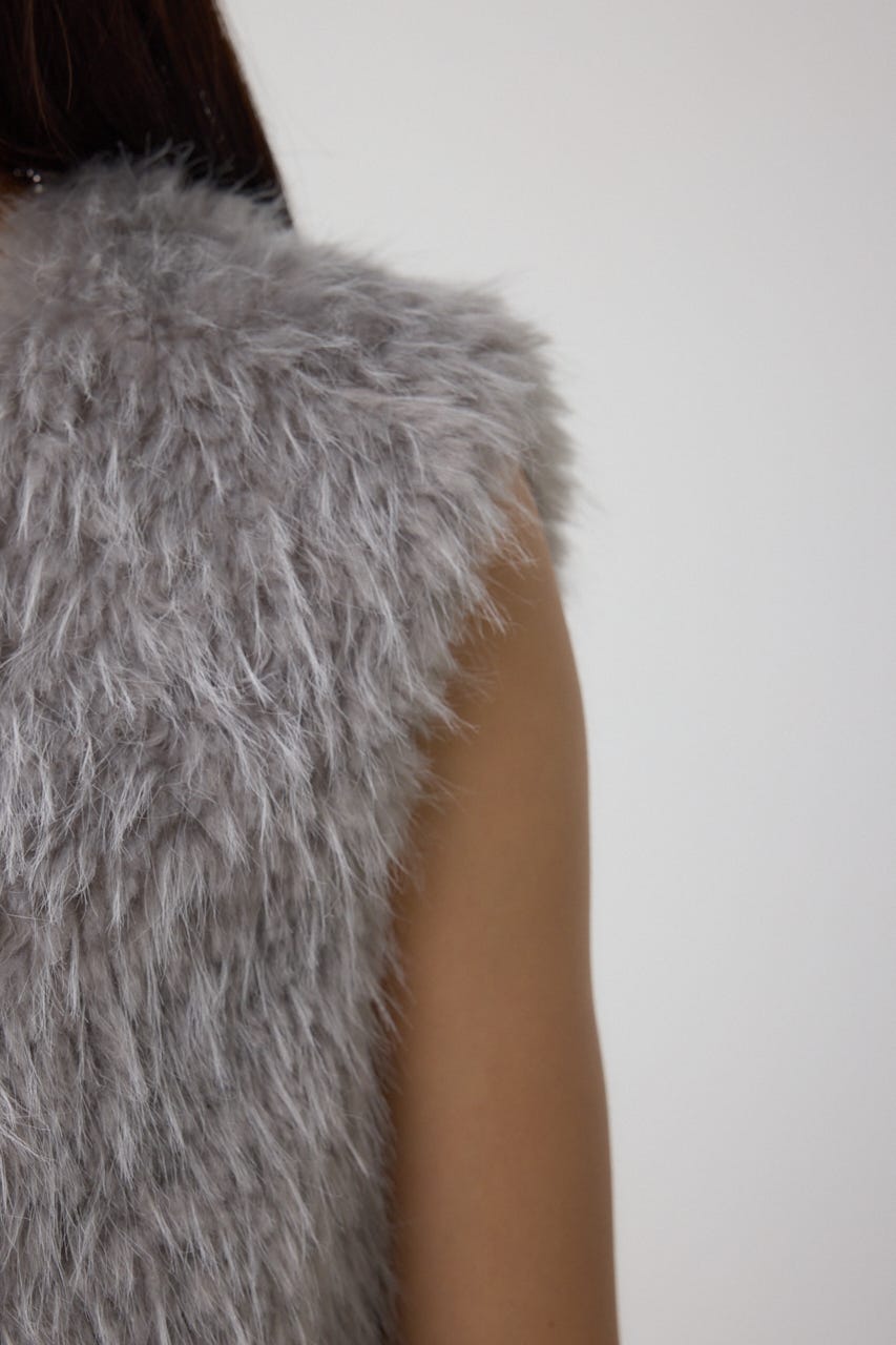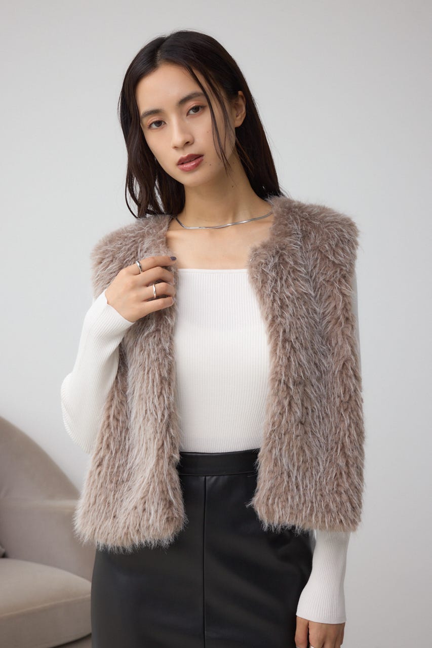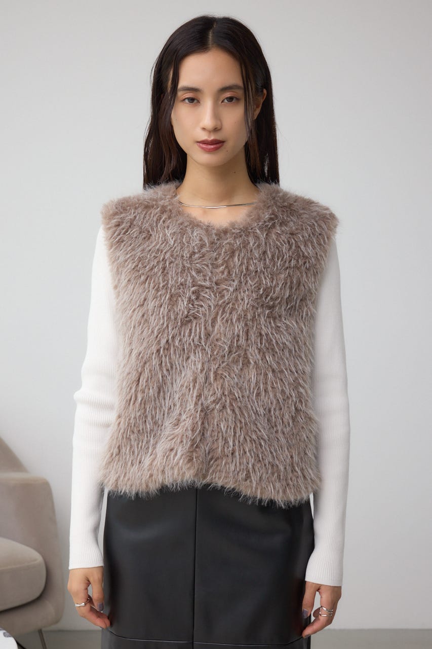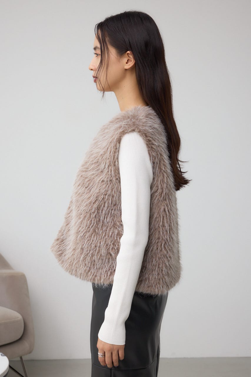 違う表情のファーがミックスされた素材を使用したファーベスト。
