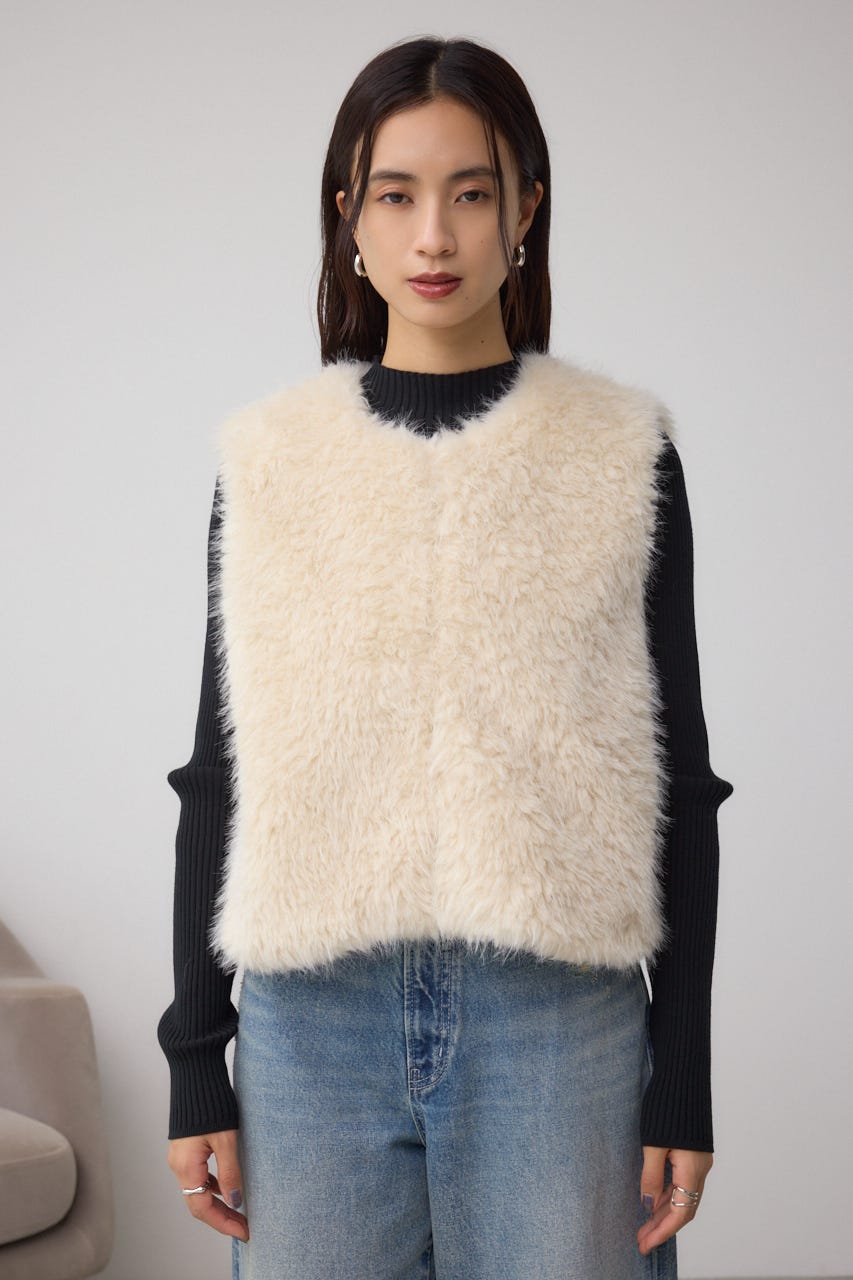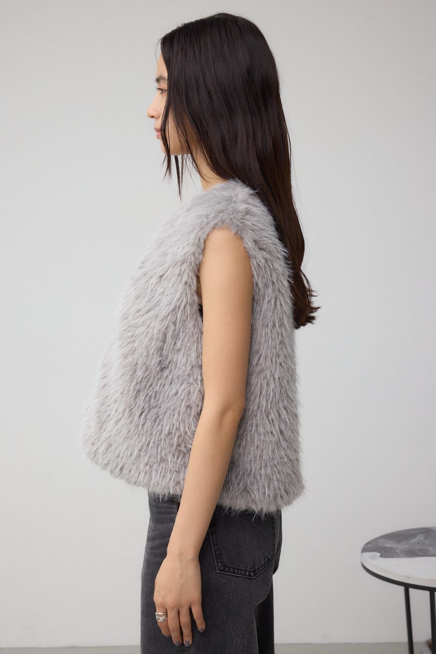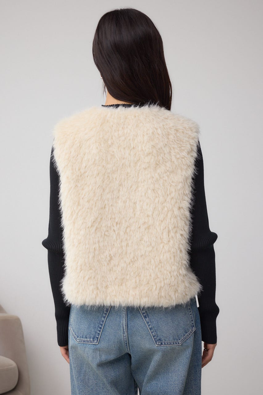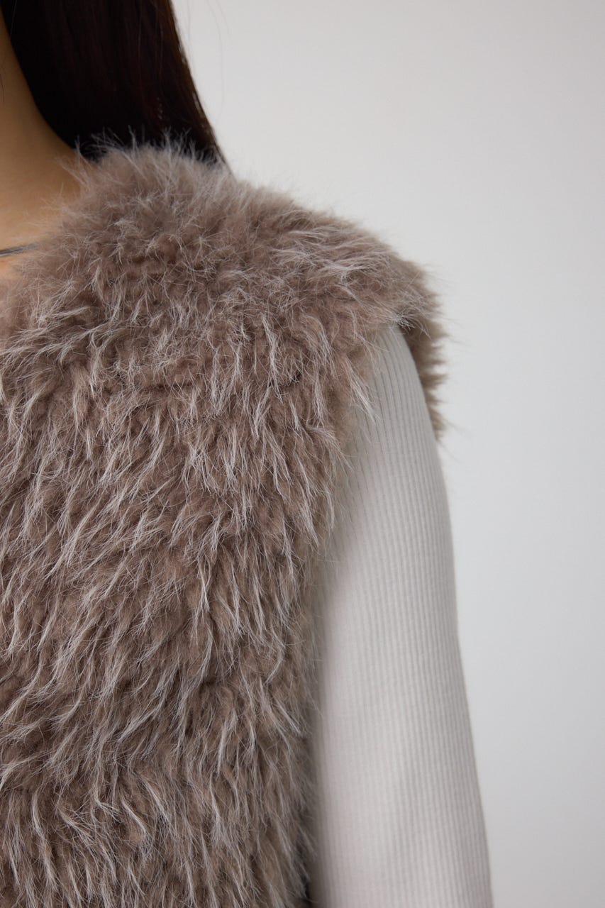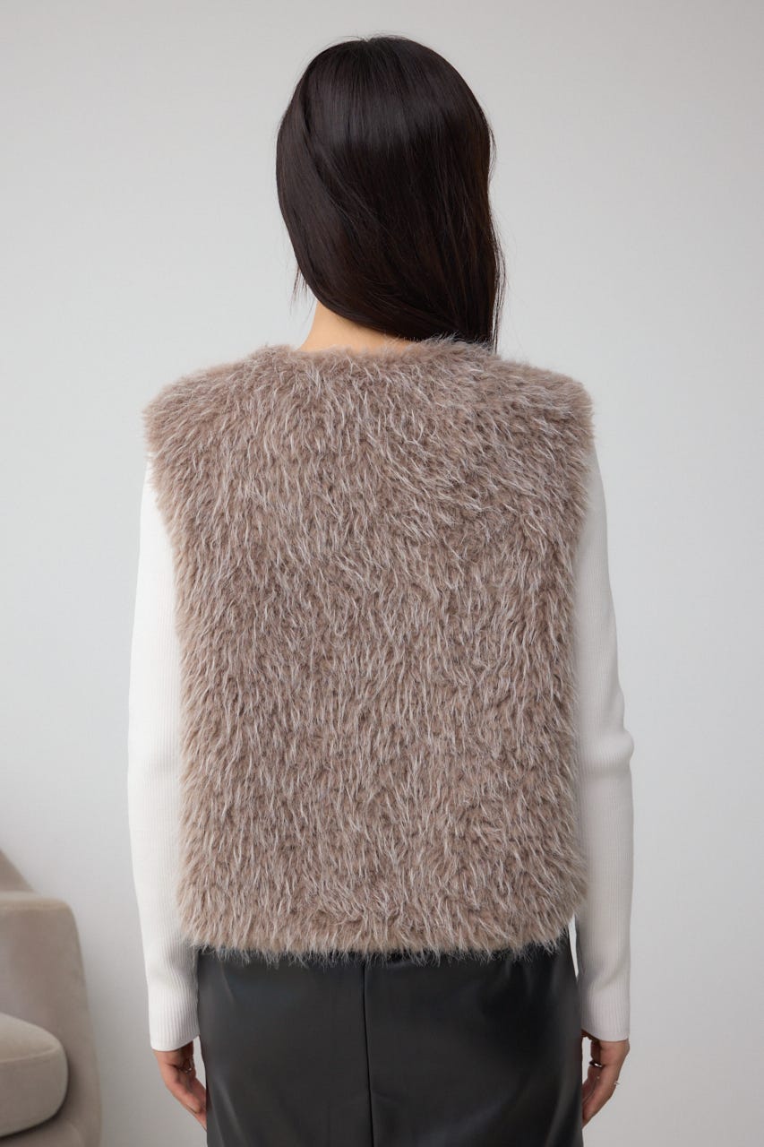 違う表情のファーがミックスされた素材を使用したファーベスト。