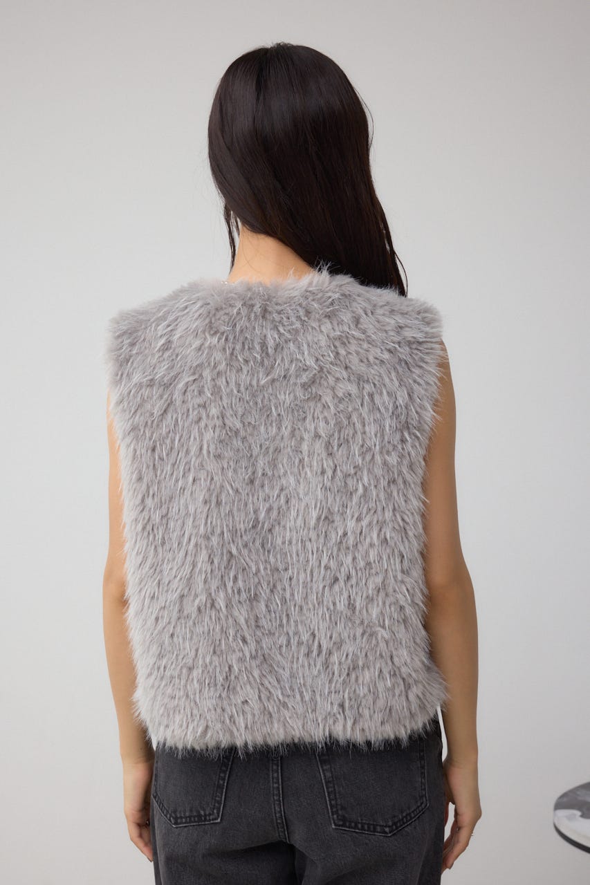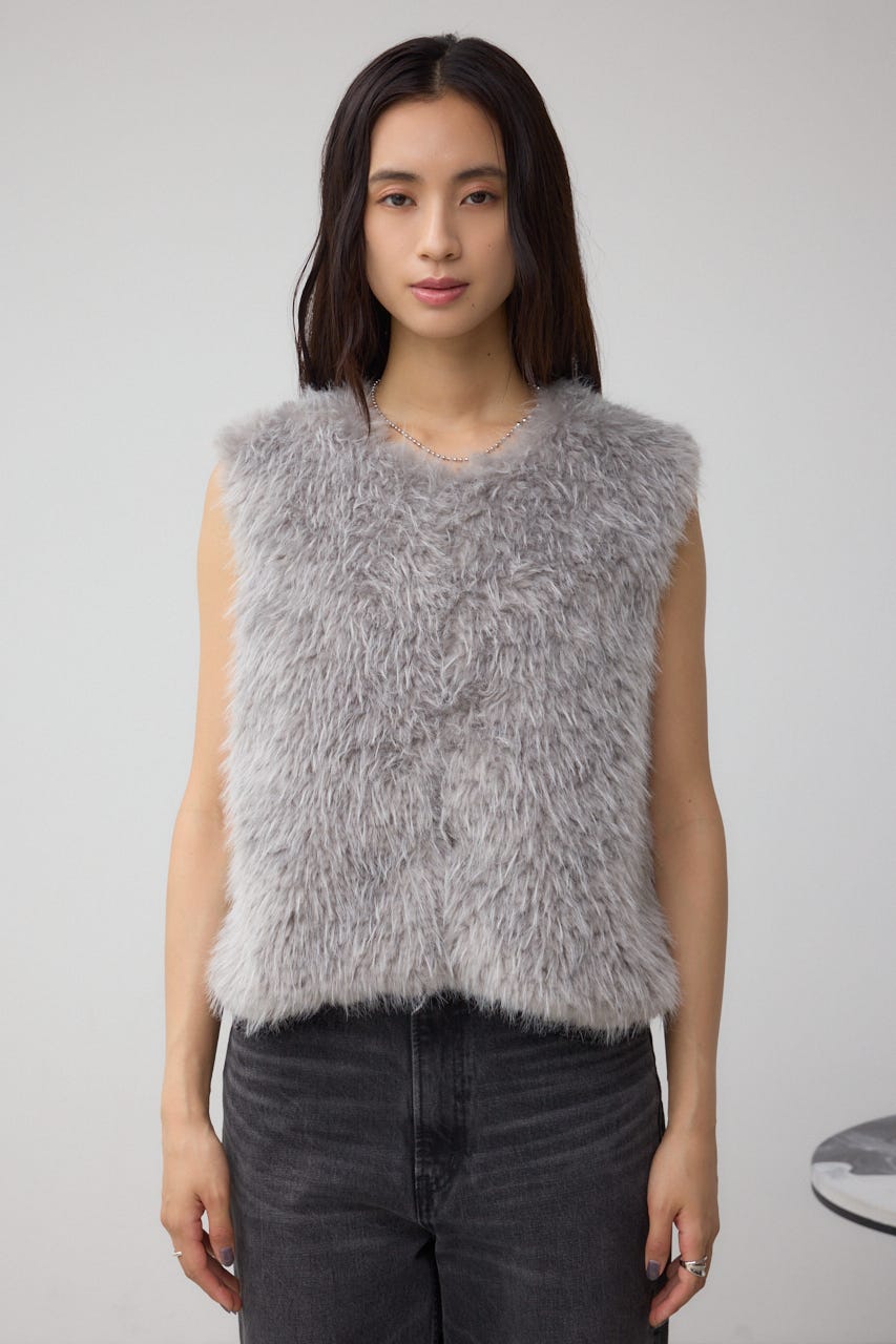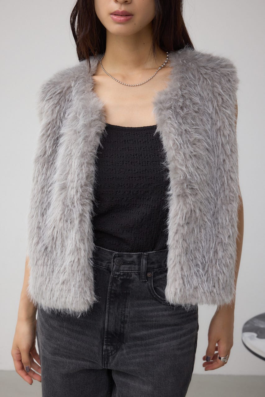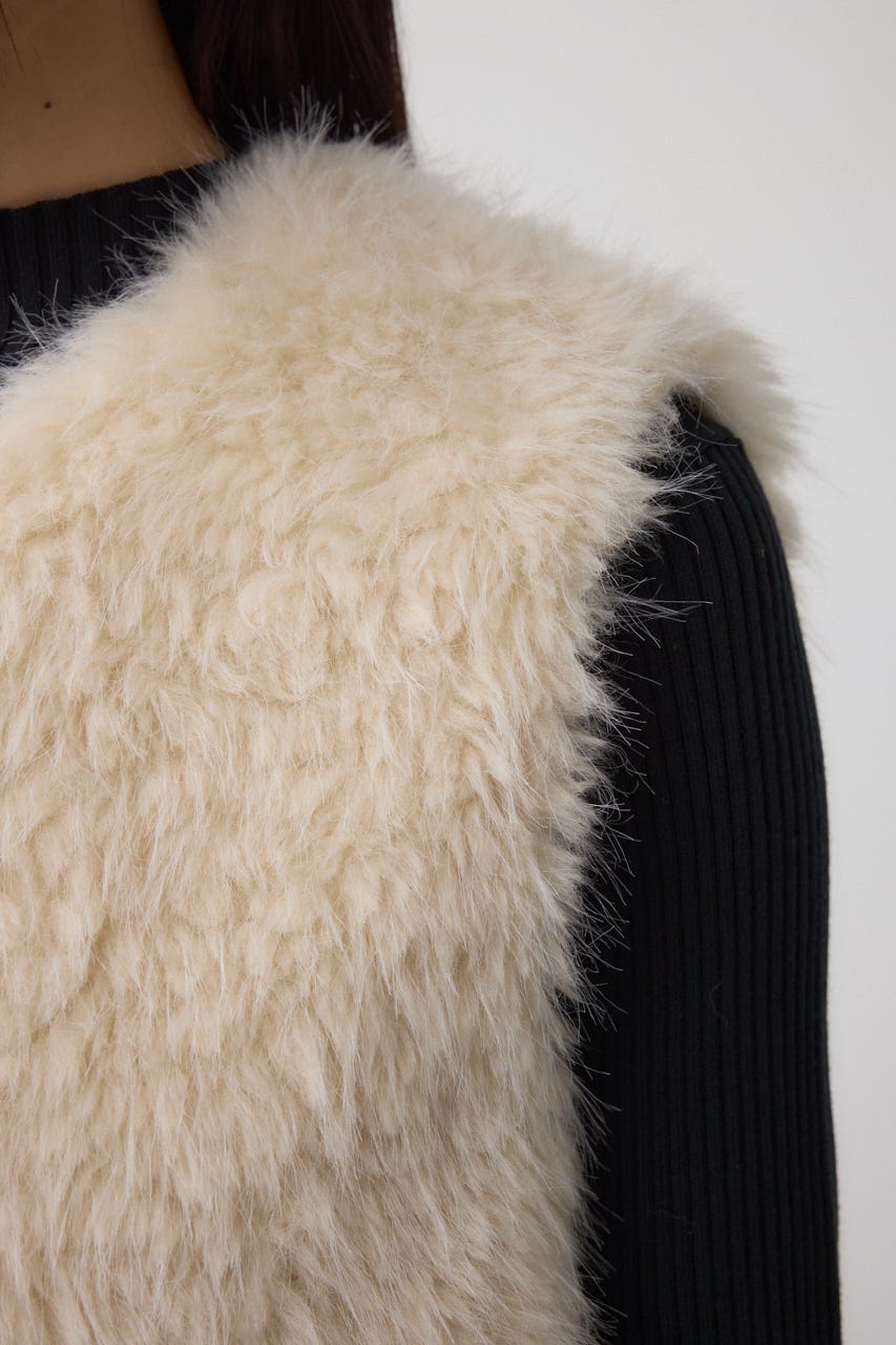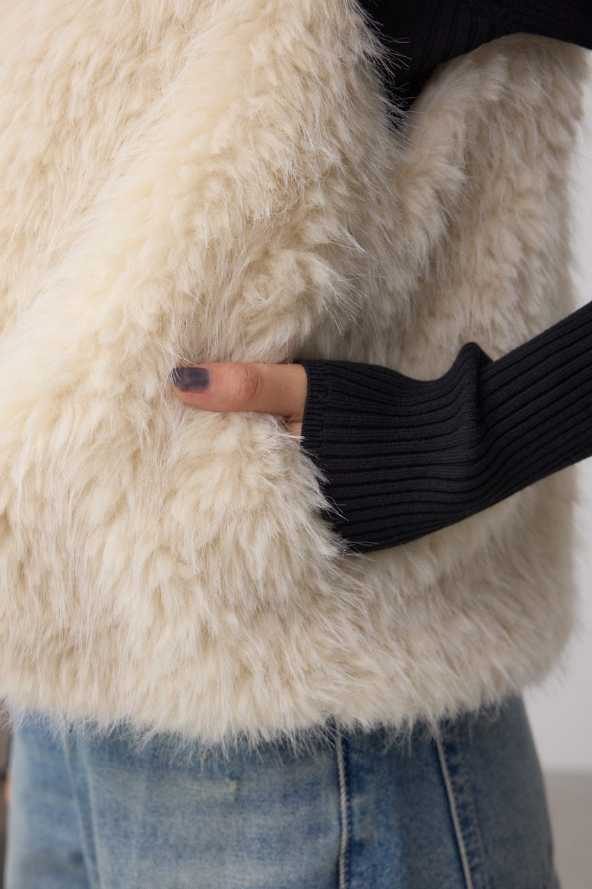 違う表情のファーがミックスされた素材を使用したファーベスト。