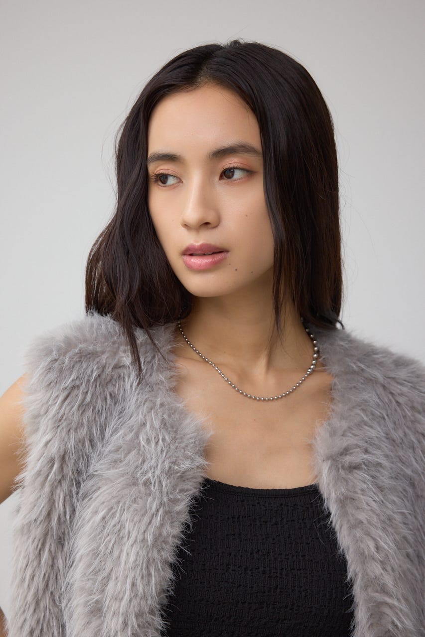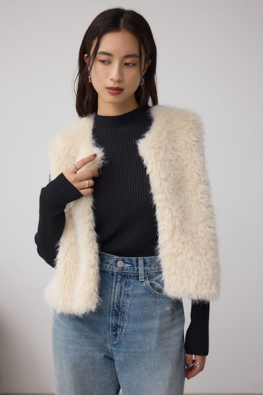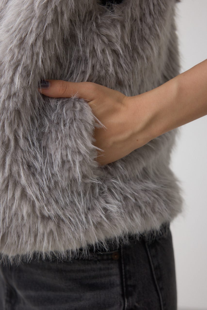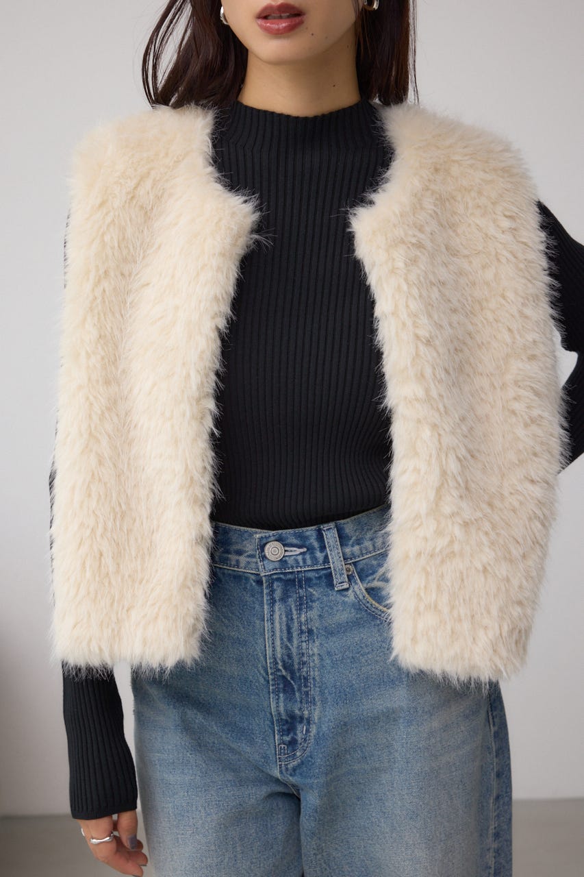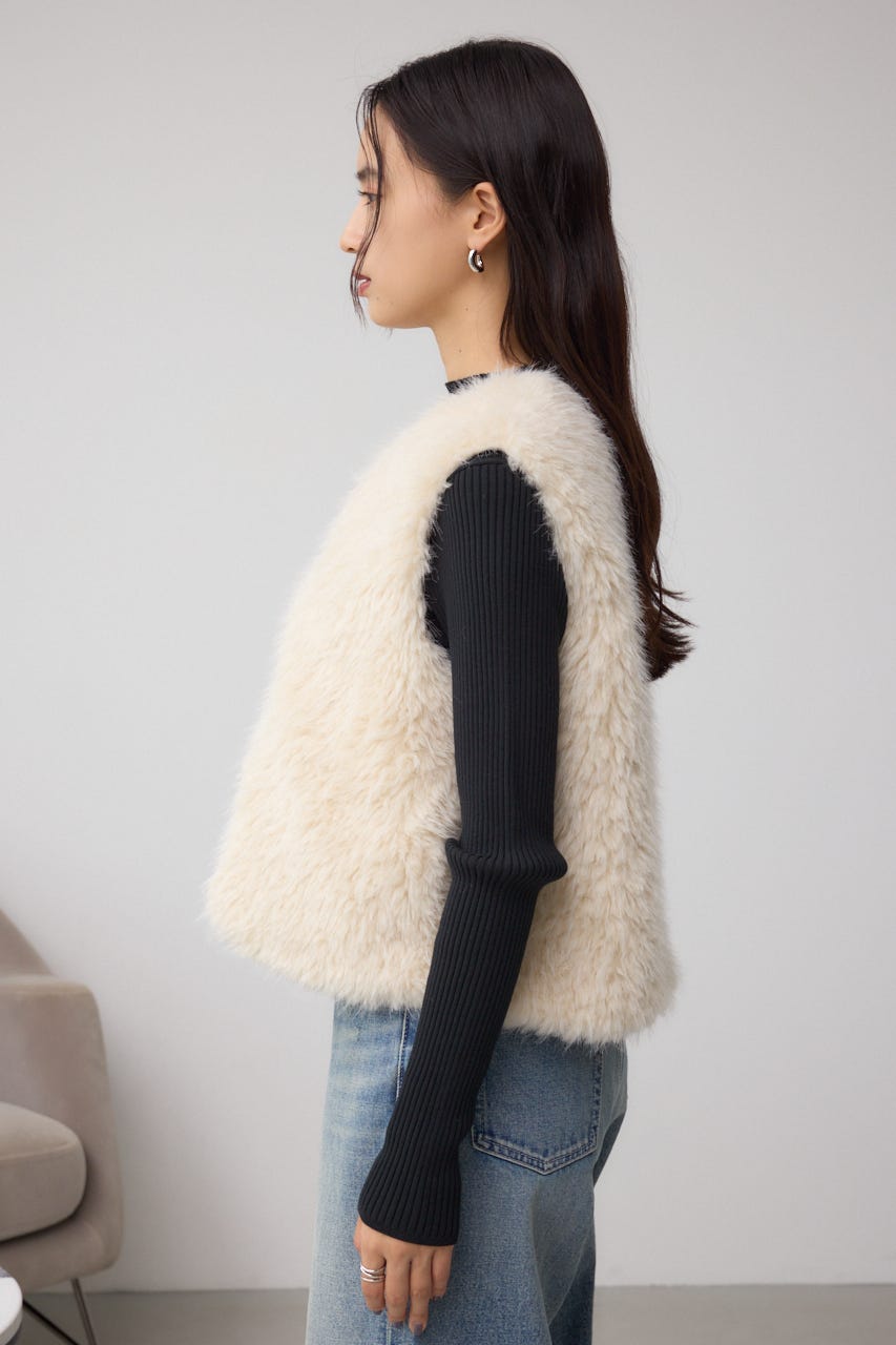 違う表情のファーがミックスされた素材を使用したファーベスト。
