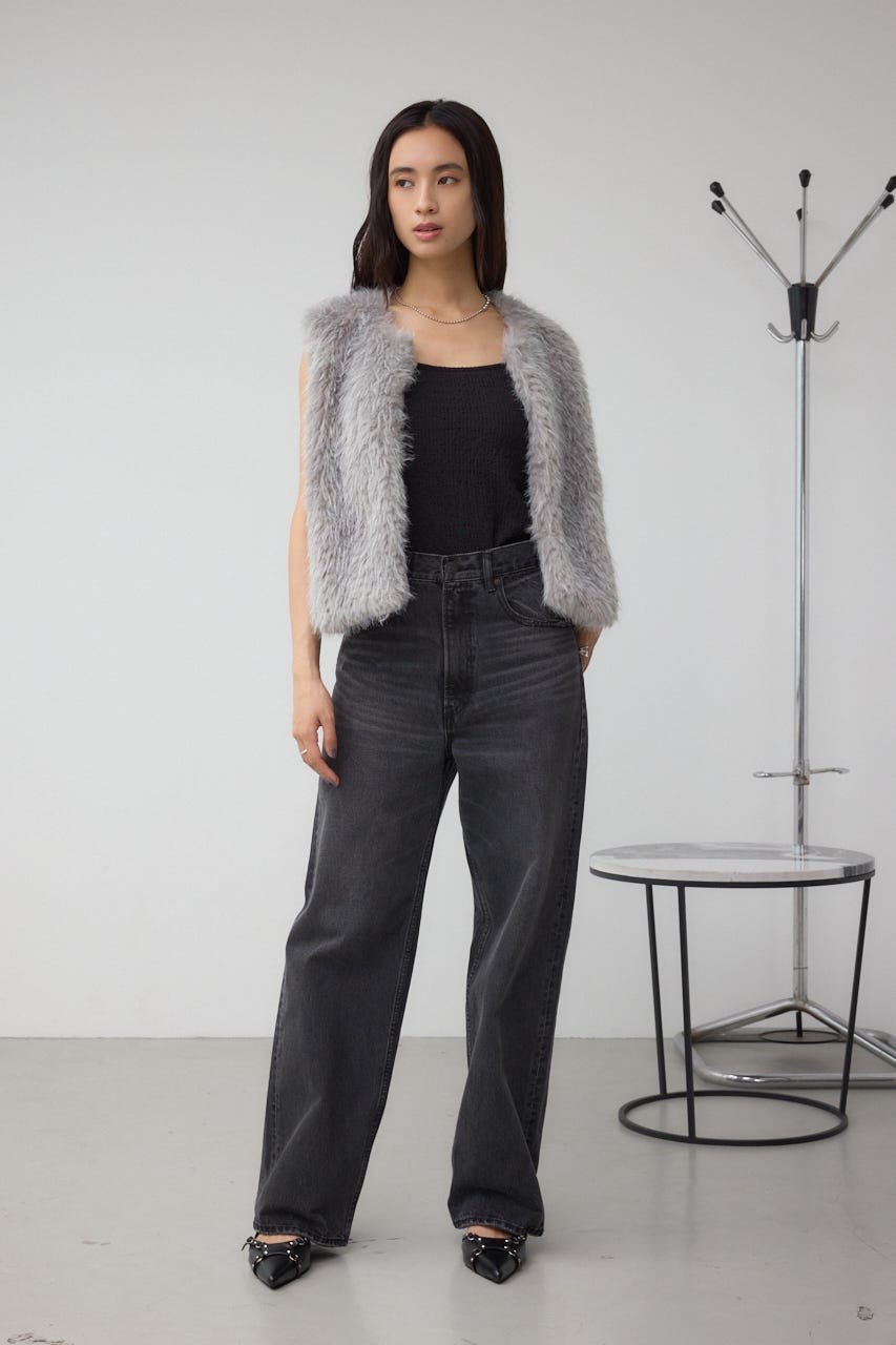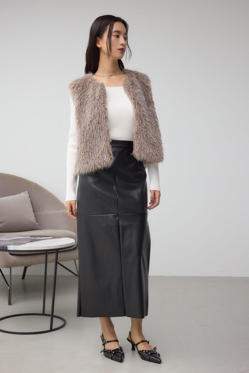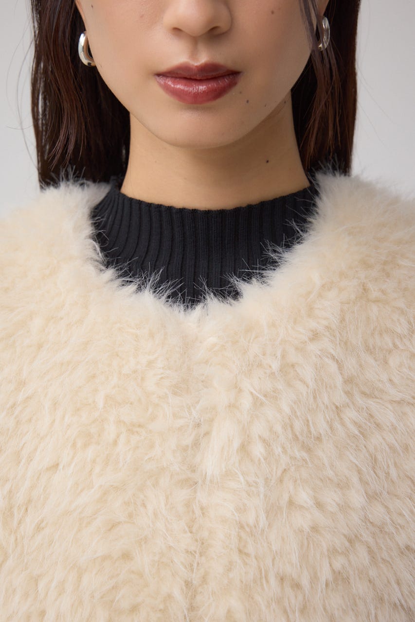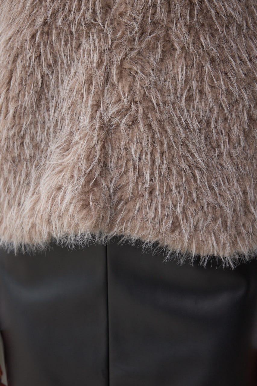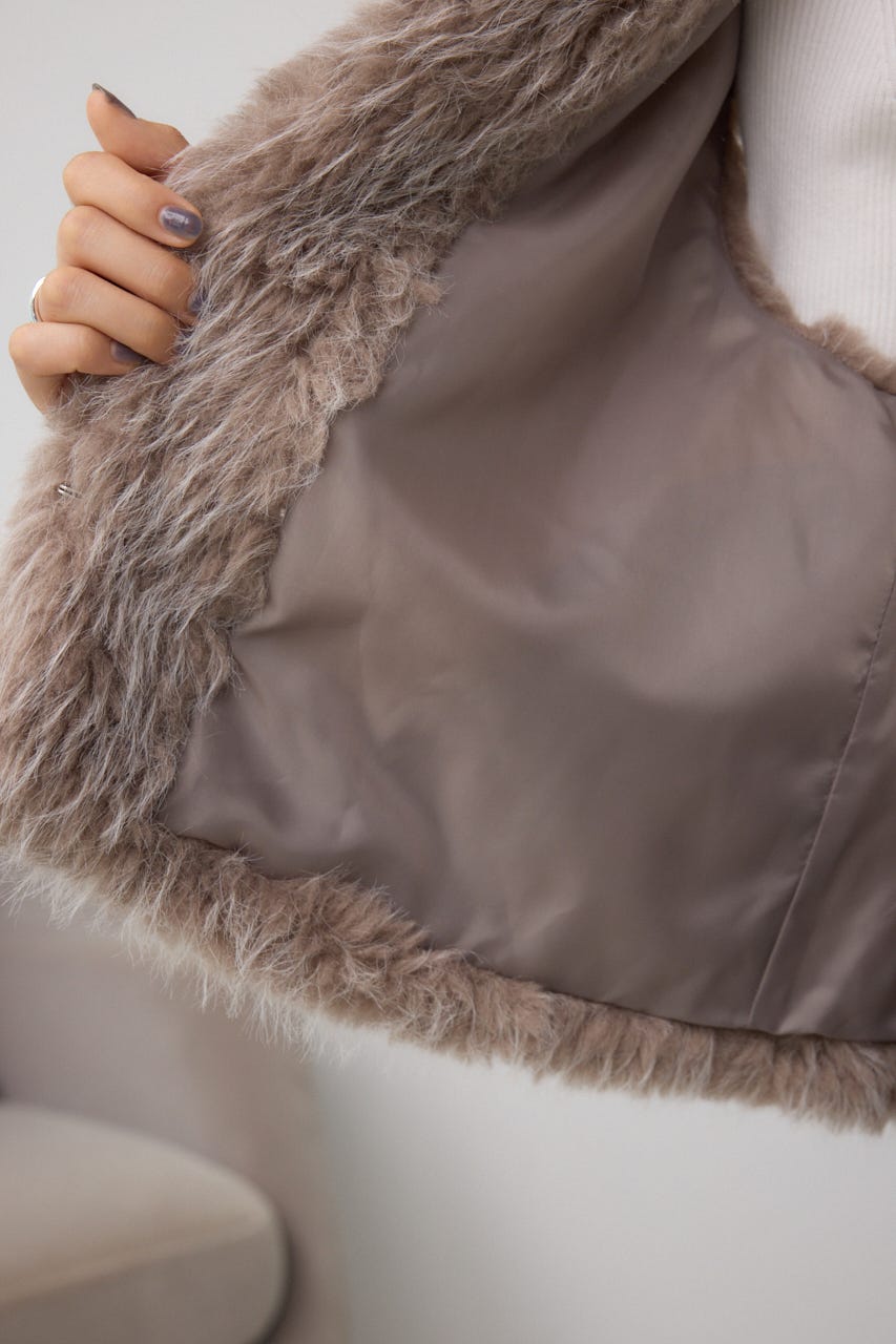 違う表情のファーがミックスされた素材を使用したファーベスト。