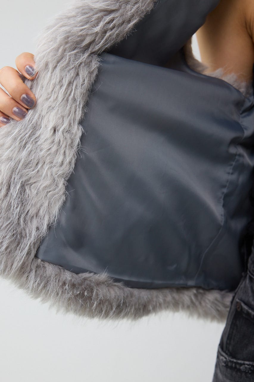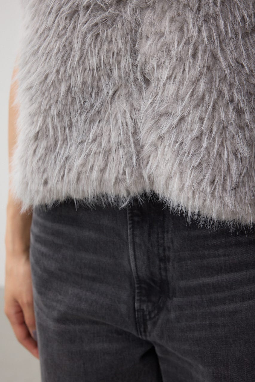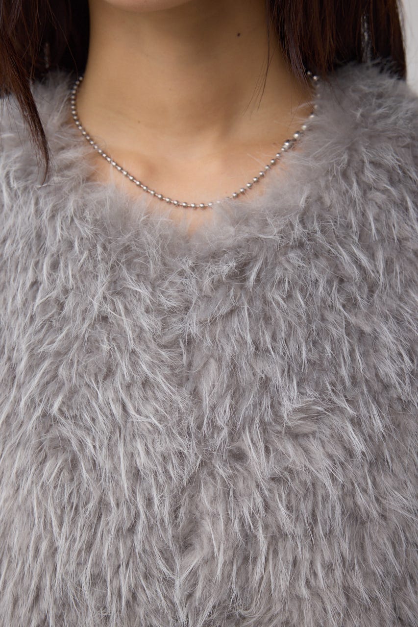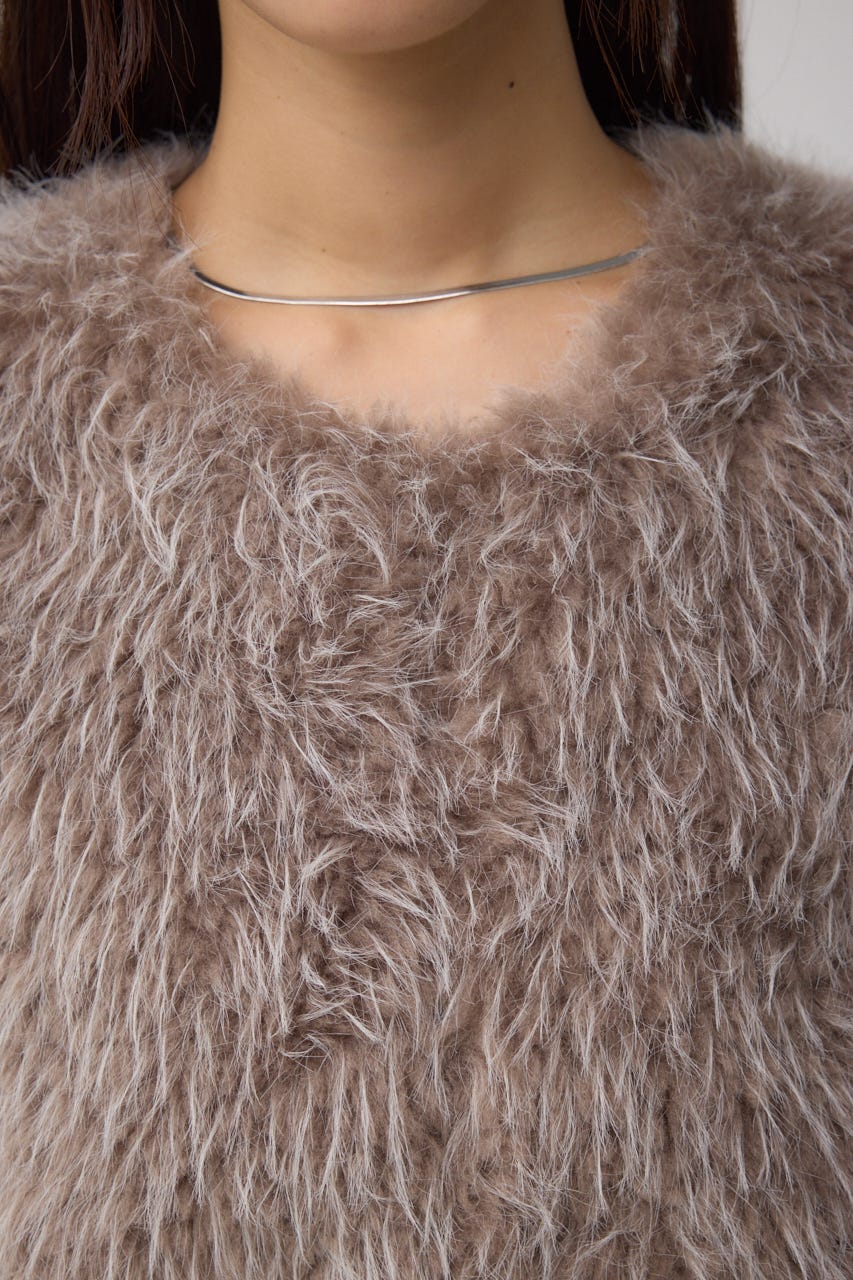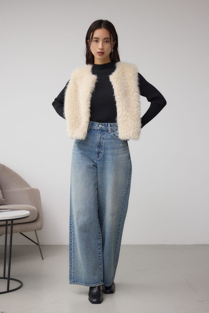 違う表情のファーがミックスされた素材を使用したファーベスト。