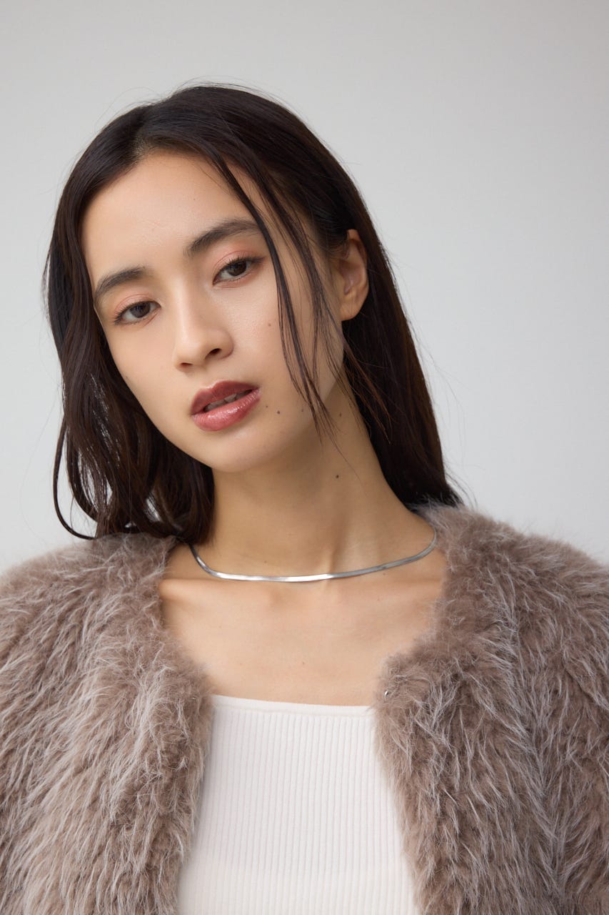 違う表情のファーがミックスされており、表情豊かな表面感です。
