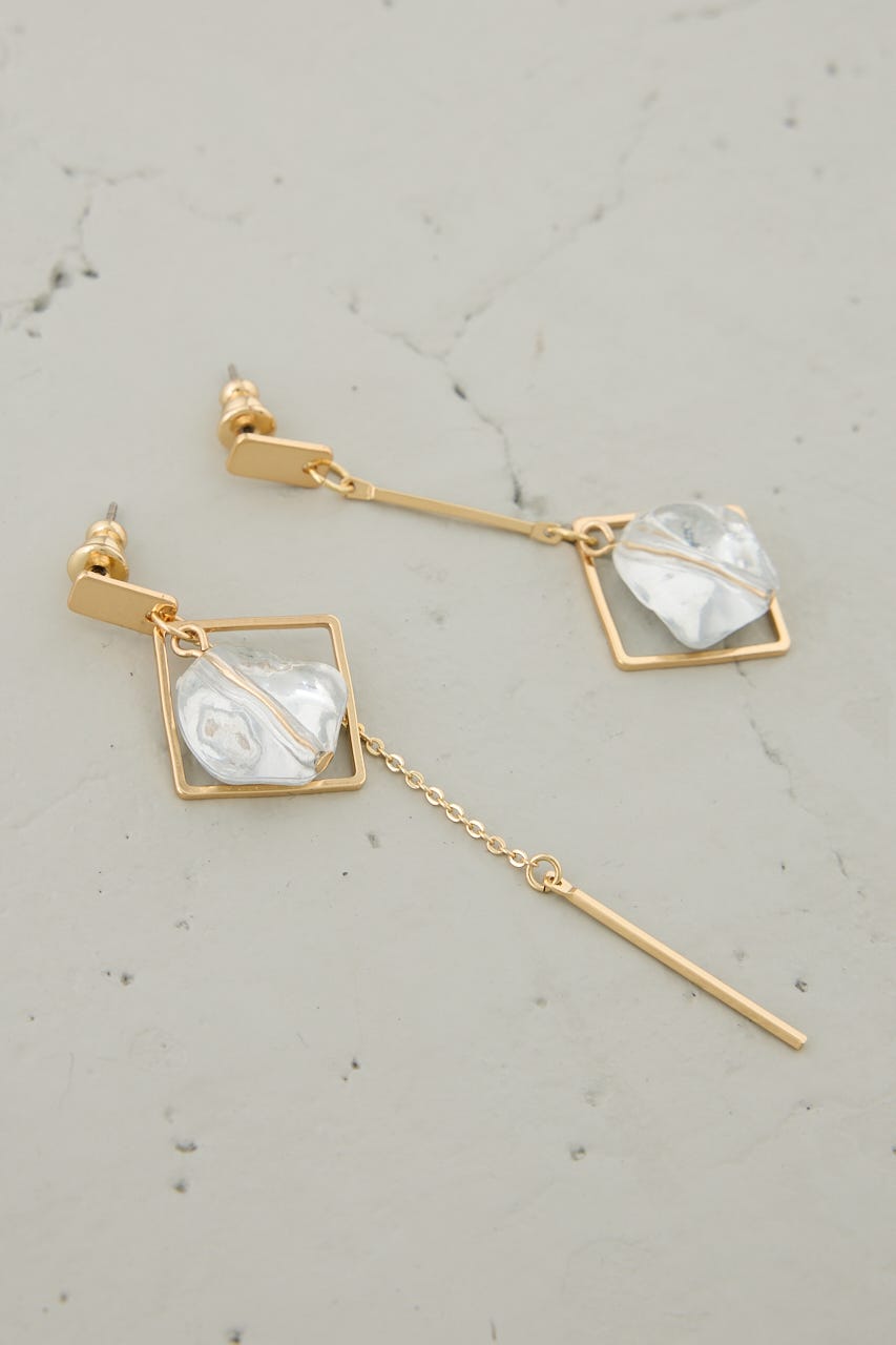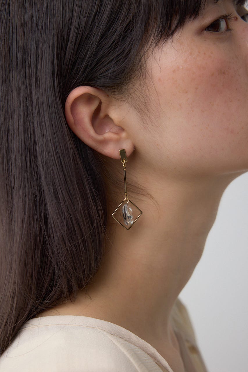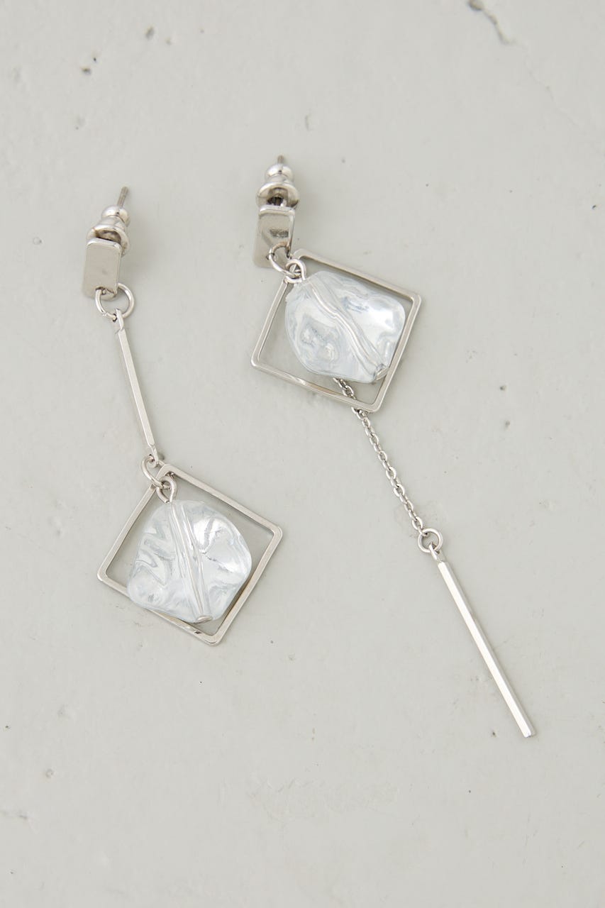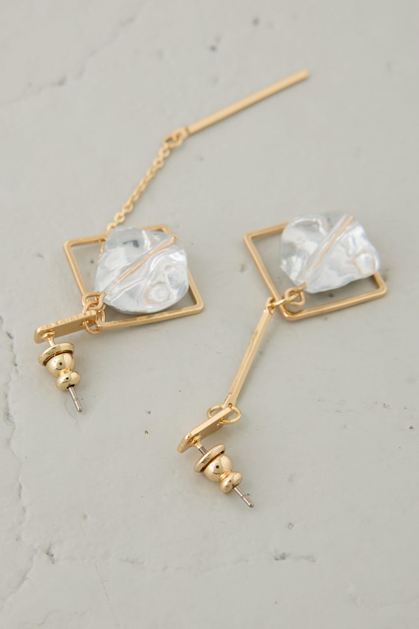 クリア×メタルの異素材ミックスが夏らしく涼しげな印象を演出する、アシンメトリーデザインのピアス。