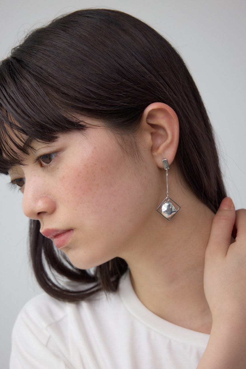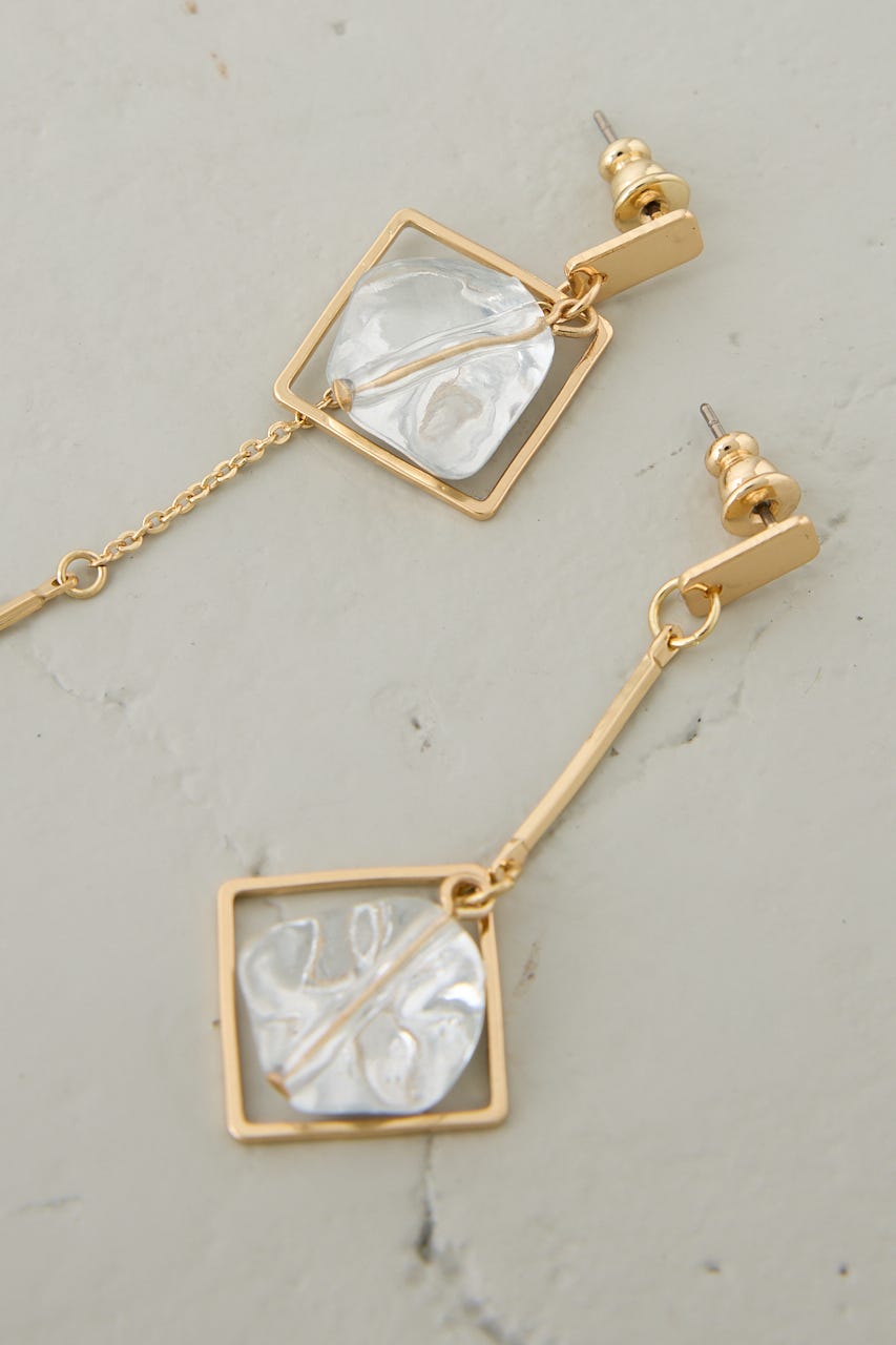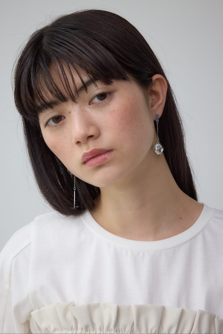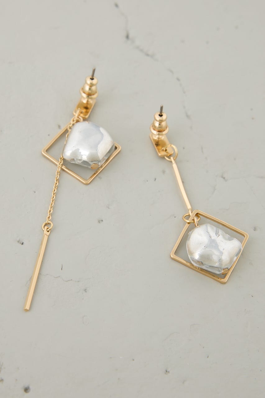 クリア×メタルの異素材ミックスが夏らしく涼しげな印象を演出する、アシンメトリーデザインのピアス。