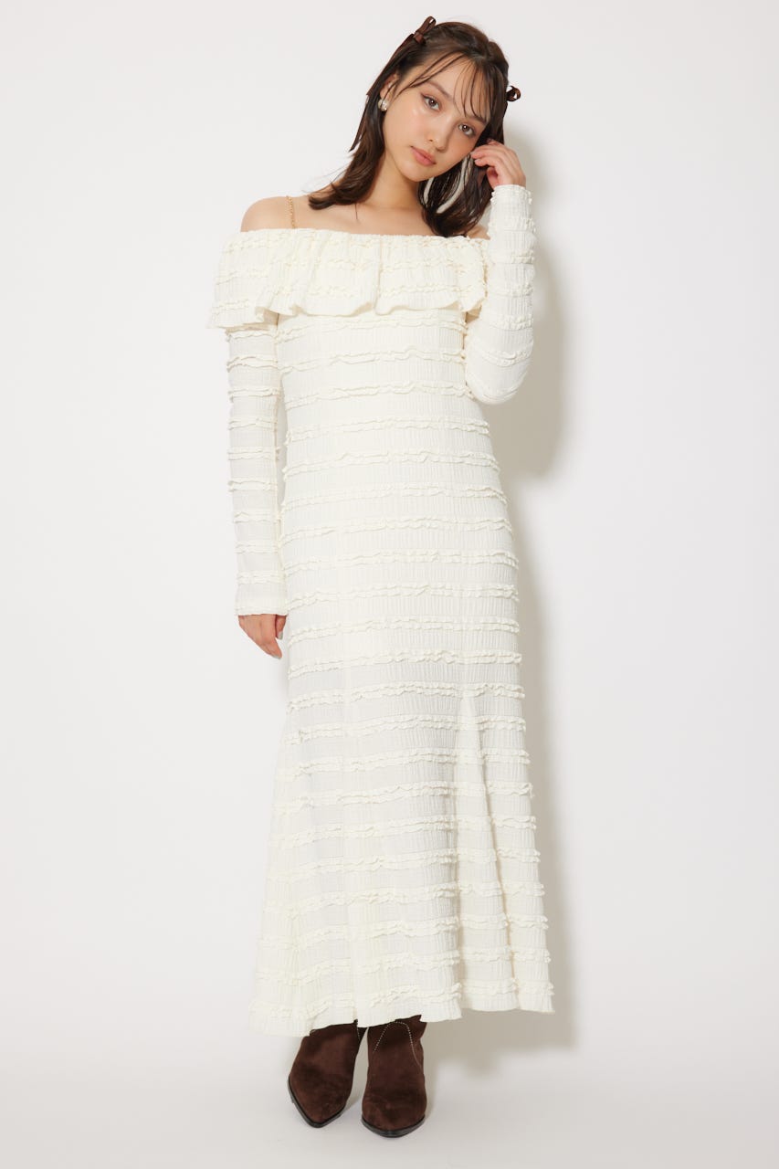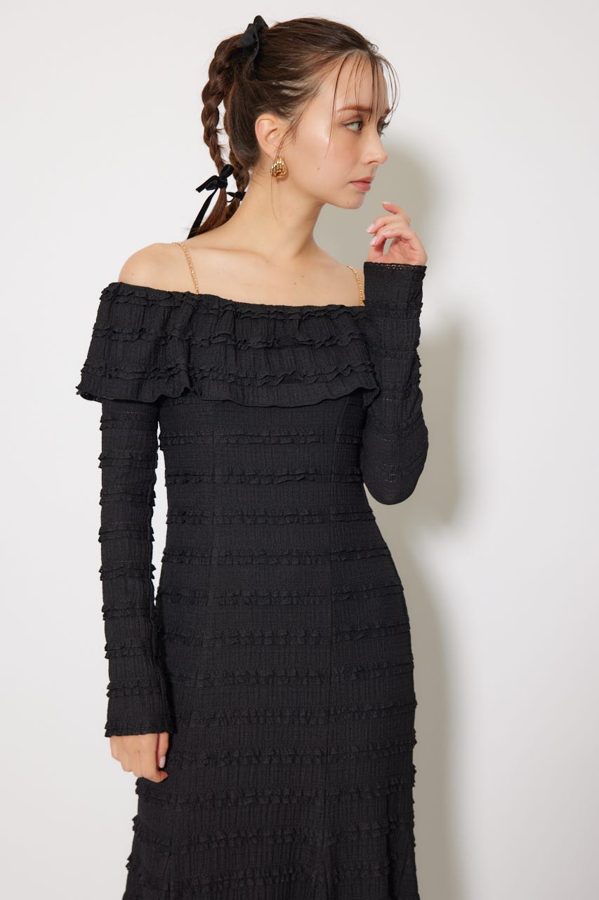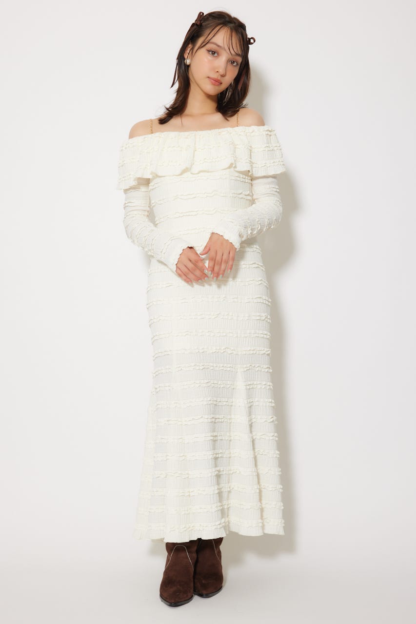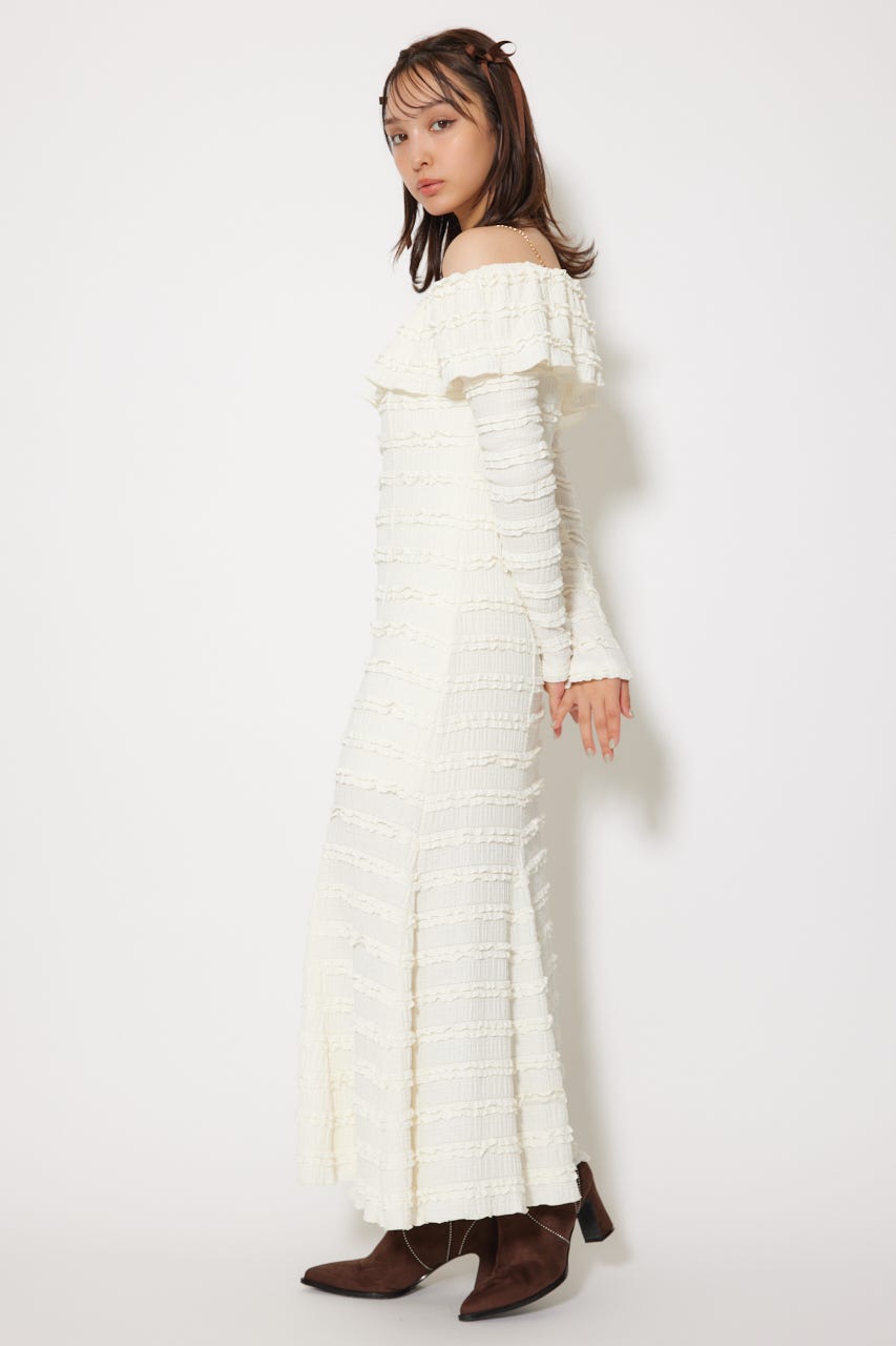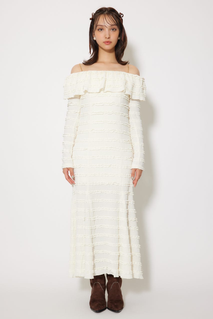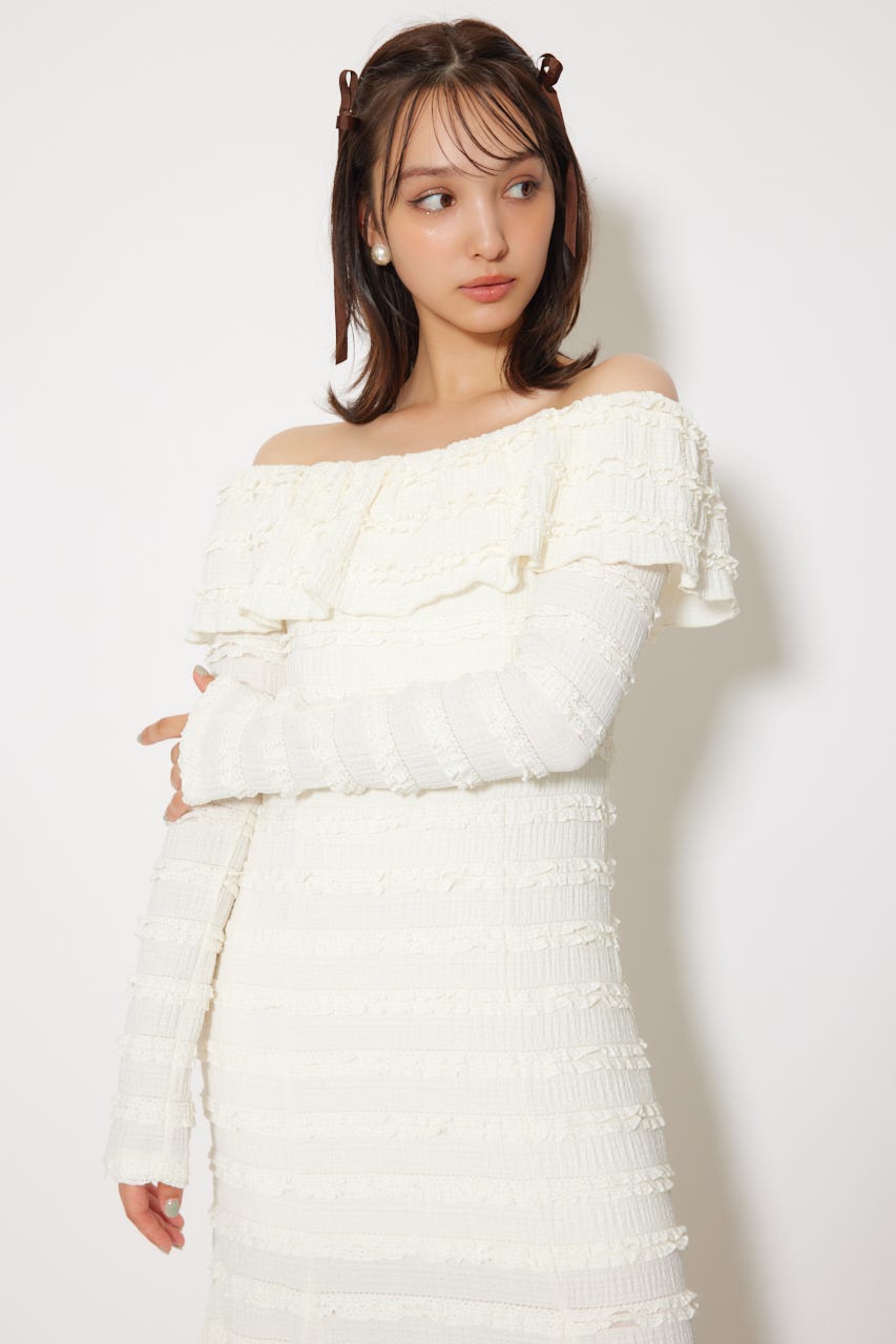 小さなフリルがたっぷりあしらわれたカットレース生地を使用したレースワンピ。
