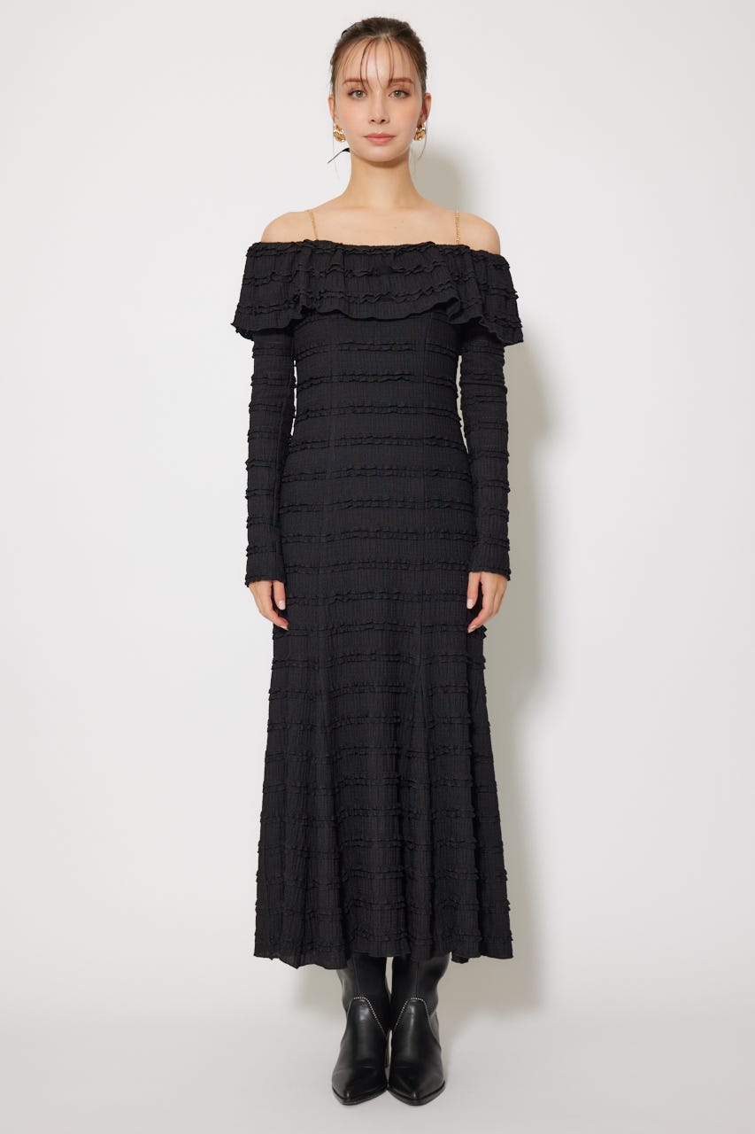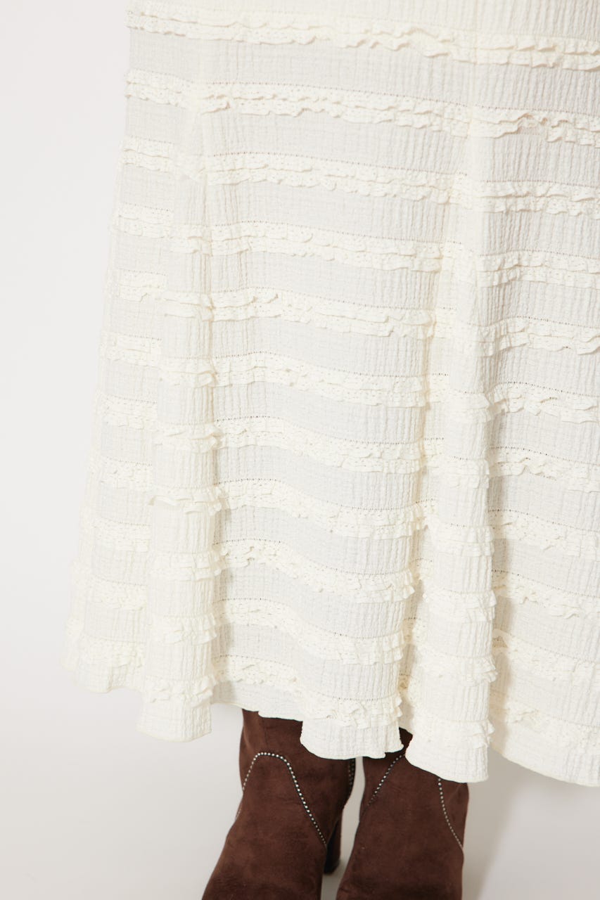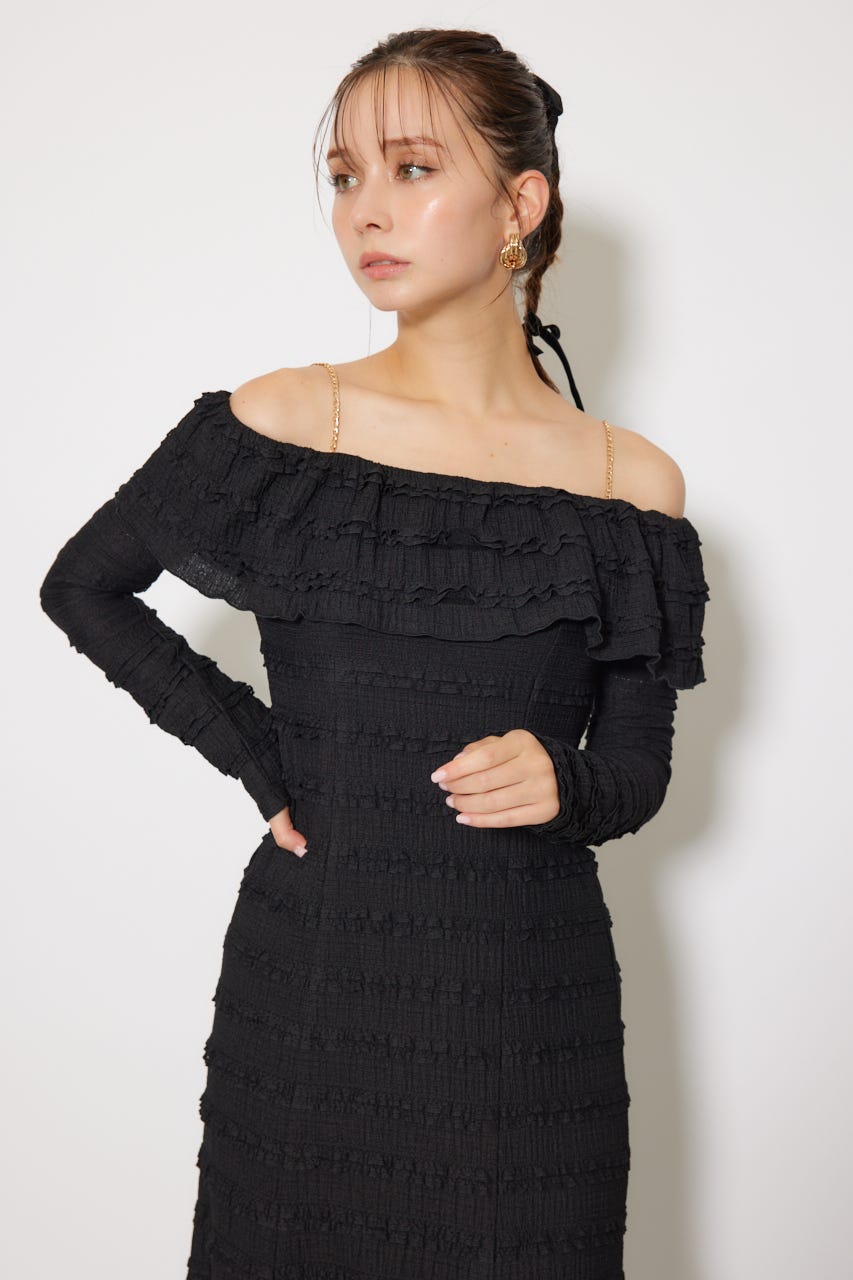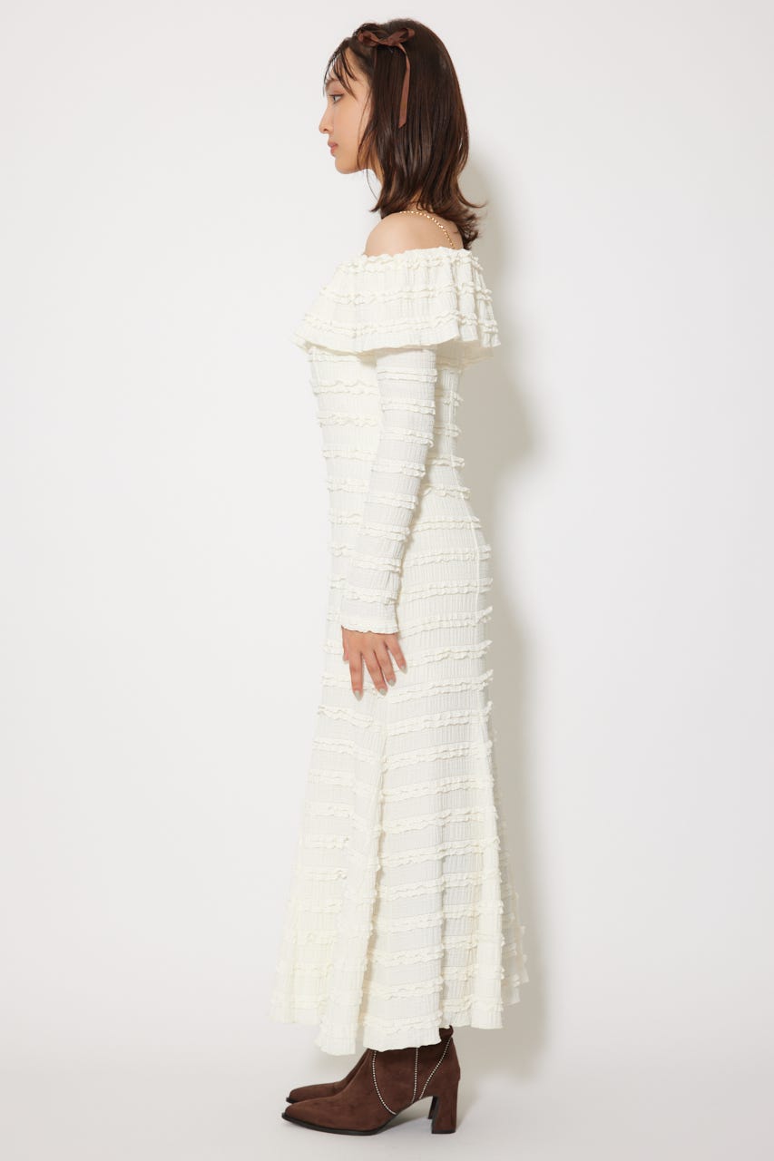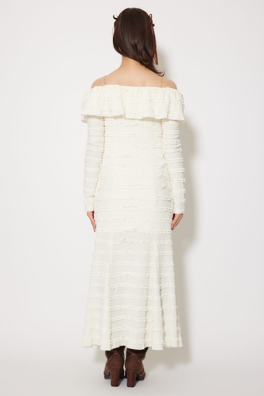 小さなフリルがたっぷりあしらわれたカットレース生地を使用したレースワンピ。