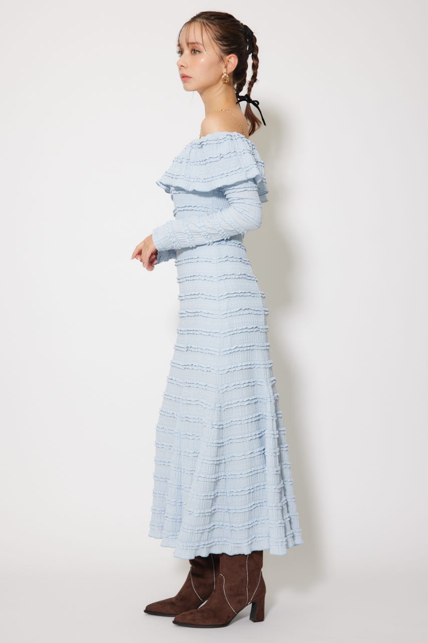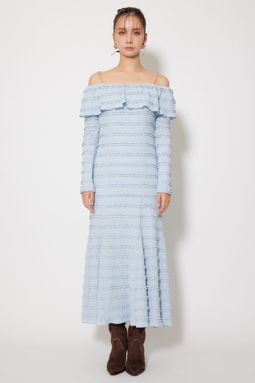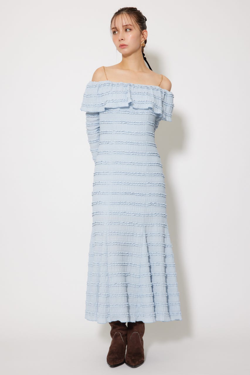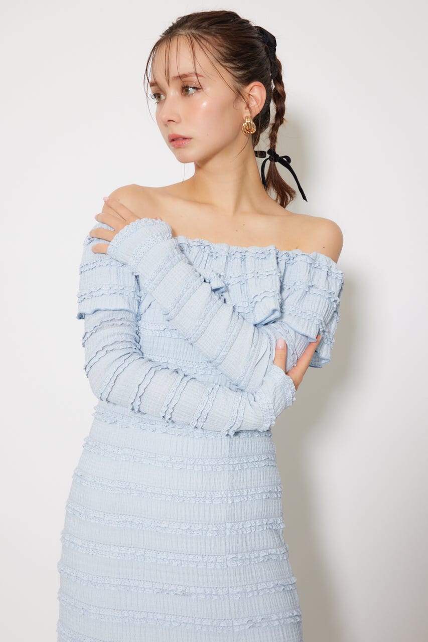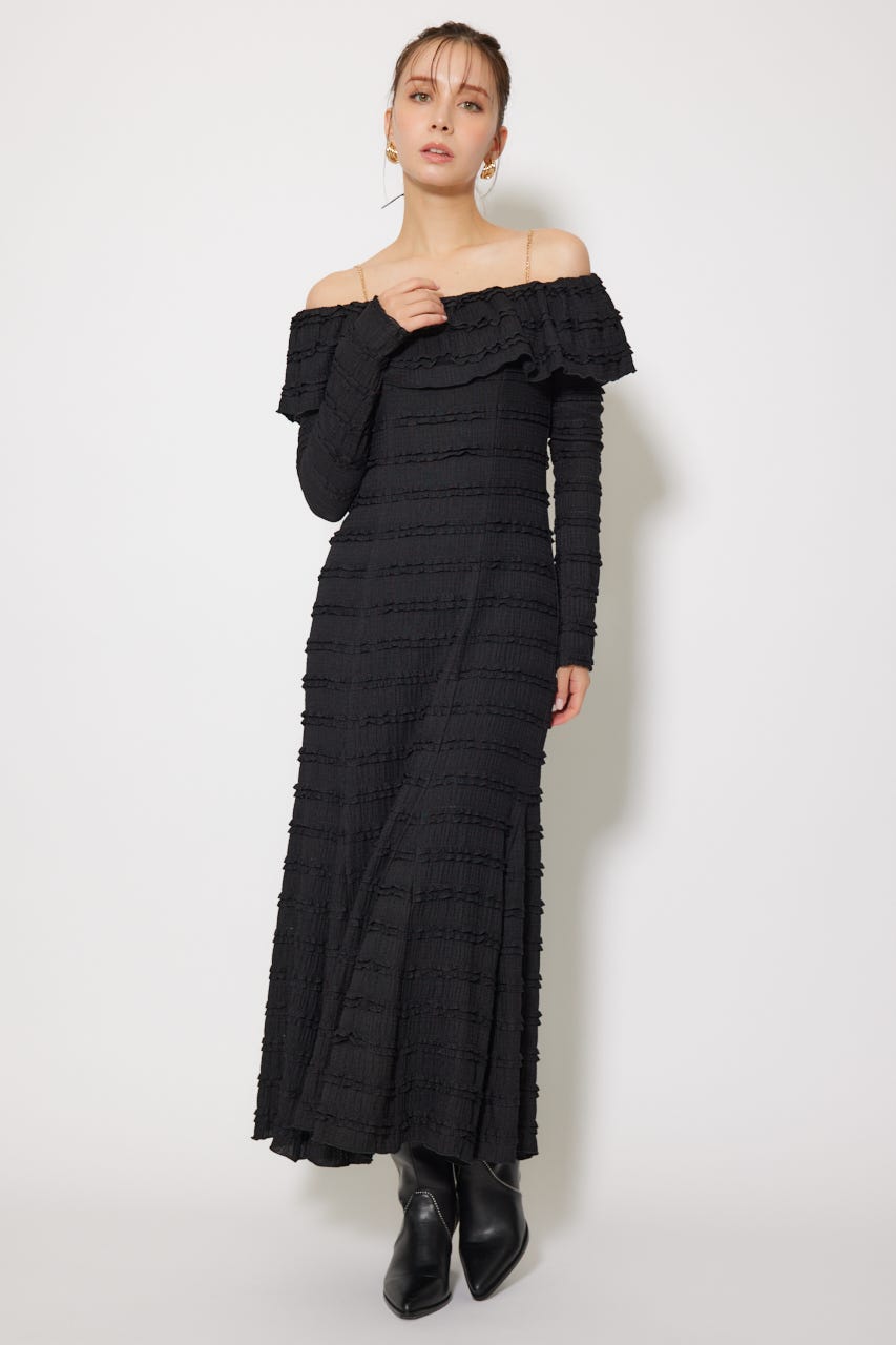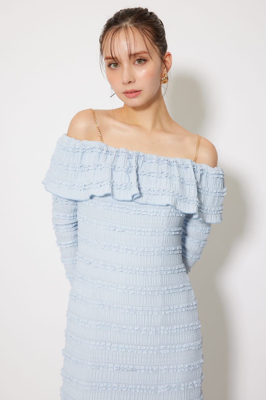小さなフリルがたっぷりあしらわれたカットレース生地を使用したレースワンピ。