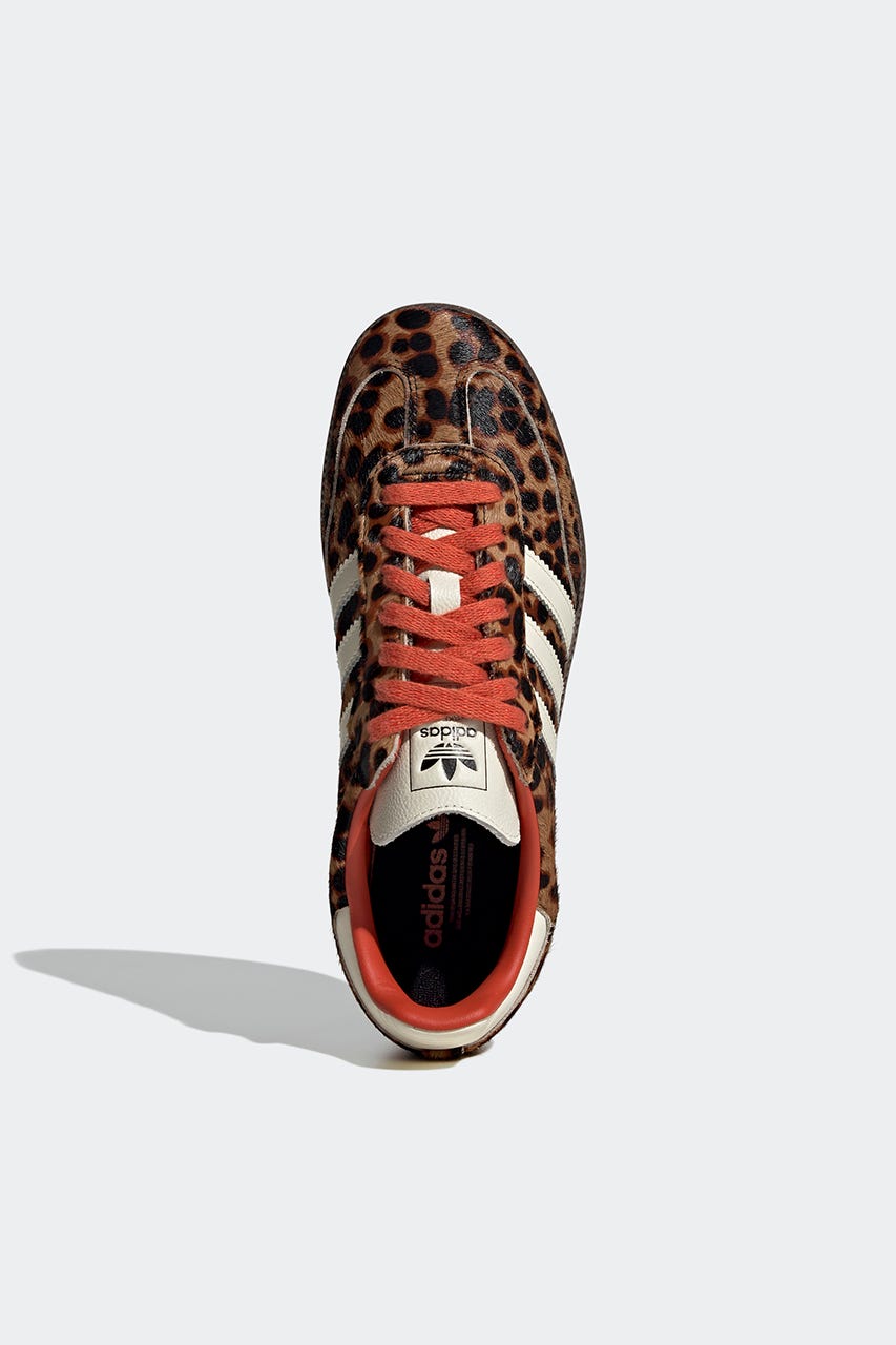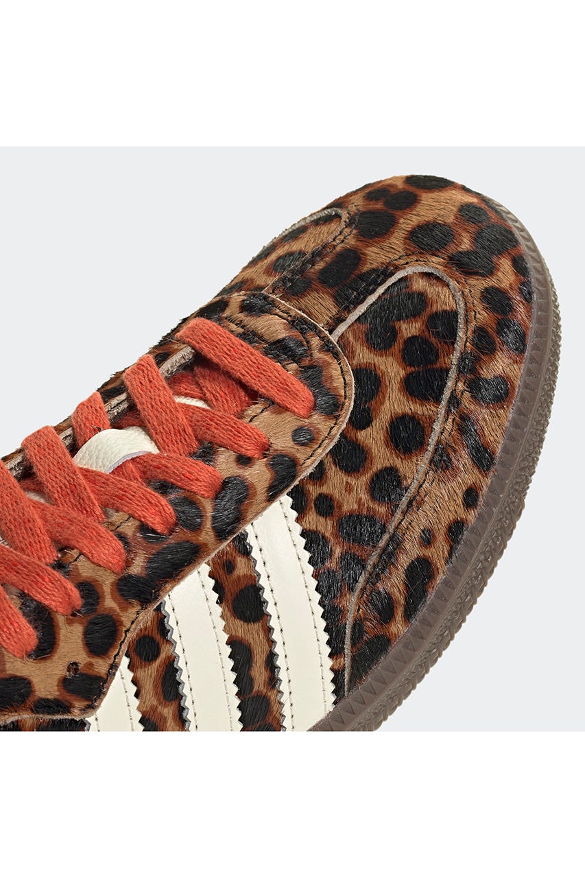大胆なチーター柄プリントが目を奪うエネルギッシュな外観のシューズは、ポニーヘアのアッパーにレザーのディテール、カラフルなライニングをあしらい、他とは一線を画すデザインが魅力。