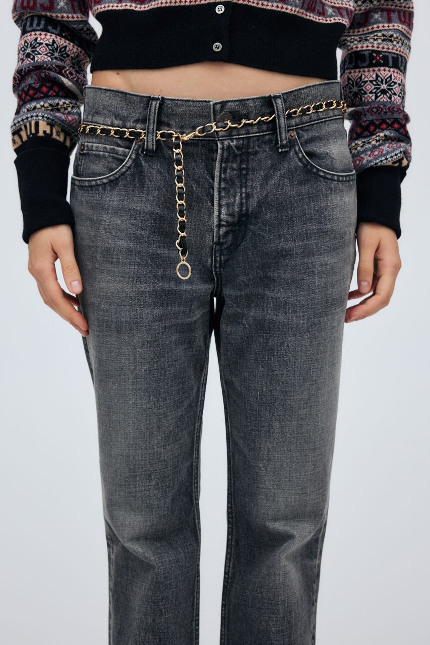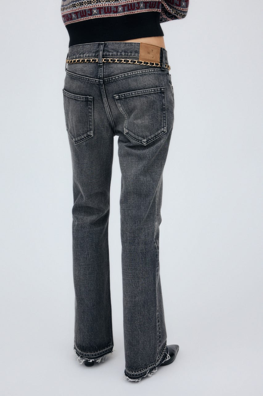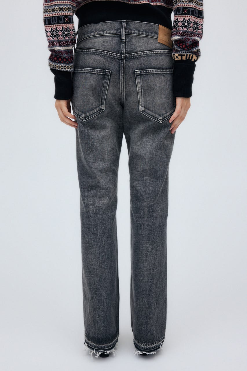 程よく品のある色落ち具合と加工後に解いた裾口はこなれた印象をプラス。