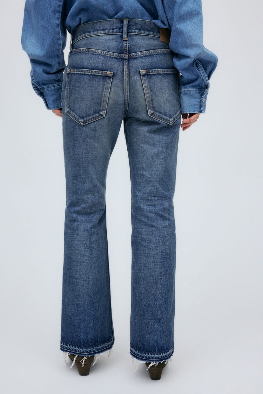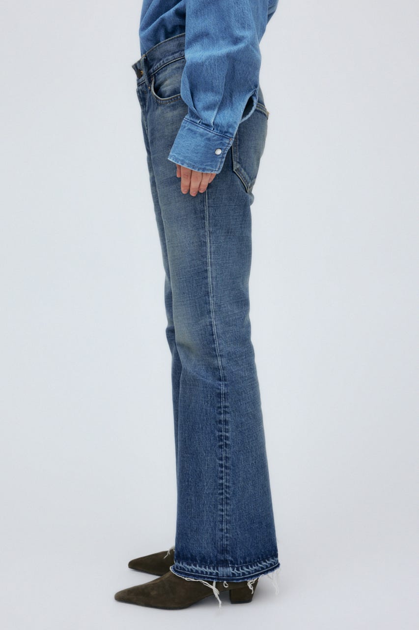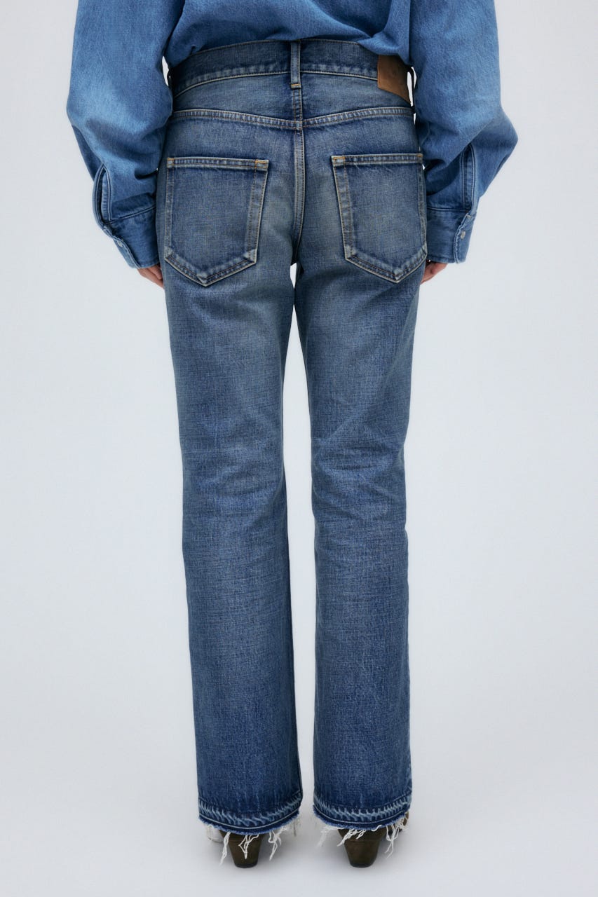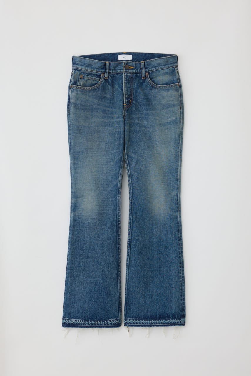 14ozのデニムを使用し、フレアシルエットが特徴のシーズンレスなデニムパンツ。