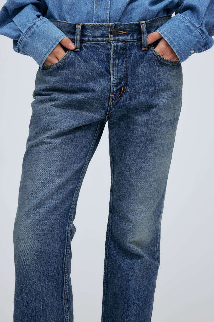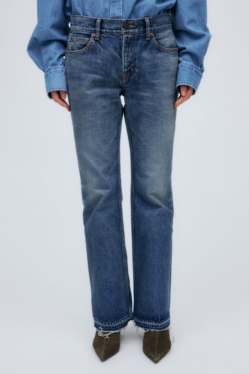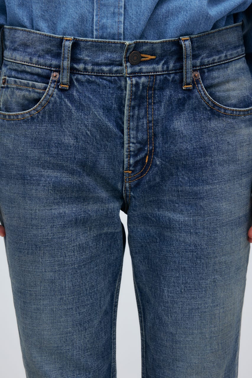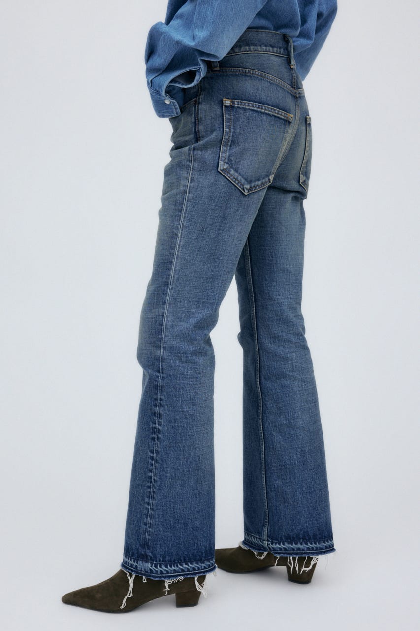 14ozのデニムを使用し、フレアシルエットが特徴のシーズンレスなデニムパンツ。