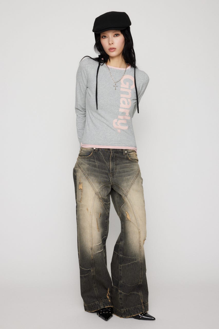 クラッシュやダメージ加工品は、着用や洗濯につれて加工箇所の広がりが生じる事がありますがご了承下さい。