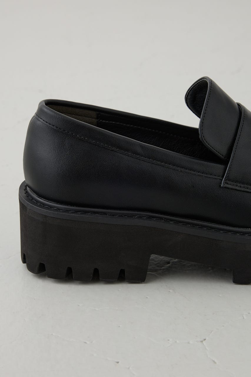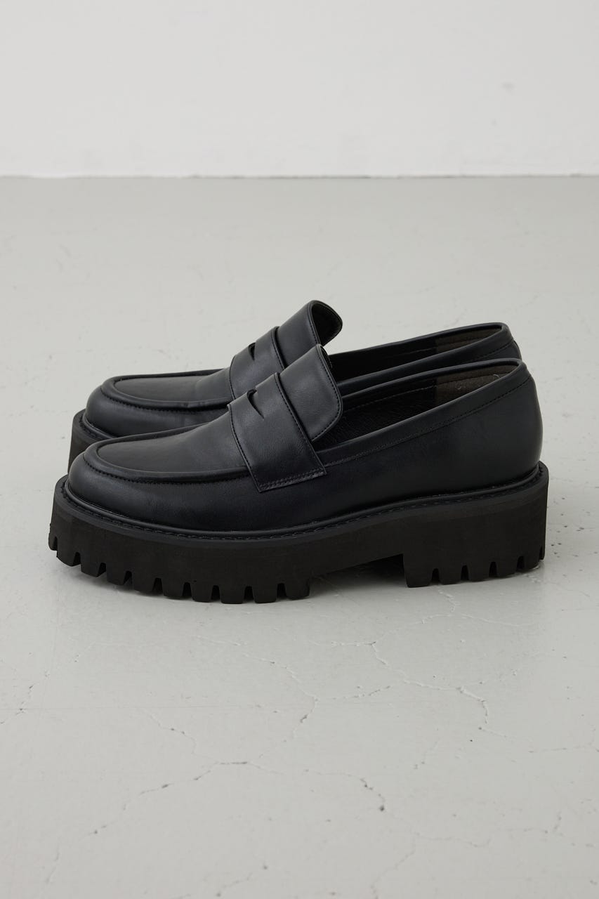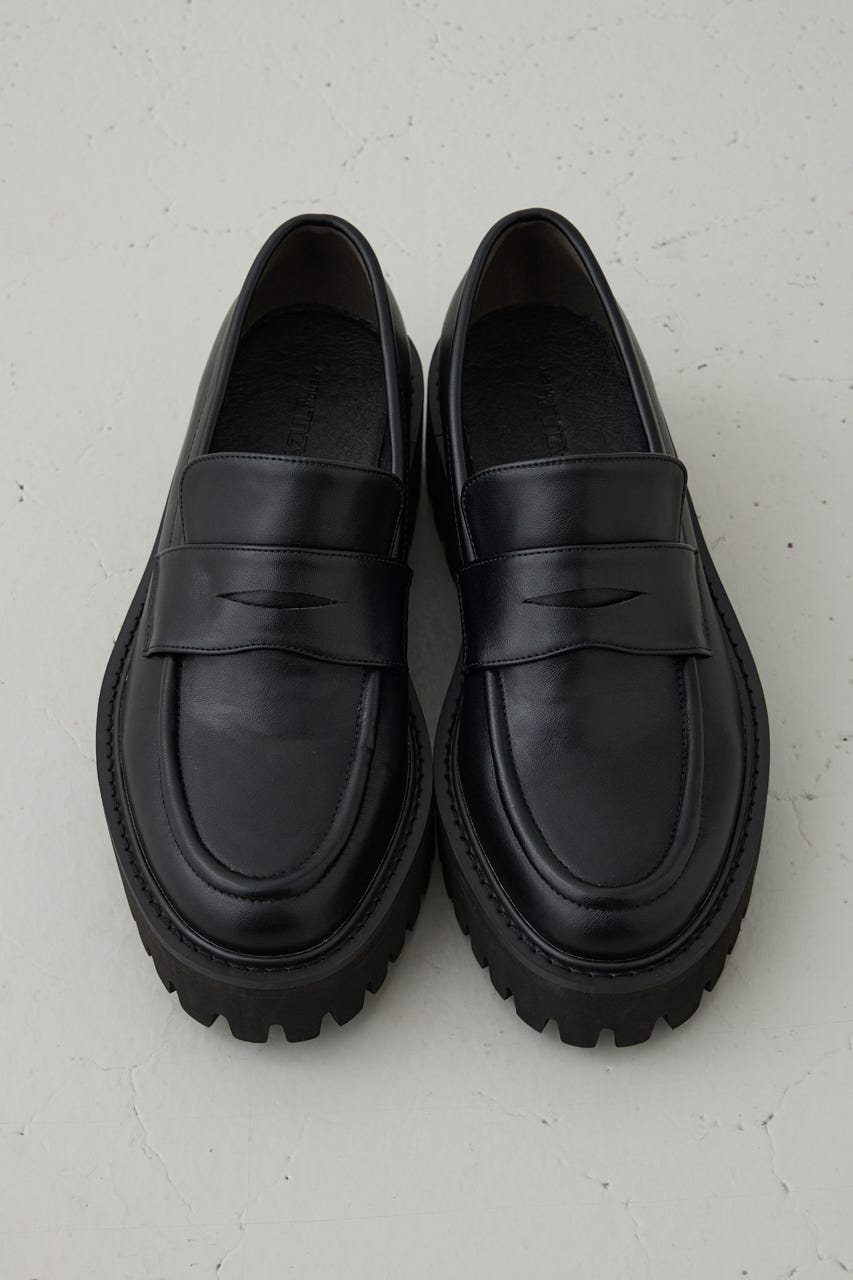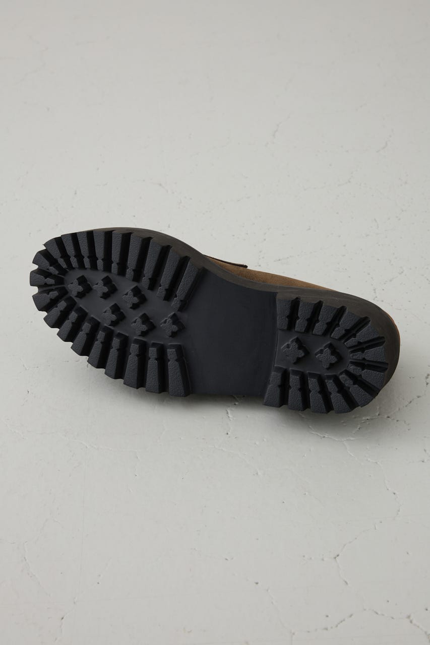 厚底ですがカジュアルになりすぎないように、つま先はすっきり細めのデザインにしています。