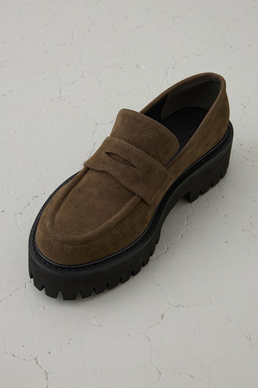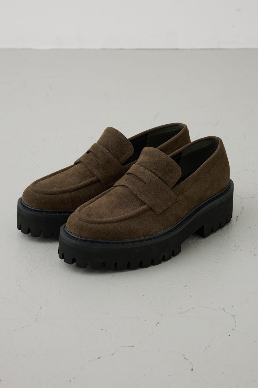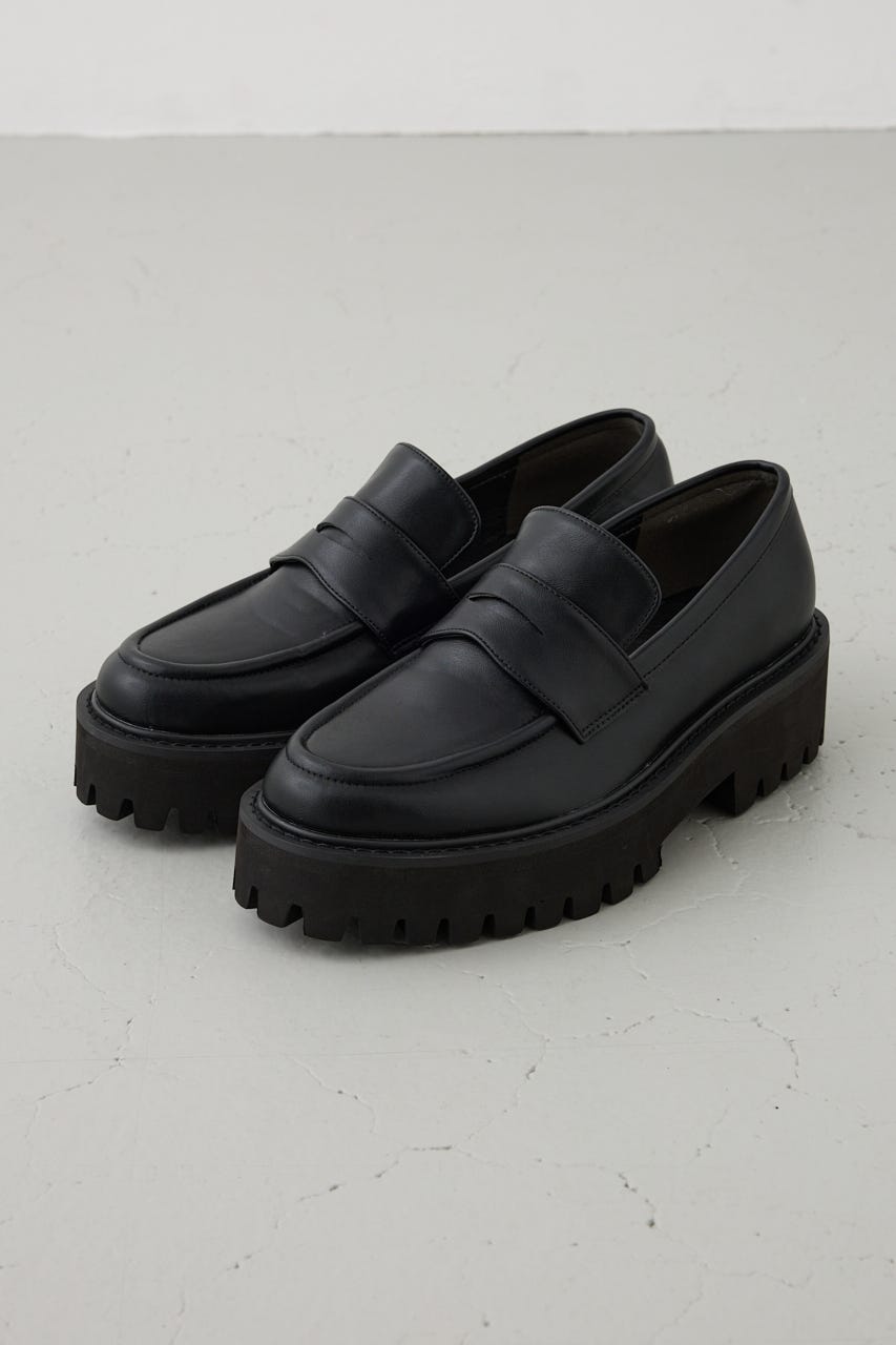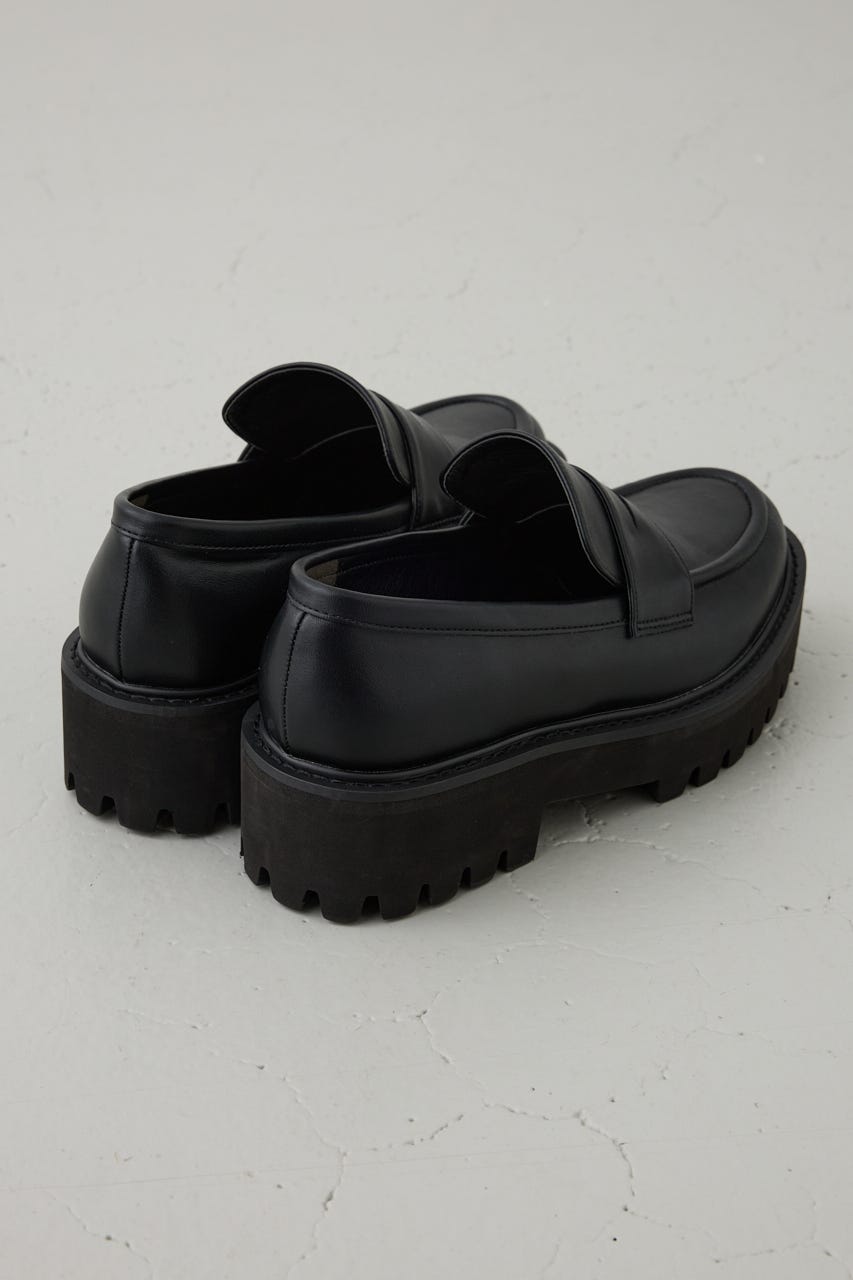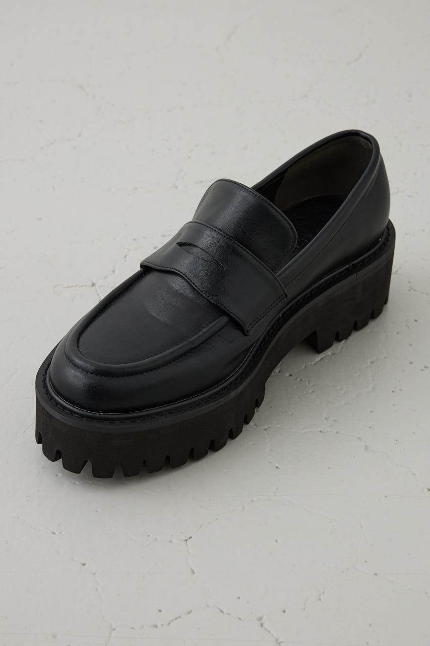 厚底ですがカジュアルになりすぎないように、つま先はすっきり細めのデザインにしています。