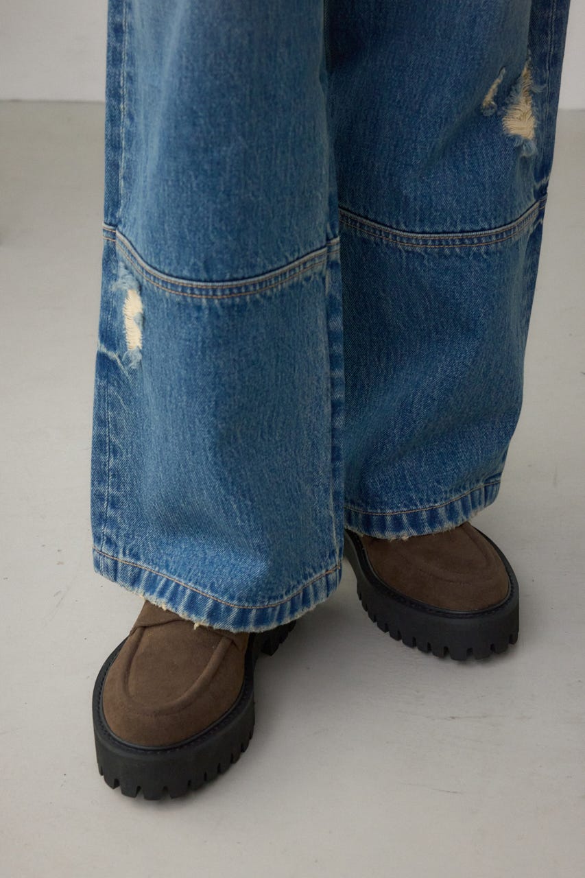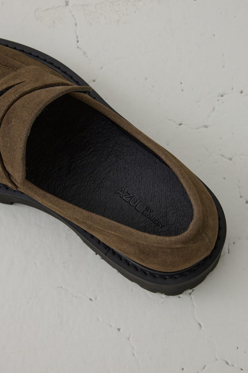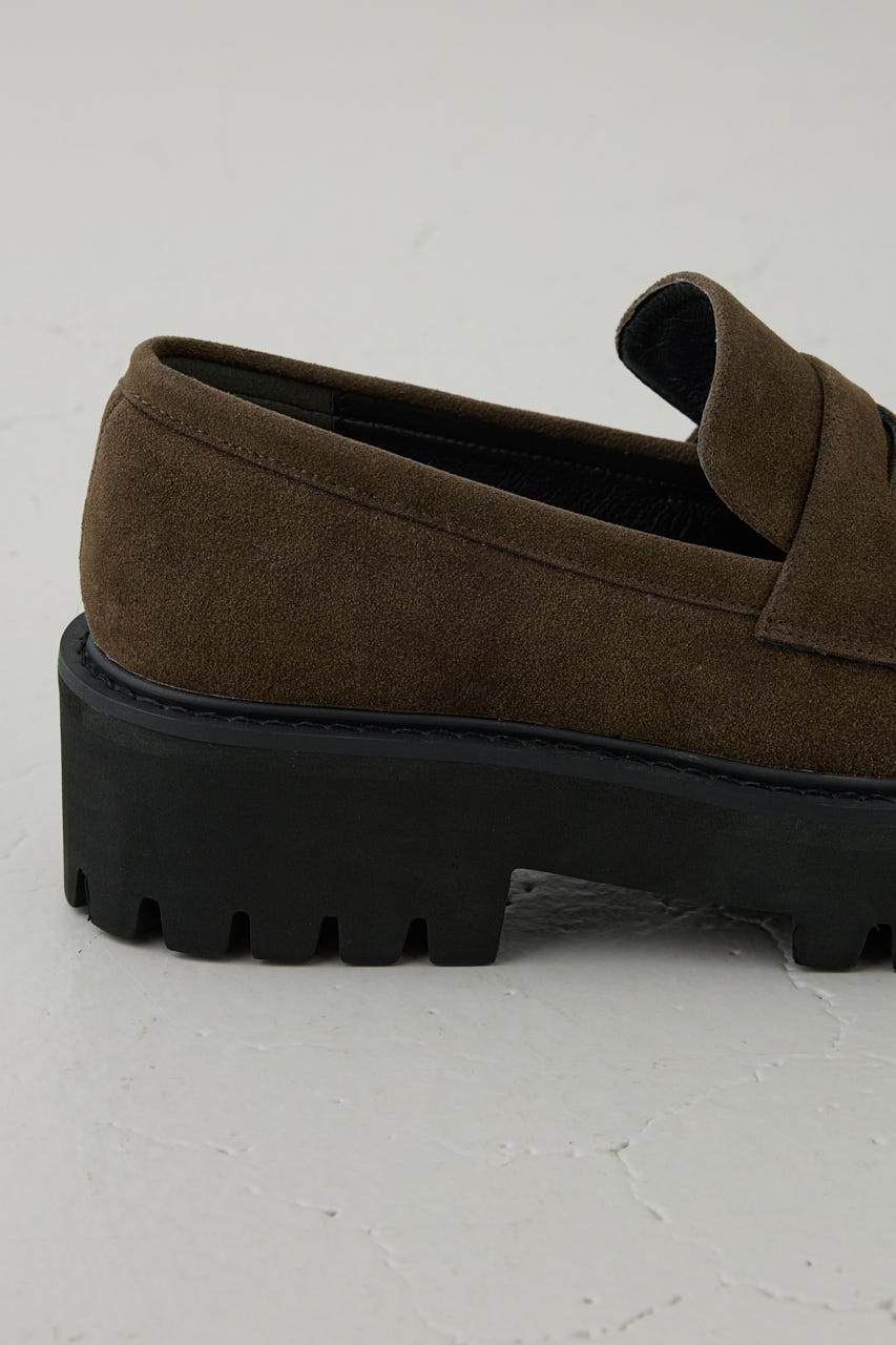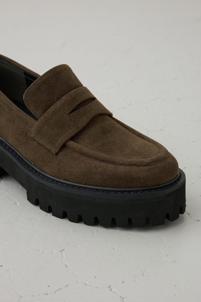 厚底ですがカジュアルになりすぎないように、つま先はすっきり細めのデザインにしています。
