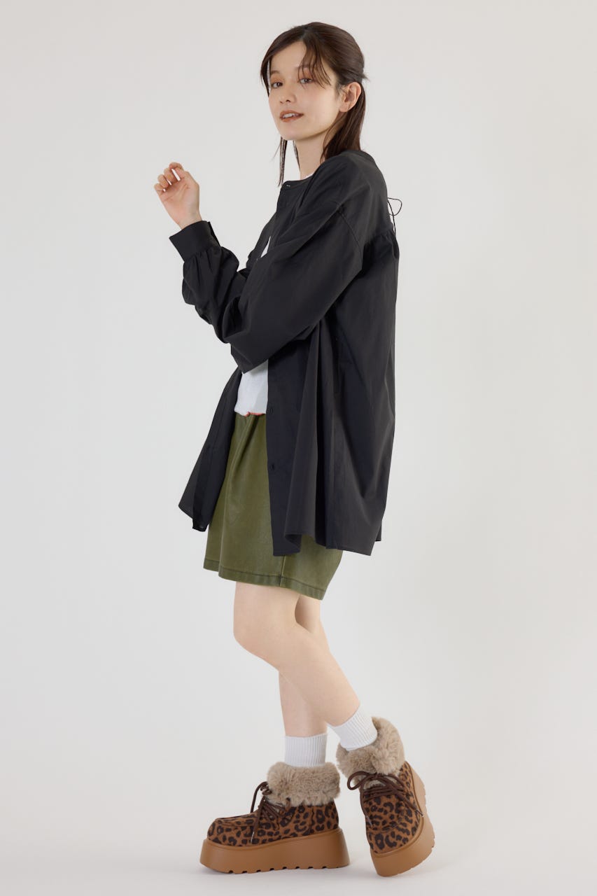 スキニーパンツやワイドパンツなど様々なボトムと相性がいいです。