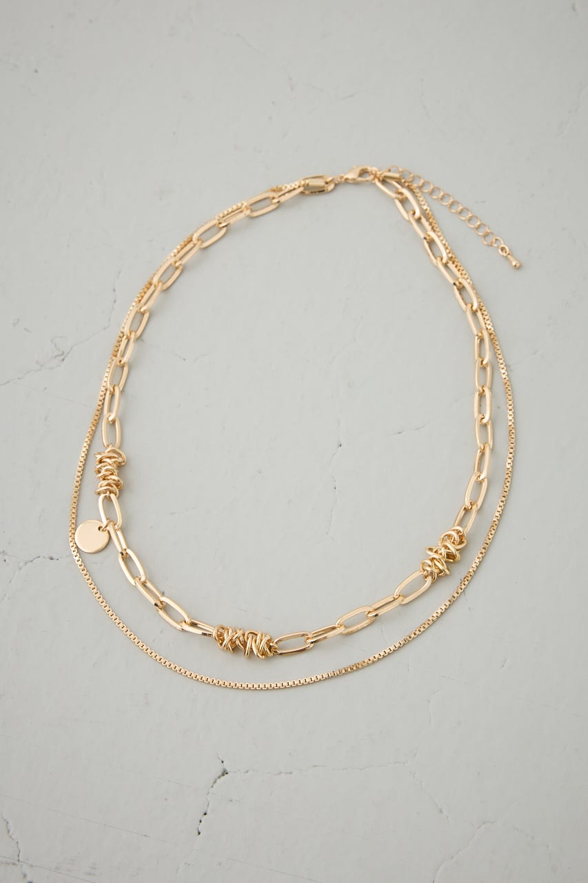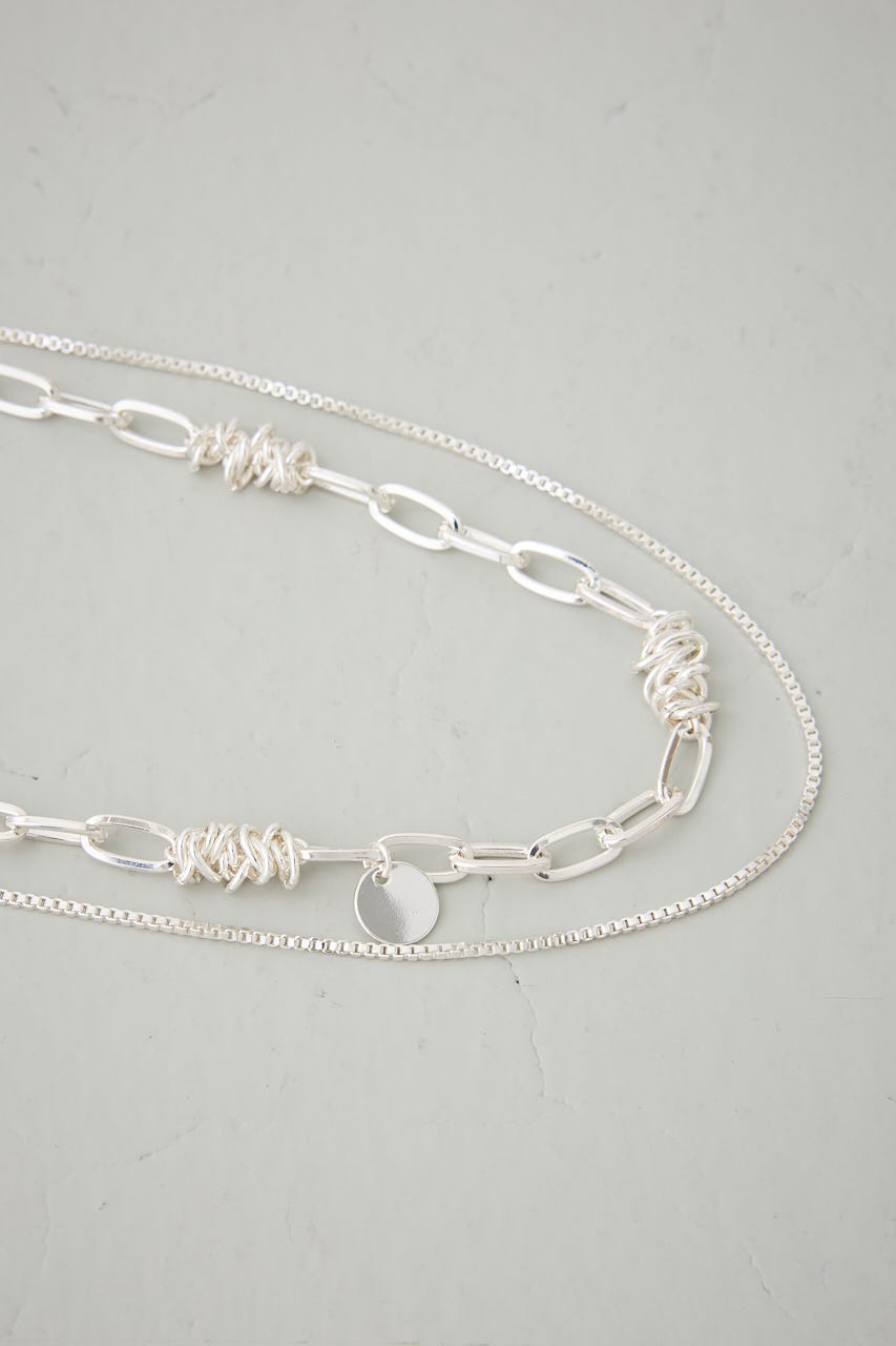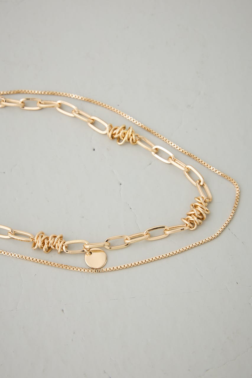 大ぶりのオーバルチェーンと、繊細なボックスチェーンを組み合わせた2連ネックレス。
