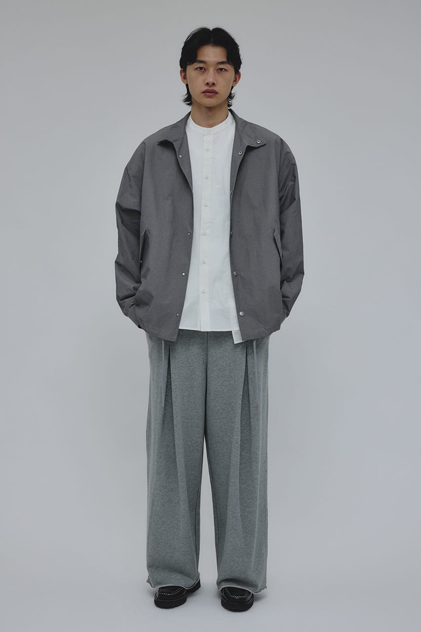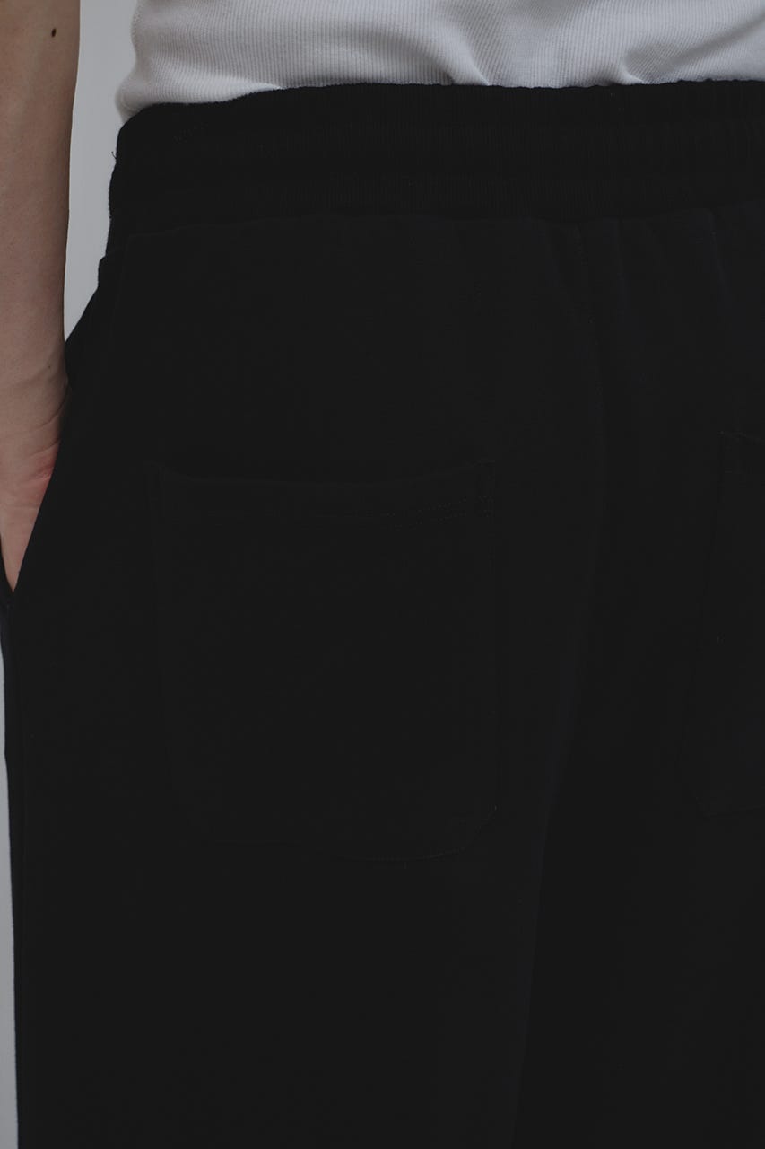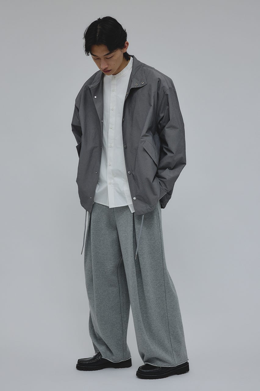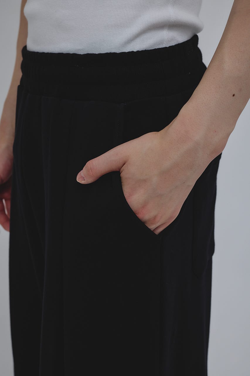 フロントに大きく施したタックとワイドなシルエットでドレープ感を前面に出したスウェットパンツ。