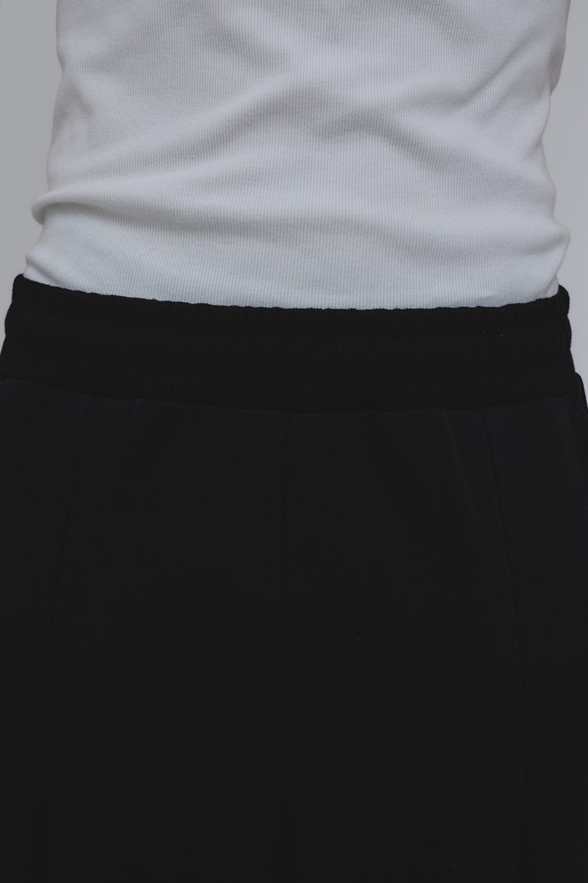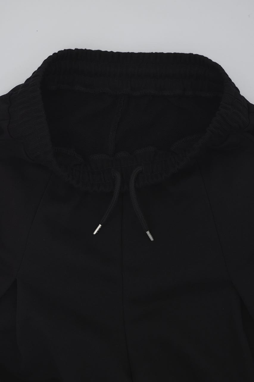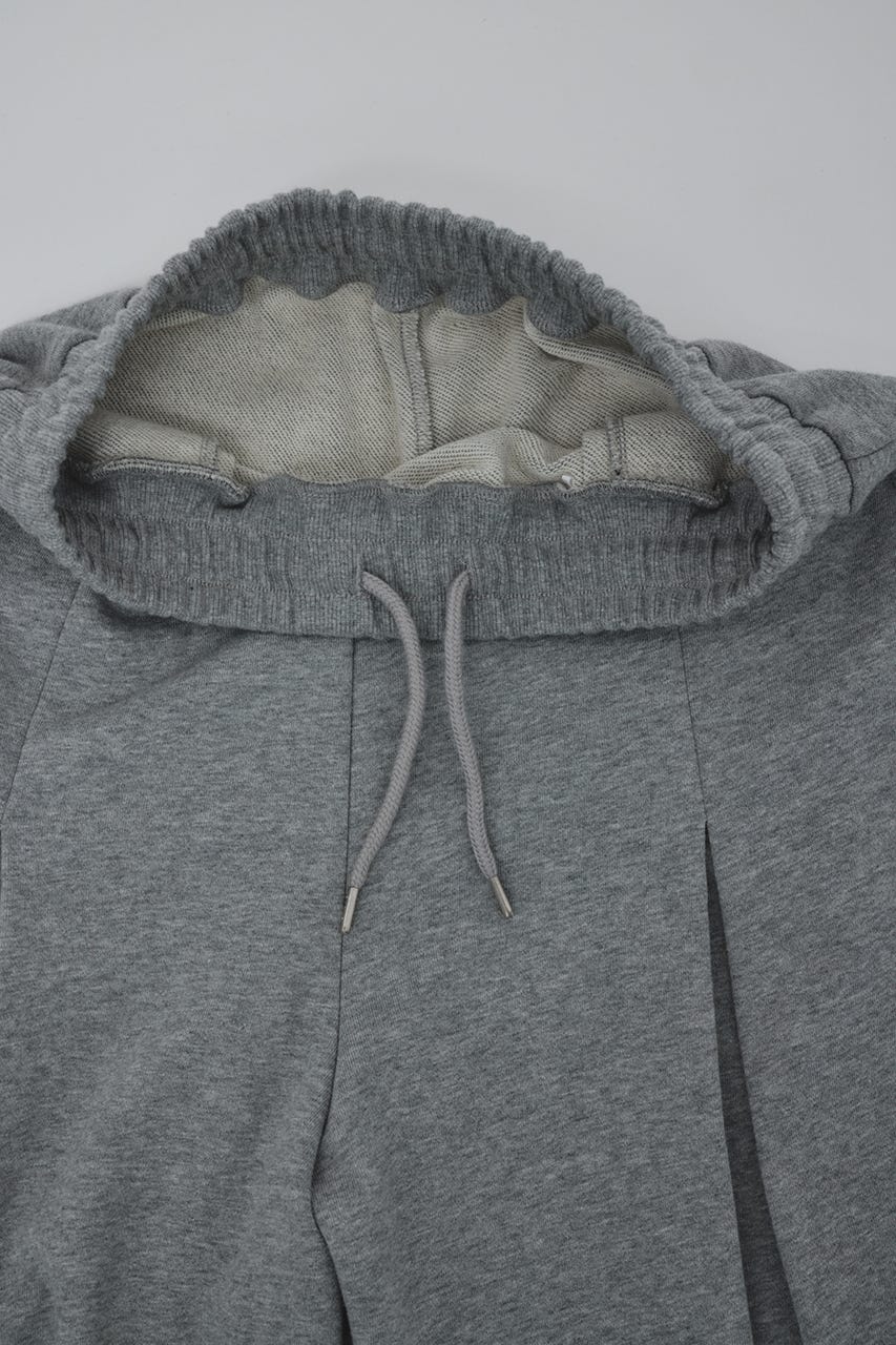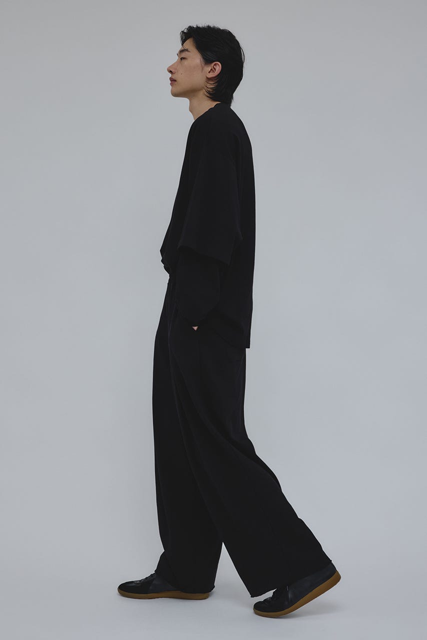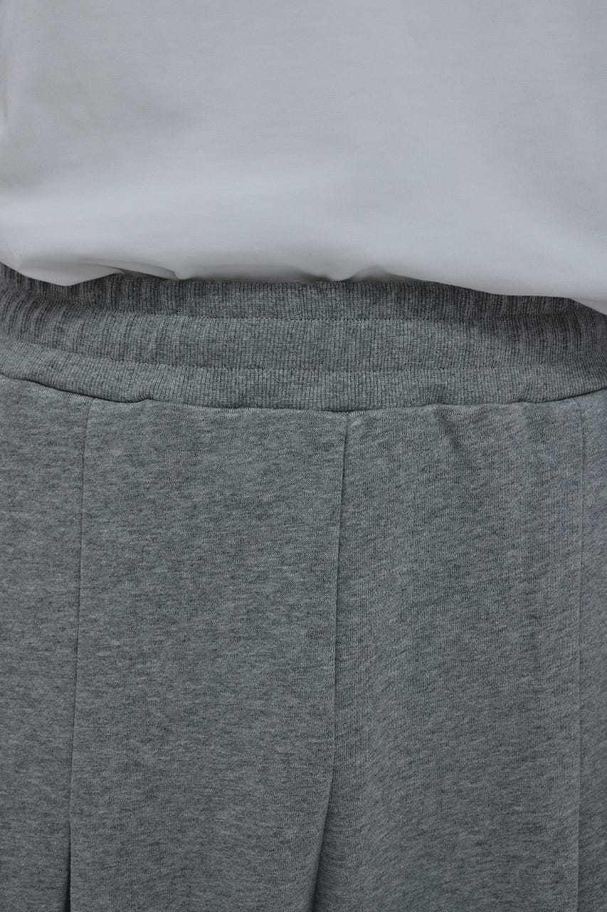 フロントに大きく施したタックとワイドなシルエットでドレープ感を前面に出したスウェットパンツ。