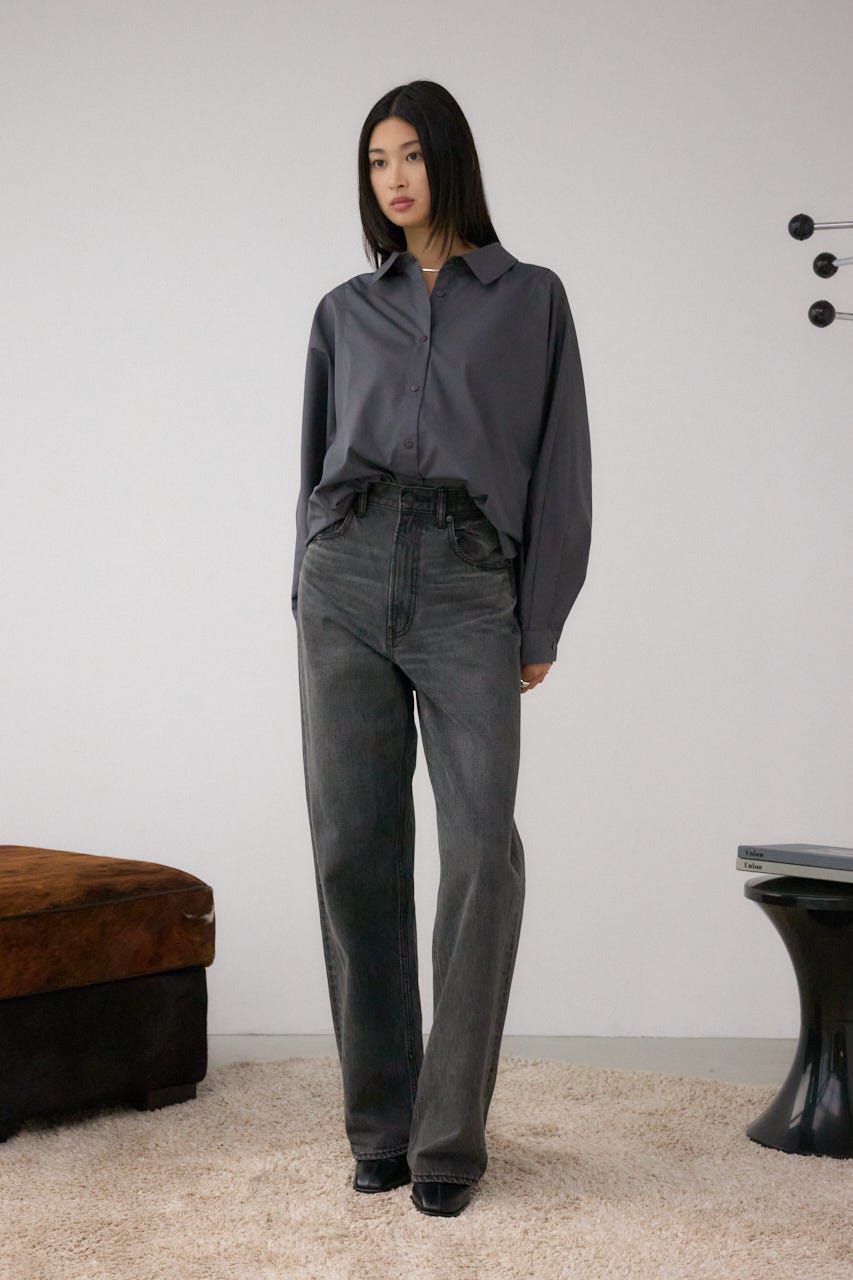 ゆったりとしたシルエットのシャツなので、ナロースカートを合わせたメリハリのある着こなしがおすすめ。